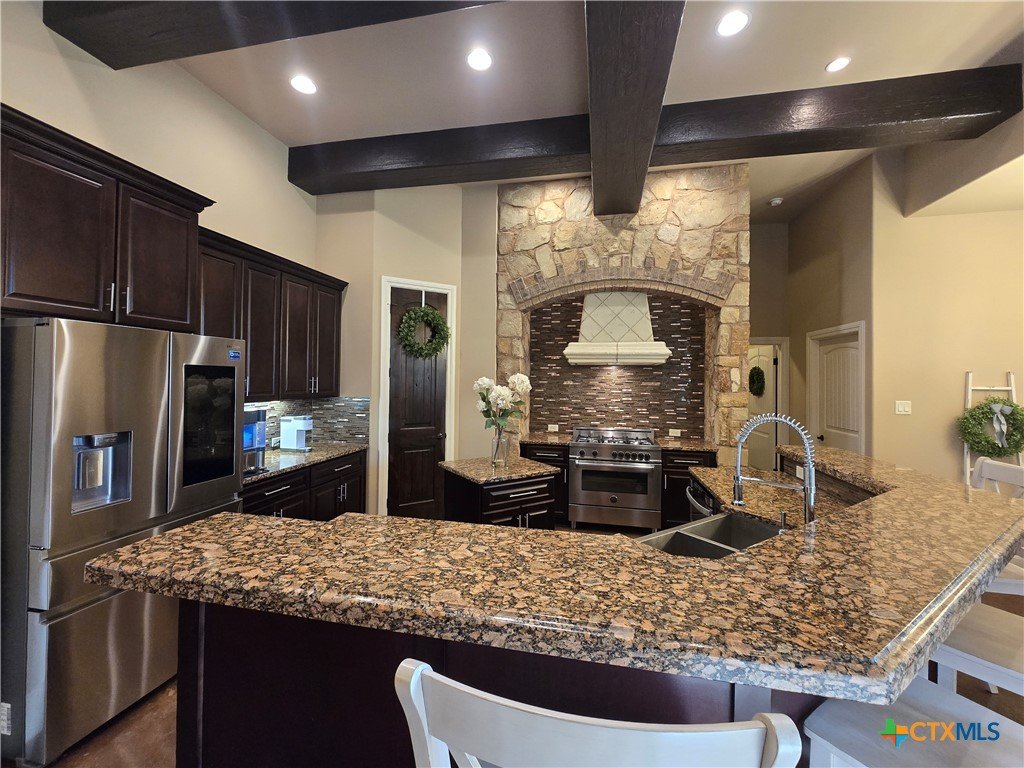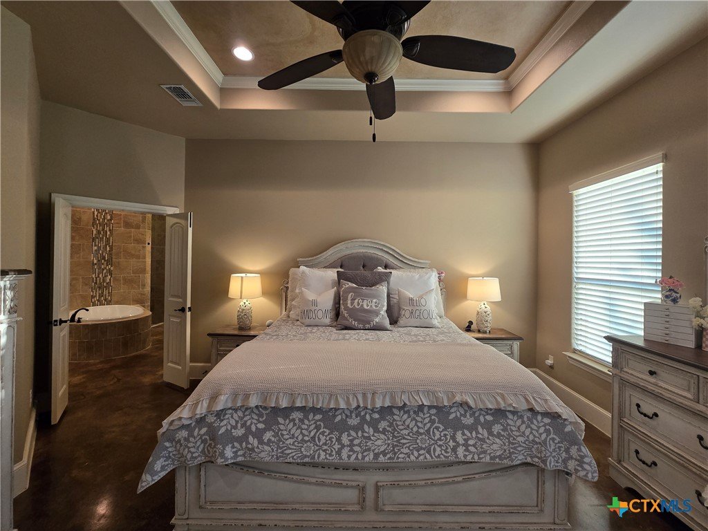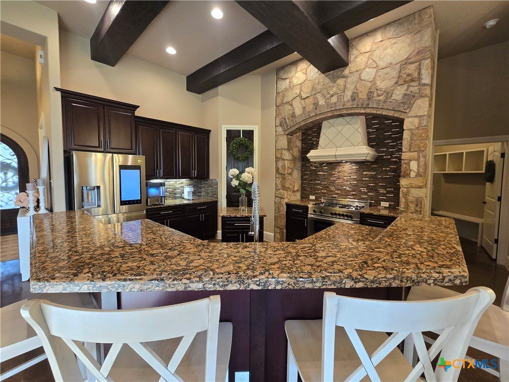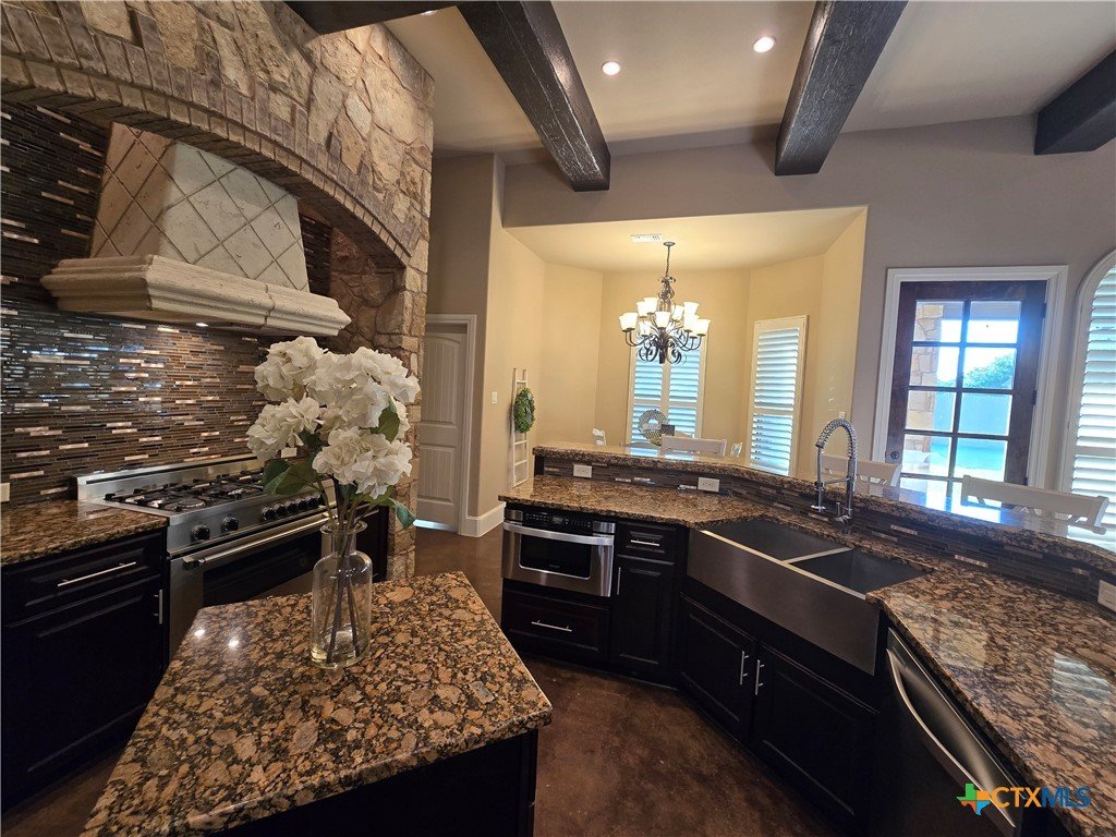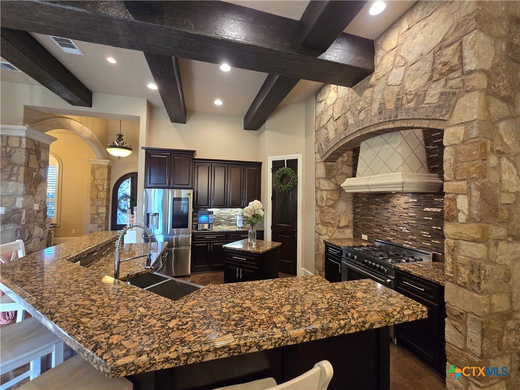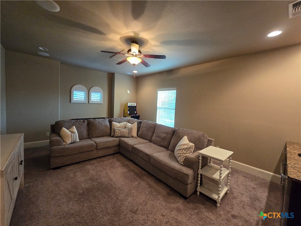Welcome to 3030 Whitetail Trail, a stunning sanctuary nestled in the exclusive Bella Charca a gated community of Nolanville, Texas. This exquisite residence spans over 3,000 square feet, offering an impressive blend of elegance and functionality, perfectly suited for discerning families and luxury buyers alike. As you step inside, you are greeted by an abundance of natural light that pours through expansive windows, illuminating the high ceilings and spacious rooms. The heart of the home is the gourmet kitchen, featuring sleek granite countertops, stainless steel appliances, and ample storage space—ideal for both everyday meals and entertaining guests. The adjoining den or home office provides a tranquil workspace, while the inviting fireplace in the living area creates a cozy ambiance for family gatherings. Retreat to the luxurious master bath, a private haven designed for relaxation with its opulent finishes and spacious layout. Each of the four bedrooms is generously sized, ensuring comfort and privacy for every member of the family, complemented by walk-in closets that make organization effortless. Walk up stairs and find a very spacious media room for entertaing guests or just a quiet evening with the family. Outside, the covered patio and fenced backyard provide a perfect outdoor entertainment area, equipped with a built in grill, sink, and fireplace ideal for summer barbecues or quiet evenings under the stars. The attached 3 car private garage enhances convenience and security. Schedule your private tour today and discover the unparalleled charm and sophistication that 3030 Whitetail Trail has to offer. Your dream home awaits.