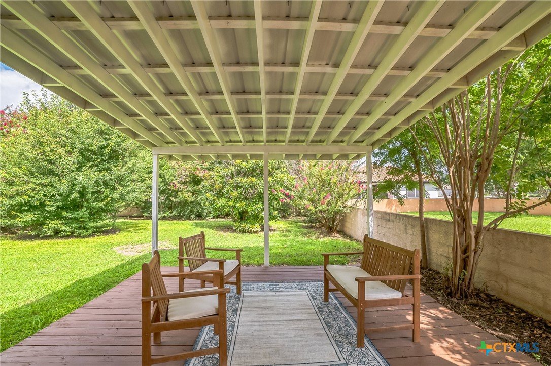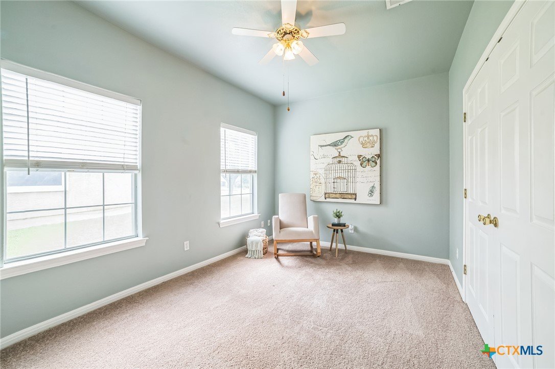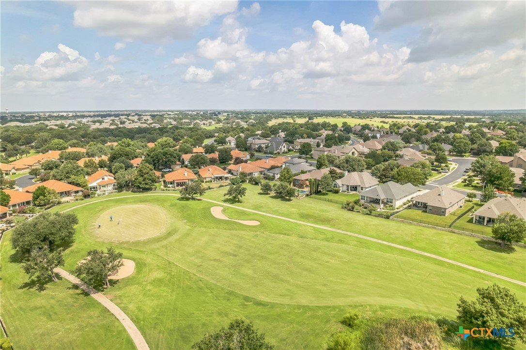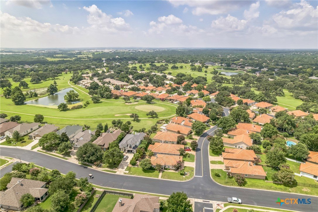 The “Garden Home” section of Berry Creek is a charming and friendly neighborhood in Georgetown, Texas, known for its stucco exteriors and picturesque tile roofs. Conveniently located on the north side of town, this private golf course community offers easy access to IH35, SH195, and Toll Hwy130, making the commute to Temple, Waco, Ft. Hood, Killeen, Bastrop, and Austin a breeze. This delightful 3-bedroom, 2-bath, 2-car garage home features a versatile flex space that can be used as a formal dining or living area, home office, or children's retreat. The main living area boasts high ceilings, laminate flooring, a ceiling fan, and a cozy wood-burning fireplace, adding to the warm ambiance. The spacious master bedroom, sits at the back of the home, and is bathed in natural light from a large picture window. Its en-suite bathroom includes a walk-in closet with organization, walk-in shower, dual-sink vanity, soaking tub, and private water closet. On the opposite side of the home, two spacious secondary bedrooms share a well-appointed guest bathroom, ensuring comfort for family and guests. Enjoy Texas mornings on the covered patio, perfect for sipping coffee and soaking in the serene surroundings. As the sun sets, this space transforms into an ideal spot for BBQs and gatherings with friends. The fenced backyard, enriched with lush landscaping, provides privacy and tranquility, complemented by a sprinkler system and gutters. Golf enthusiasts will appreciate the nearby Berry Creek Golf Course and Country Club, offering a range of amenities to enhance your lifestyle. This section of Berry Creek does not have a mandated HOA, but a deed fee is in place, allowing for flexible membership options; contact the Club for details. For those seeking a relaxed lifestyle, this affordable home merges convenience, flexibility, and leisure in one perfect location within the vibrant Berry Creek community. Embrace the opportunity to own this charming residence!