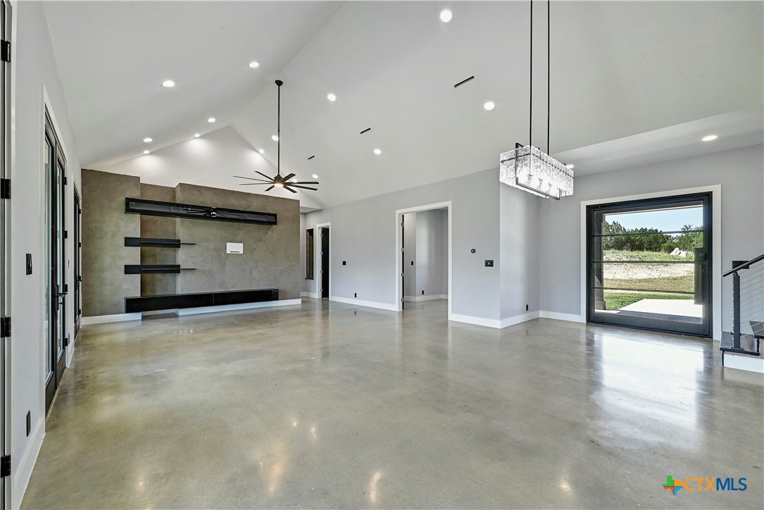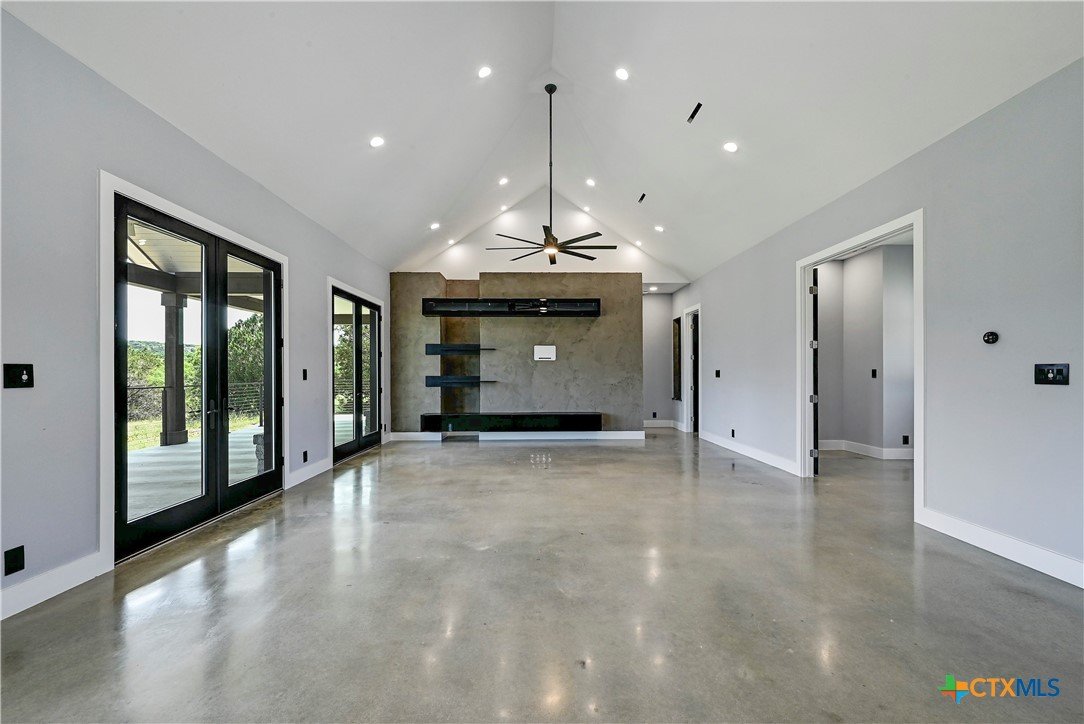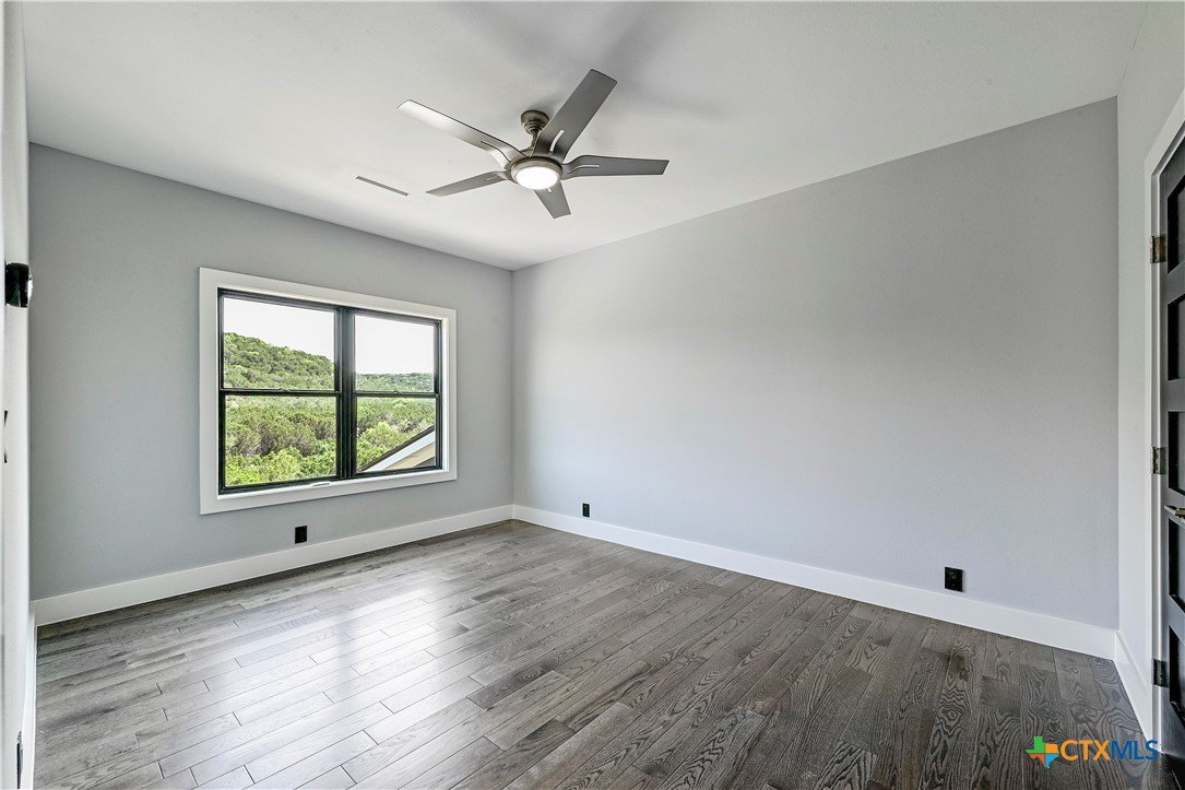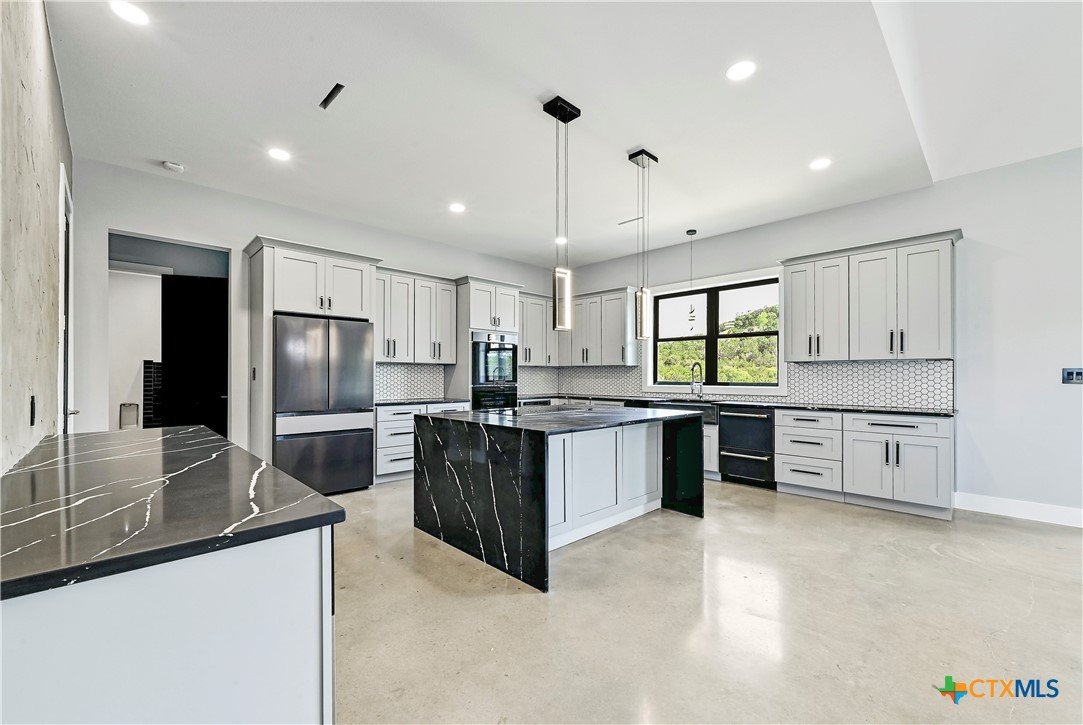 Video Walkthrough: https://youtu.be/RrxmvsTkWEM Modern Luxury Craftsman Estate on 1.5 Acres in the Heart of the Central Texas Hill Country. This exquisite residence is surrounded by sweeping views of tree-covered rolling hills and peaceful rural acreage, with a scenic butte just beyond the property. Nestled in a serene, prestigious gated community, residents enjoy top-tier amenities including a pool, cabana bath house, event pavilion, 16-acre fishing lake, and scenic Cow Creek nature trails. The breathtaking architectural design features a covered front porch, artisan crafted slate-like shingles, three front-facing garage bays, and an additional two-bay side garage. Inside, a stunning great room open floor plan unfolds around a designer chef’s gourmet kitchen. Custom crafted down to every detail, this home boasts soaring vaulted ceilings and two sets of oversized French doors framing panoramic Hill Country vistas. The kitchen is a chef’s dream with high-end stainless appliances, quartz countertops, an oversized waterfall island, walk-in pantry, and exquisite modern finishes. The main level includes a luxurious primary suite, guest suite, and a home office. Upstairs offers three spacious secondary bedrooms, a full bath, and a large bonus room. The secluded primary suite offers walkout access to the expansive entertainer’s back porch and a deluxe ensuite bath with a dream walk-in closet. All bathrooms are custom designed with bespoke tile, lit mirrors, and refined modern finishes. Outstanding energy efficiency includes multi-zoned air in each room, E-Star appliances, spray foam insulation, LED lighting, high-efficiency water heater, and smart home features including an EV charger. Entertain in style on the massive covered back porch with breathtaking views of the butte beyond your property. The 1.5-acre lot provides ample space for a custom outdoor oasis with room for a pool and more.