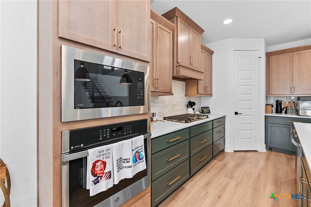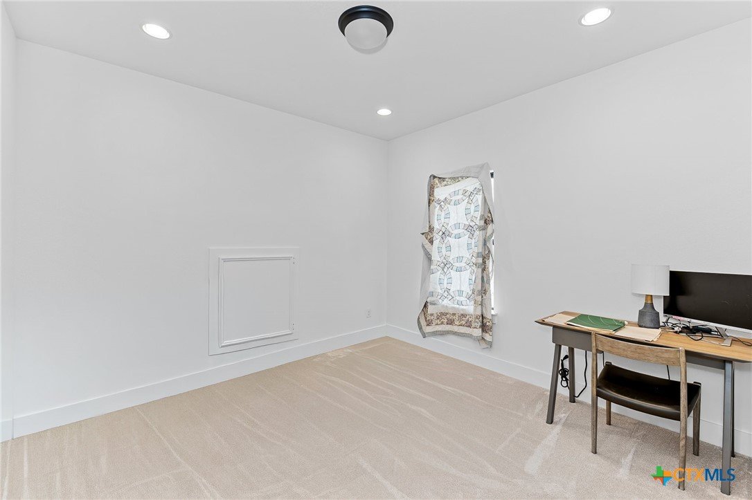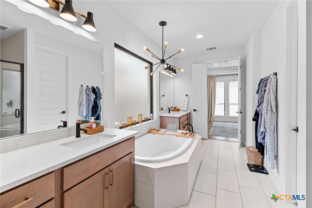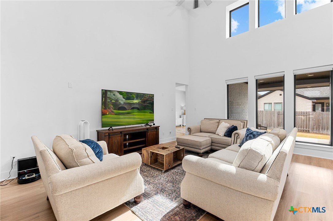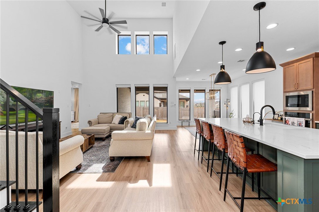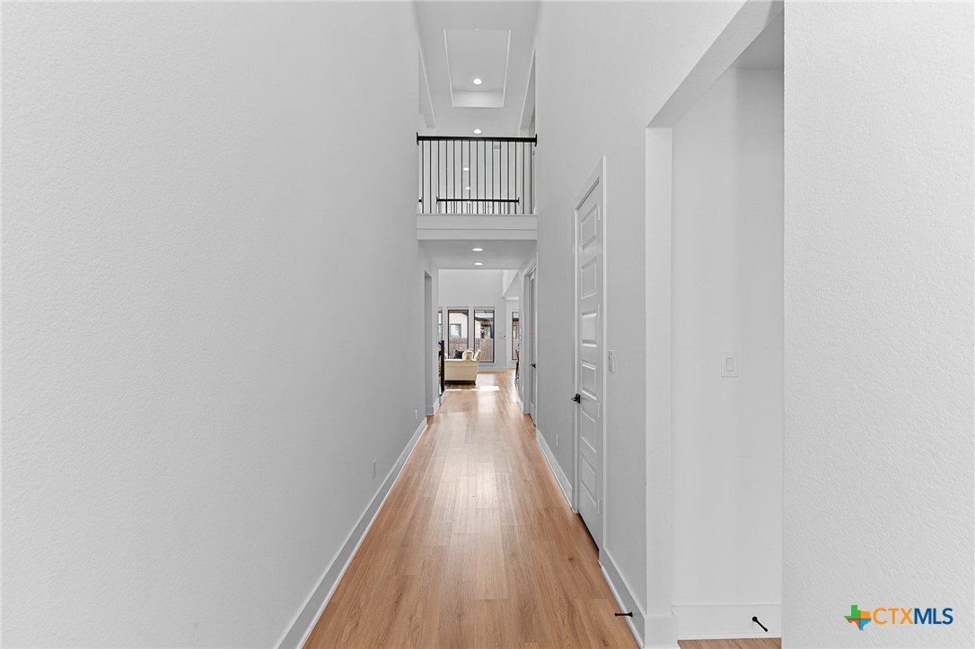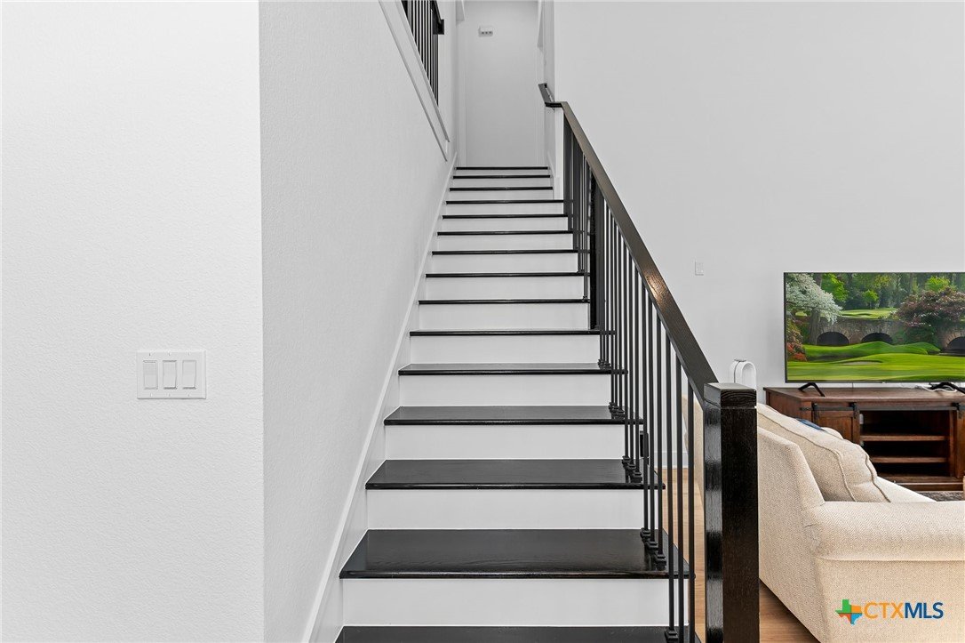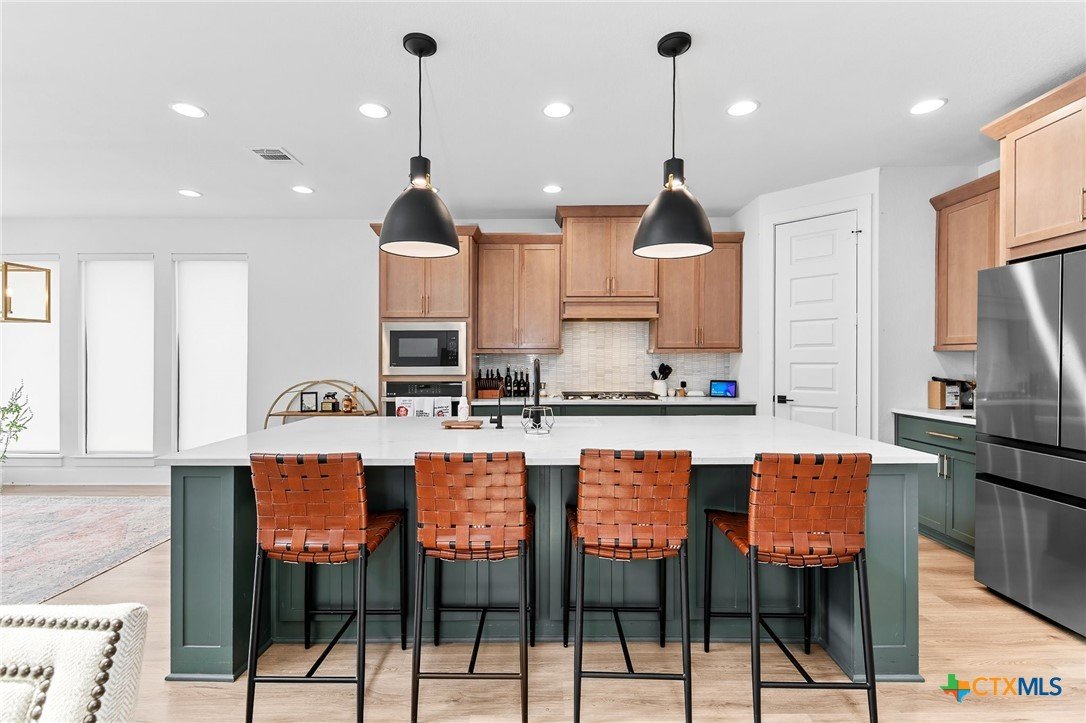 Welcome to 305 Reef Band Drive in Kyle, Texas — where modern design meets everyday comfort in the highly sought-after Crosswinds community. Built in 2023 by Perry Homes, this exceptional two-story residence offers 4 spacious bedrooms, 3 full baths, 1 half bath, a private first-floor office, and a rare 3-car tandem garage with EV outlet — delivering both style and function. Step inside to a light-filled open-concept layout designed for the way you live today. Expansive windows frame peaceful backyard views and flood the family room with natural light. The kitchen flows seamlessly into the living space, creating the perfect setting for entertaining, holidays, or relaxed evenings at home. The main level features a luxurious primary suite tucked privately at the rear of the home, plus an additional first-floor bedroom with its own full bath — ideal for guests, multi-generational living, or long-term visitors. A dedicated office provides a quiet work-from-home retreat or flex space to fit your lifestyle. Upstairs, you’ll find two additional bedrooms, a full bath, and a generously sized game room that easily transforms into a media room, second living area, or play space. Out back, enjoy your covered patio, private yard, and custom fire pit — perfect for Texas sunsets, weekend gatherings, and cozy evenings under the stars. Unique bonus features include a built-in kennel under the stairs (also perfect for creative storage) and the highly desirable tandem third garage bay. Residents of Crosswinds enjoy resort-style amenities including a community pool, park, and playground — all just minutes from Downtown Austin, Buda, San Marcos, and New Braunfels, with convenient access to Austin-Bergstrom International Airport. Shopping, dining, and major commuter routes are nearby, giving you the perfect blend of small-town charm and big-city accessibility. Beautifully maintained and move-in ready — this home truly checks every box.