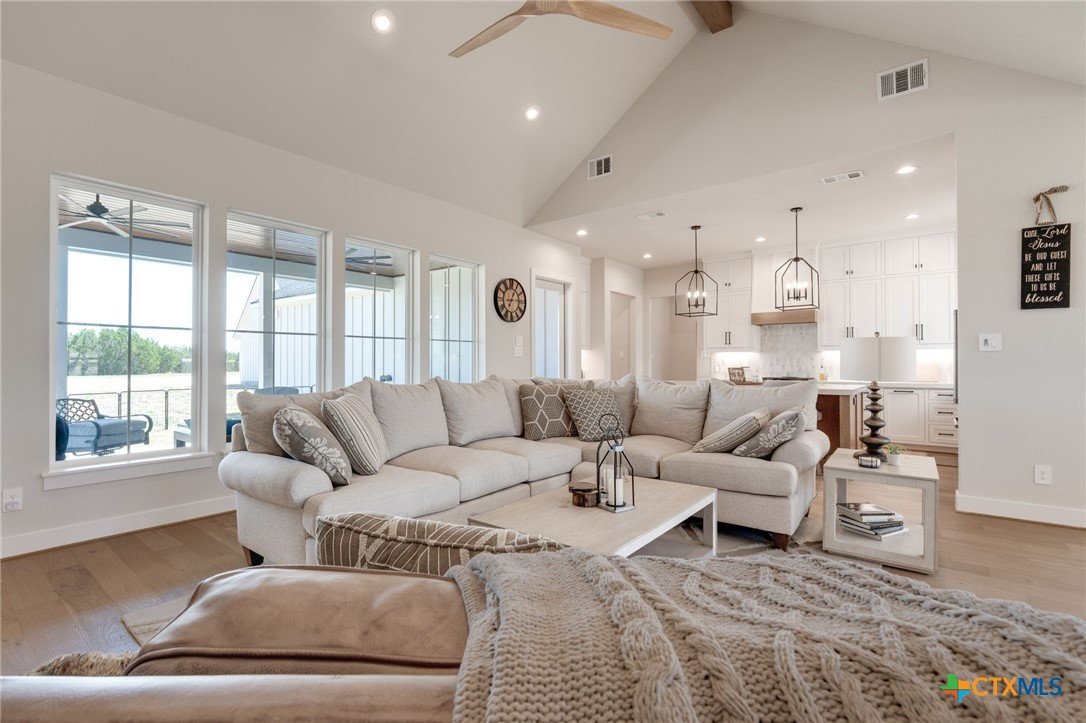 This stunning 4-bedroom, 3-bath home, built in 2024, blends modern luxury with peaceful country living on 15.250 acres. Step inside to soaring 17-foot ceilings and an open, light-filled layout anchored by a cozy gas log fireplace and elegant built-ins throughout. The chef’s kitchen is designed to impress, featuring quartz countertops, large center island with bar seating, high-end finishes, and a spacious walk-in pantry—perfect for both everyday living and entertaining. Rich hardwood floors flow through the main living areas, while a large utility room and mudroom add both convenience and functionality. The gorgeous primary suite offers a private retreat with ample space and thoughtful design. Every detail in this home has been carefully considered, including structured wiring and an energy-efficient tankless water heater. Outside, enjoy a lovely back patio finished with ceramic tile—ideal for relaxing or hosting guests. The property also includes a 900-square-foot detached shop with 1/2 bath, with an attached 22 x 30 carport, providing plenty of space for projects, storage, or equipment. Fresh new sod surrounds the home, while the expansive acreage offers privacy, beauty, and a seasonal creek that enhances the natural landscape. With a wildlife exemption in place for low taxes, this property is as practical as it is picturesque. This property is the whole package!