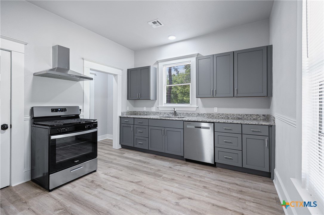 This delightful 3-bedroom, 2-bathroom home beautifully combines classic elegance with modern comfort in one inviting space. Featuring spacious oversized rooms, it offers plenty of room for both relaxation and entertaining. The original hardwood floors found throughout most of the home contribute a timeless beauty and warmth, enhancing the overall ambiance. With a new water heater and gas range, you can enjoy efficient and dependable utilities. The updated bathrooms, with a new walk-in shower and modernized shower/tub valves, deliver a refreshing experience. The addition of new granite countertops not only improves functionality but also brings an elegant touch to your kitchen. Stylish new fans and light fixtures, along with luxury vinyl plank flooring in the kitchen and bathrooms, ensure both aesthetic appeal and durability. Fresh paint throughout the interior and on the porch, paired with new porch railing, revitalizes the entire space. A walk-in pantry offers valuable storage, while the updated electrical and plumbing systems guarantee that your home remains efficient and up-to-date. Plus, with a newer AC unit installed within the last five years, you'll be comfortable throughout the year.