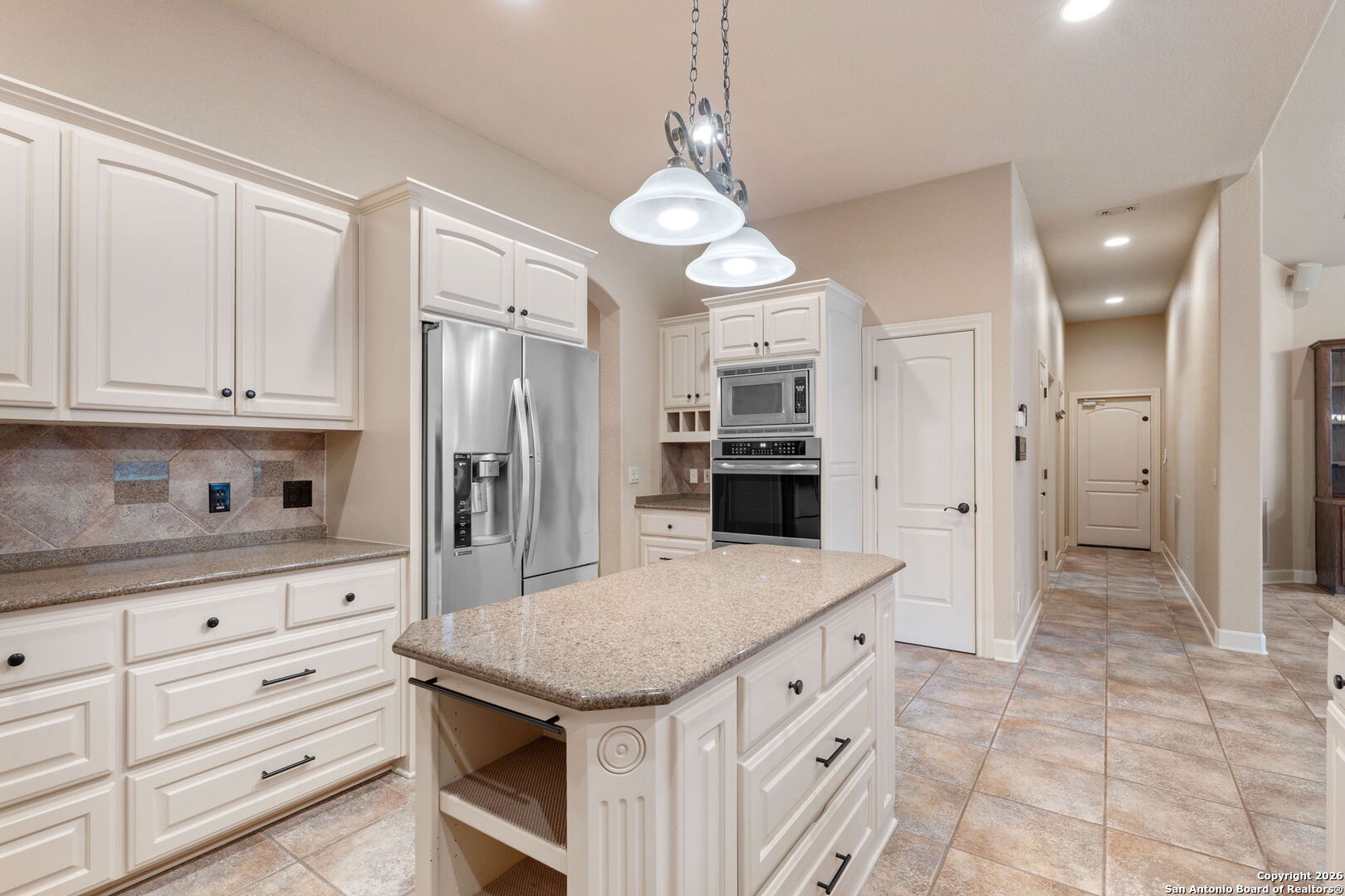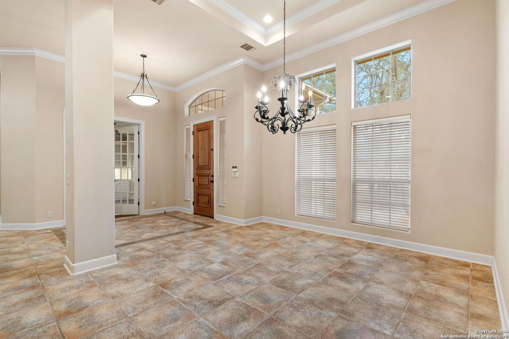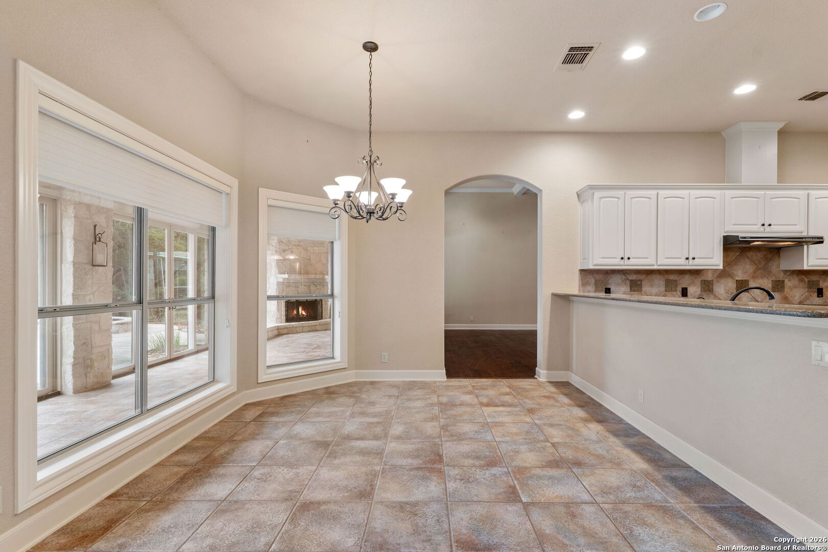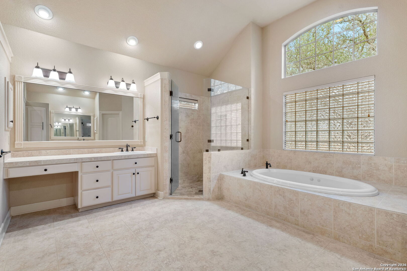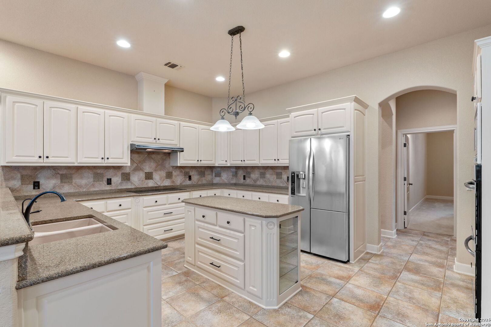 Stunning 3-bedroom, 2.5-bath home with a 3-car side-entry garage located in the desirable Fair Oaks Ranch community and zoned to Boerne ISD. Offering 4,111 sq ft of thoughtfully designed living space, this home features a grand entry, abundant natural light, and multiple living and dining areas ideal for both everyday living and entertaining. The island kitchen is well-appointed with built-in appliances and ample cabinetry, opening seamlessly to the main living space. A private study with wood flooring and custom built-ins provides the perfect work-from-home retreat. The spacious primary suite includes a spa-like bath with dual vanities, a separate soaking tub and walk-in shower. Indoor-outdoor living shines with an enclosed patio featuring a fireplace and sliding glass doors leading to a beautiful in-ground pool and spa, all surrounded by mature trees for privacy and serenity. Conveniently located near shopping, dining, and major roadways, this exceptional home offers comfort, space, and elegance in one of Fair Oaks Ranch's most established neighborhoods. Welcome home!
