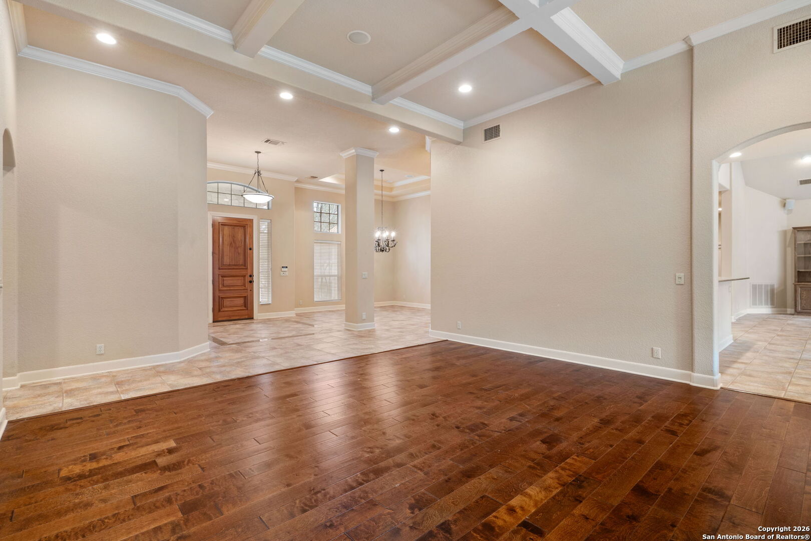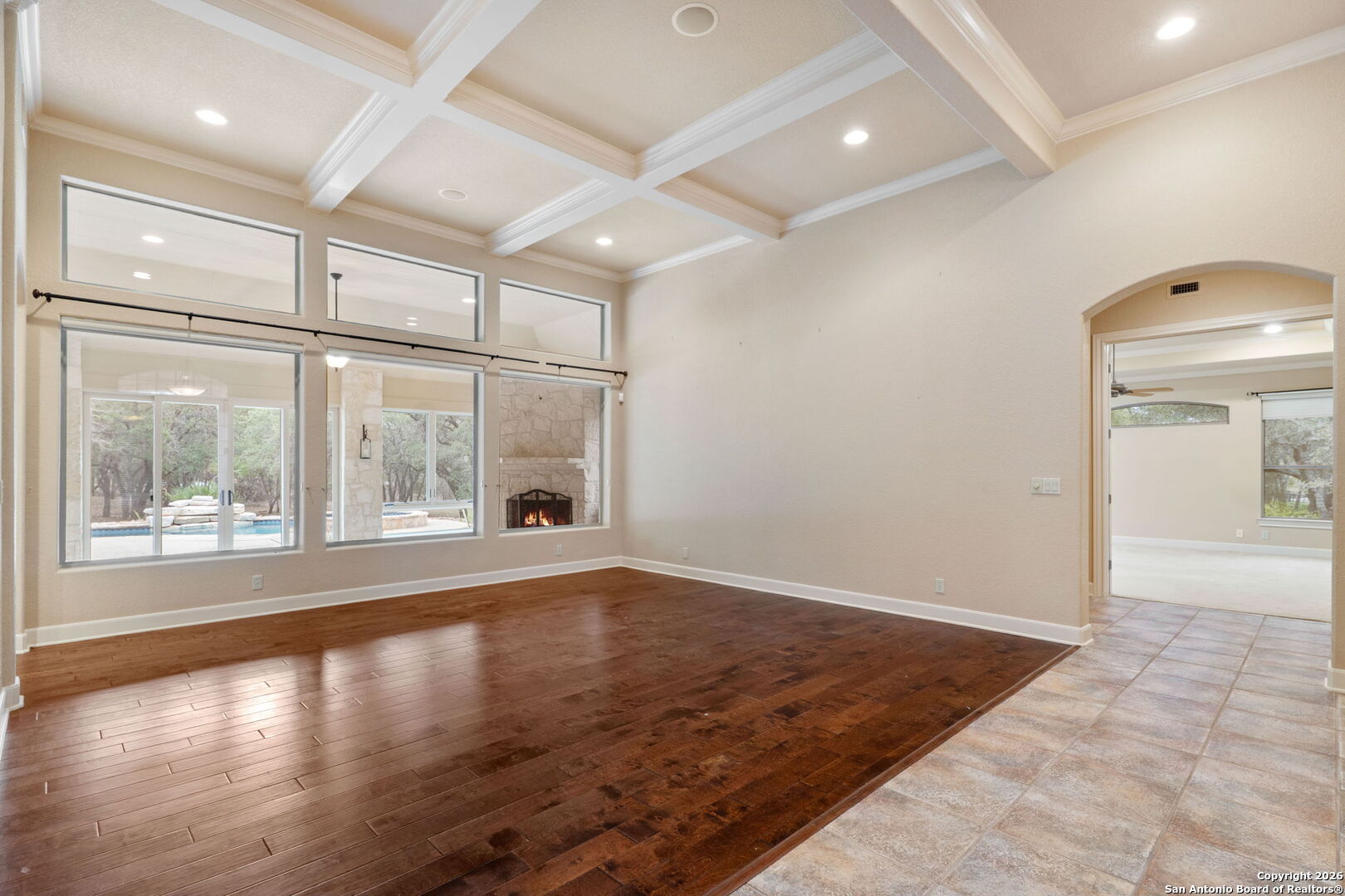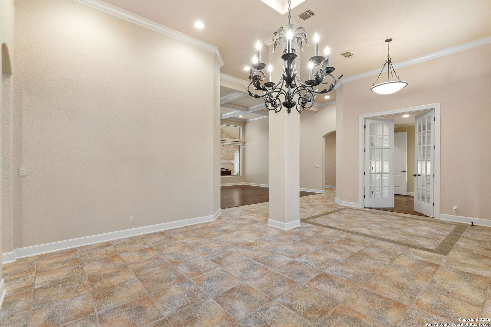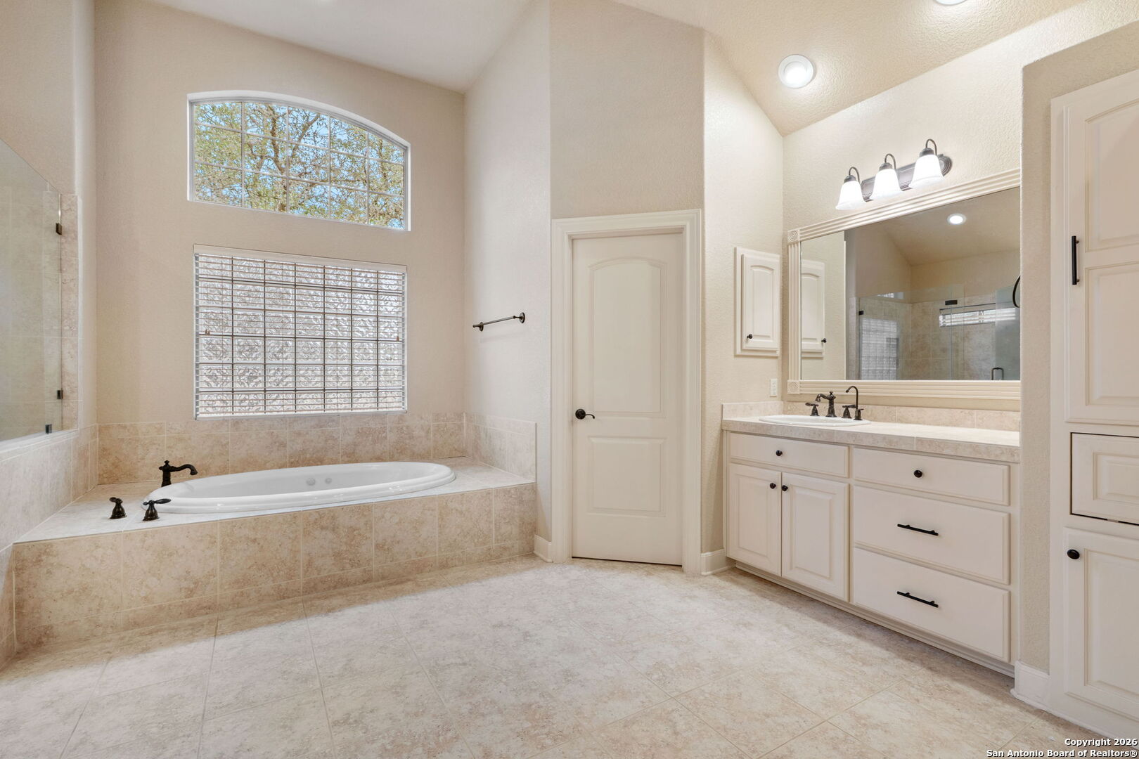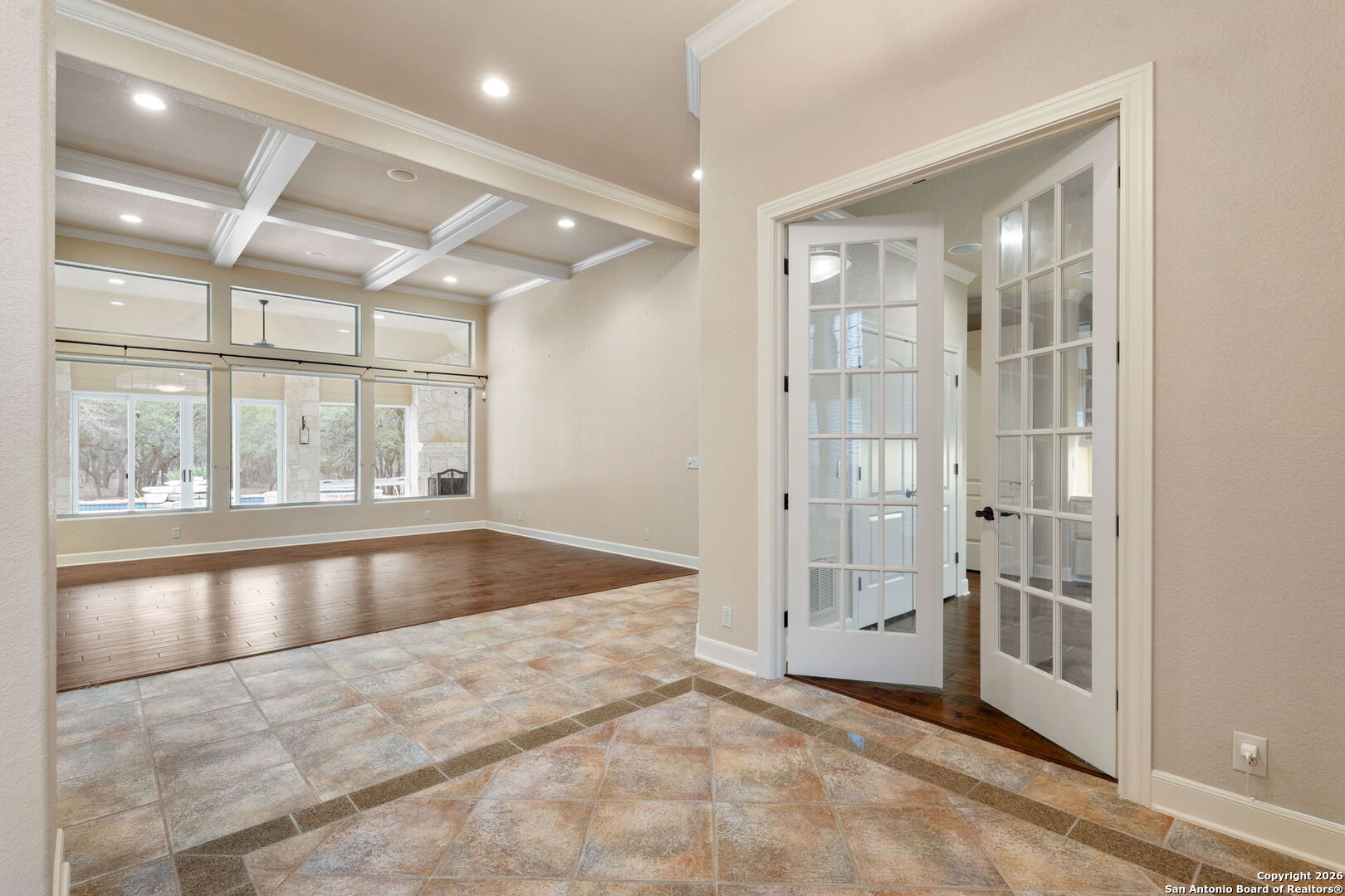 Stunning 3-bedroom, 2.5-bath home with a 3-car side-entry garage located in the desirable Fair Oaks Ranch community and zoned to Boerne ISD. Offering 4,111 sq ft of thoughtfully designed living space, this home features a grand entry, abundant natural light, and multiple living and dining areas ideal for both everyday living and entertaining. The island kitchen is well-appointed with built-in appliances and ample cabinetry, opening seamlessly to the main living space. A private study with wood flooring and custom built-ins provides the perfect work-from-home retreat. The spacious primary suite includes a spa-like bath with dual vanities, a separate soaking tub and walk-in shower. Indoor-outdoor living shines with an enclosed patio featuring a fireplace and sliding glass doors leading to a beautiful in-ground pool and spa, all surrounded by mature trees for privacy and serenity. Conveniently located near shopping, dining, and major roadways, this exceptional home offers comfort, space, and elegance in one of Fair Oaks Ranch's most established neighborhoods. Welcome home!