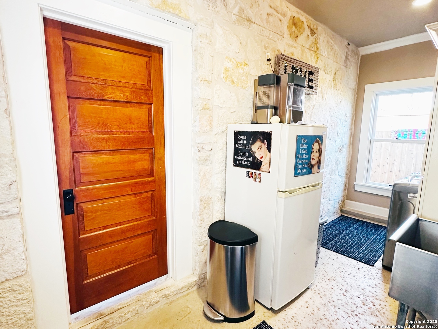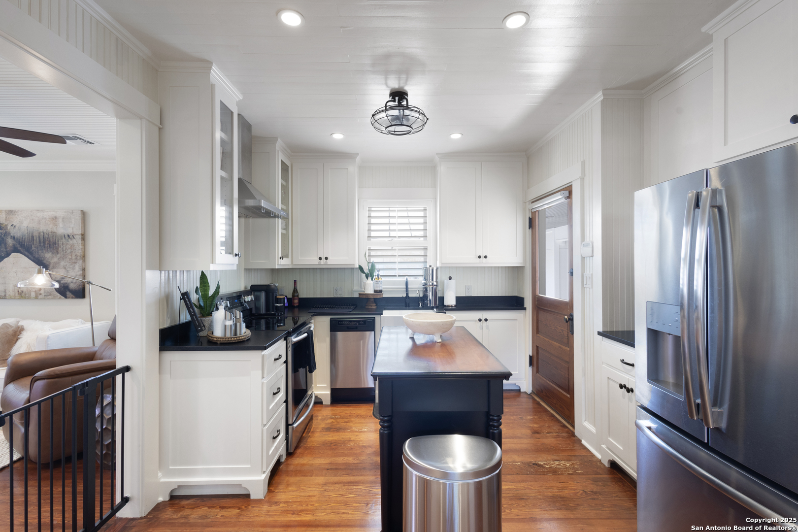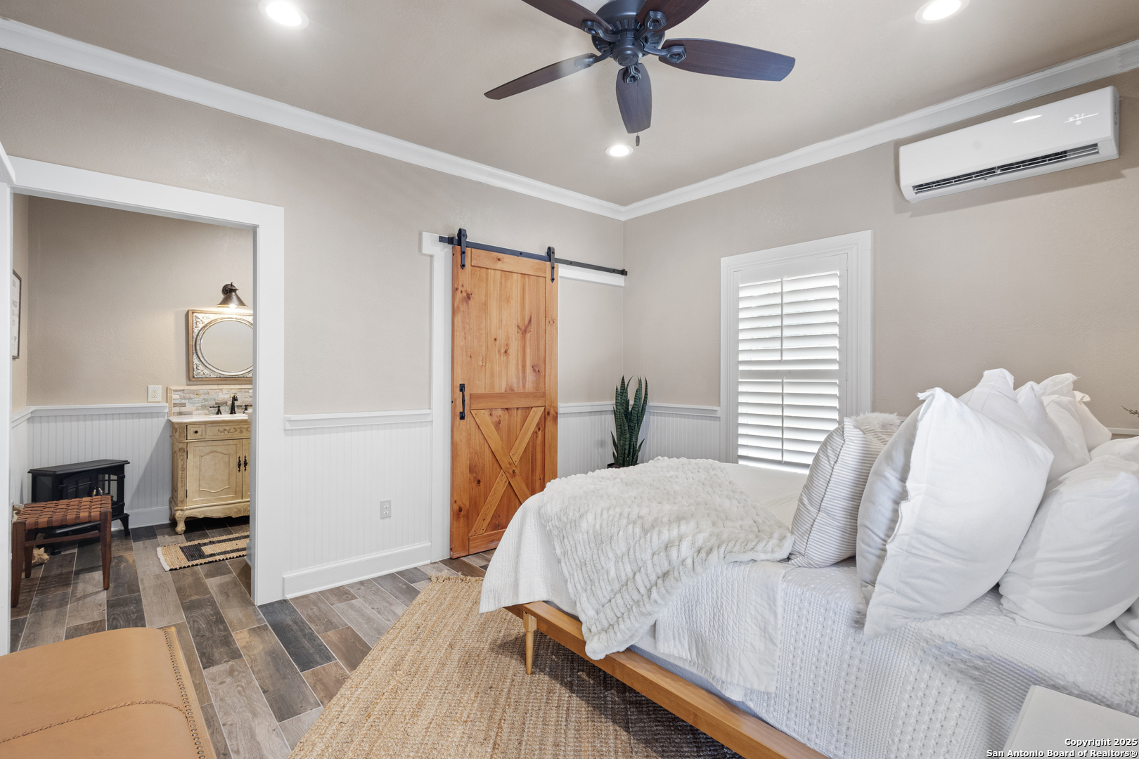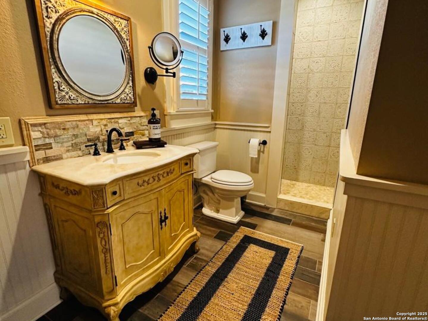 Charming 1940s Home in the Heart of Boerne - Includes Detached Casita Fully restored and thoughtfully remodeled, this charming 2-bedroom, 1-bath home is located just a short walk from Boerne's Main Street and all the shops, dining, and events the town has to offer. The property includes a beautifully finished 396 SQFT casita with 1 bedroom and full bath - ideal for guests, extended family, or potential income-producing use. The main home blends historic character with modern updates, featuring beadboard, reclaimed wood flooring, plantation shutters, and a classic ball-foot tub. The spacious master bedroom includes two walk-in closets. The kitchen showcases custom cabinetry and a farmhouse sink. Enjoy relaxing evenings on the covered front porch or by the stone fireplace in the private backyard, enclosed with an 8-ft privacy fence. The casita offers ceramic tile flooring, a full bath with walk-in shower, and its own entrance-perfect for short-term rentals or guest accommodations. Whether you're looking for a unique personal home, a short-term rental opportunity, or a future B&B, this one-of-a-kind property delivers flexibility, charm, and unbeatable location.