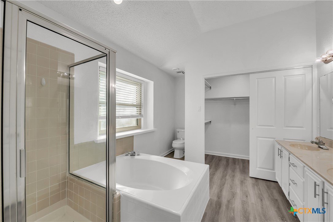 This is a must see!! Owner has meticulously done so many improvements and it shows! New flooring throughout, New Granite Counter tops, Interior paint, all new appliances, new garage door, new light fixtures, brand new HVAC Duct work and Attic Insulation, brand new electric fireplace with remote and more! The open kitchen boasts lots of Counter space perfect for entertaining friends and family. Flowing floor plan with high ceilings through out. The master bedroom is complete with two large closets and an on suite bath with separate bath. Take a tour today, you will be glad you did!