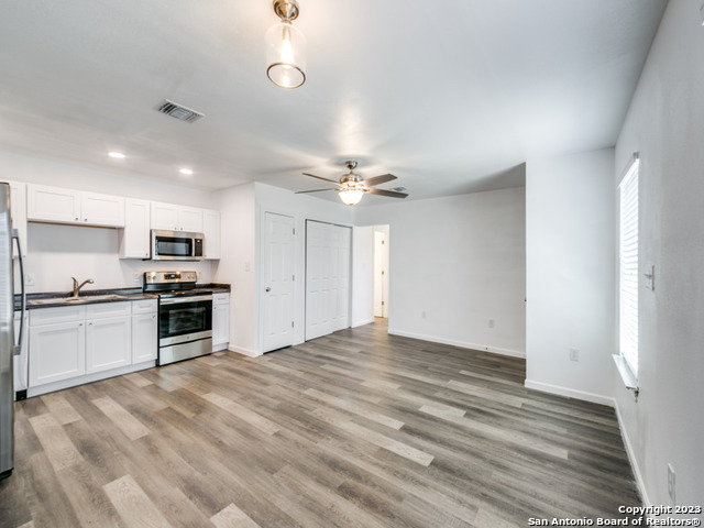 Quaint home in the heart of San Antonio minutes away from the Quarry shopping center! This home has two bedrooms ! Large open kitchen and living room area perfect for your entertaining needs. Amazing upgrades. No carpet throughout the home. Kitchen is equipped with all stainless steel appliances, come see what it can offer you and make it your HOME SWEET HOME! This will be the back unit behind the main house.