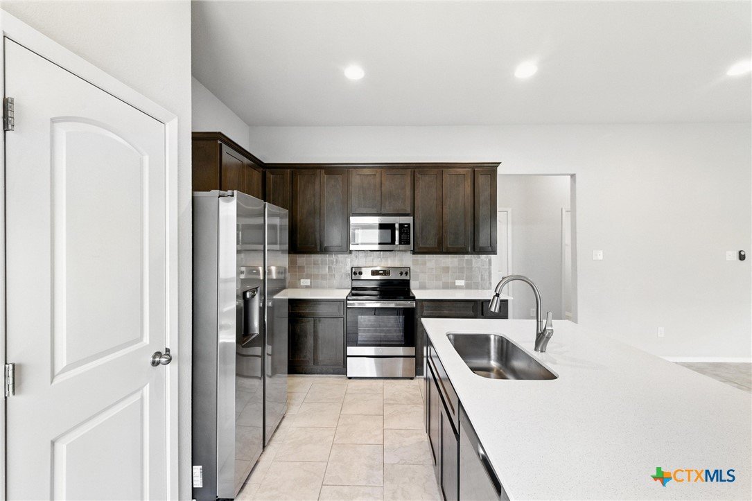Go and Show! Charming Craftsman– Move-In Ready! Step inside this beautifully designed Waterloo floorplan by Brohn Homes and enjoy a bright, open layout with soaring 10-foot ceilings and an abundance of natural light. The spacious kitchen features modern cabinetry, a stylish designer backsplash, and quartz countertops that carry through to all bathrooms, blending modern design with timeless appeal. Entertaining is effortless with an airy flow from the living and dining areas to the covered patio, perfect for indoor-outdoor living. Durable tile flooring extends through all main living spaces for both style and easy maintenance. The home is fully landscaped with sod and irrigation, creating a welcoming exterior that’s just as appealing as the interior. Located in one of Jarrell’s newest communities, this home offers both comfort and convenience—ready for you to move in and make it your own.