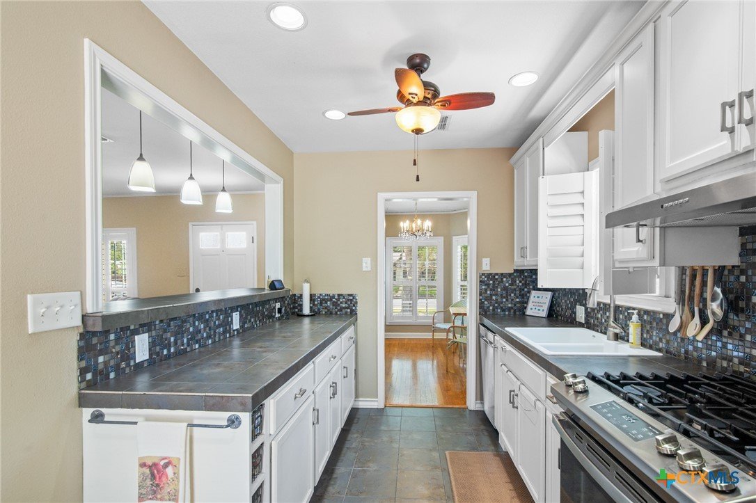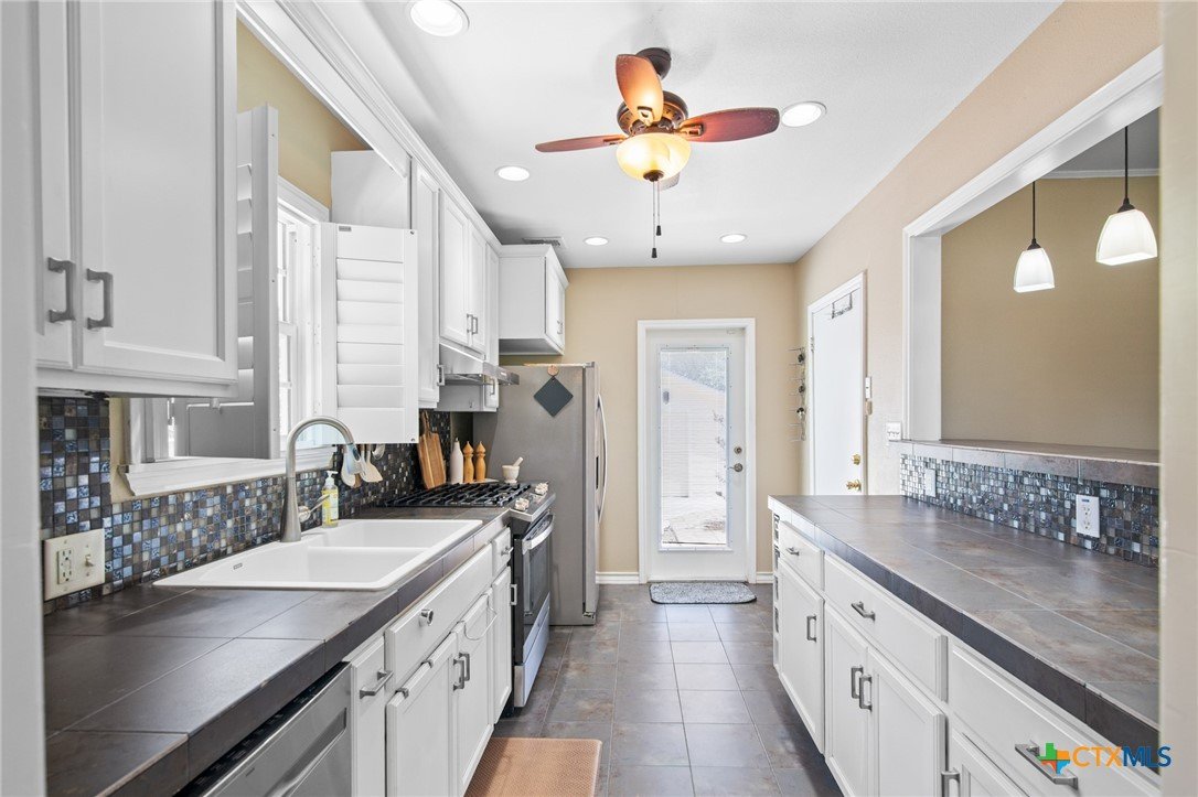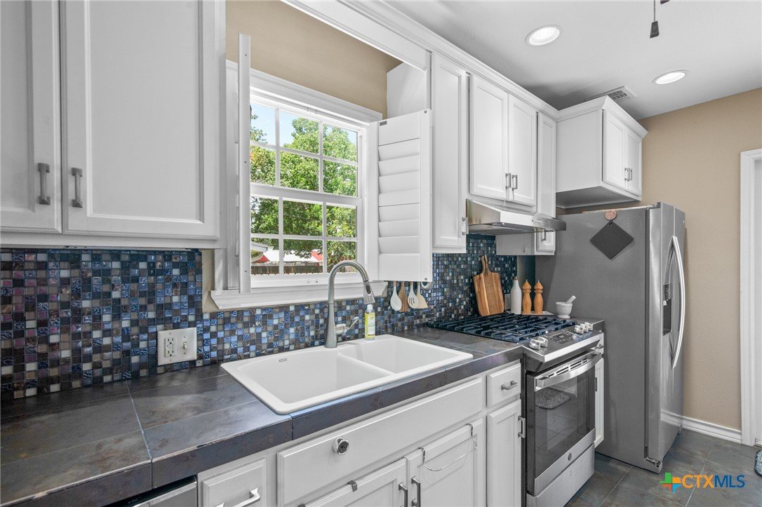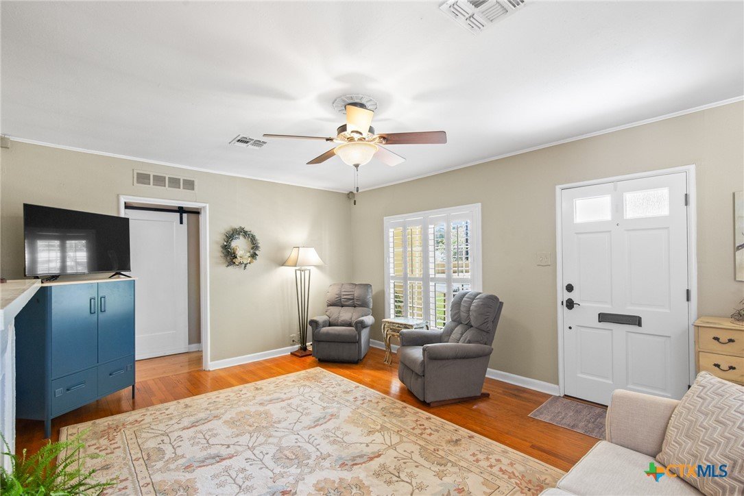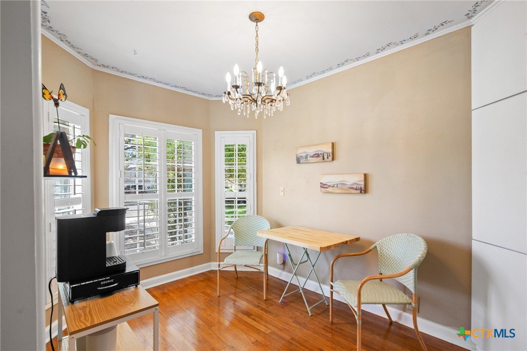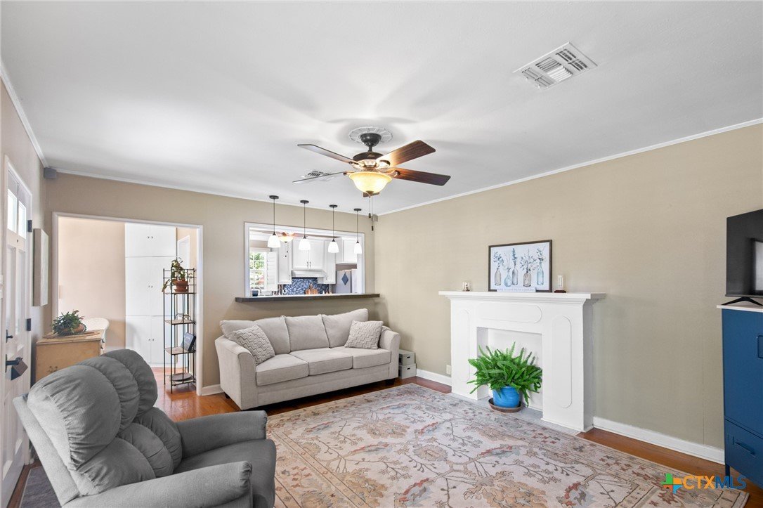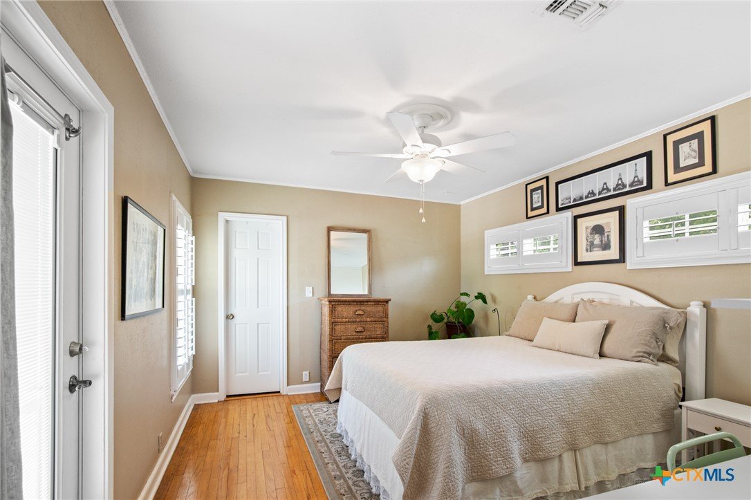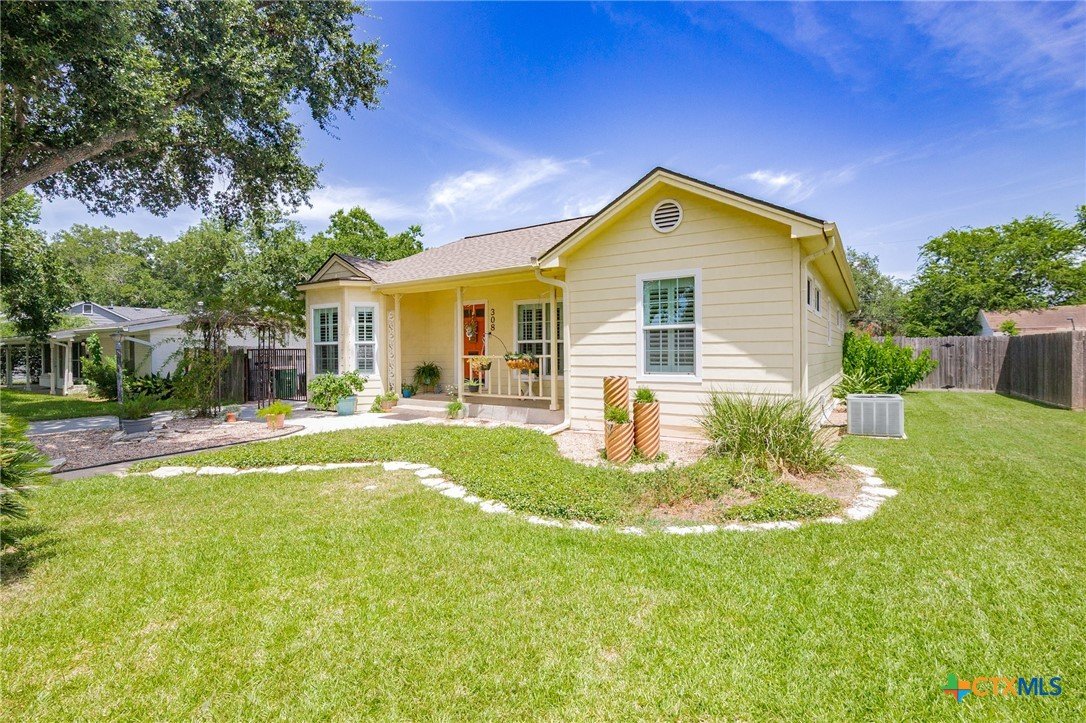 Gorgeous English cottage in the heart of Victoria near Riverside Park. Located on a quiet street, this charming 2 bedroom, 1 bath home greets you with its lush landscaping and cute front porch. The functional floor plan offers a thoughtfully designed living space that perfectly balances character with modern updates. Built in 1942, the home includes the original hardwood floors providing timeless elegance and quality improvements including a new roof, newer hardiplank siding and windows, and a fresh concrete driveway with new automatic gate for added convenience and security. The updated bathroom offers luxury with a large shower with seating and spacious walk-in primary closet providing ample storage. The amazing kitchen space includes a large walk-in pantry making organization a breeze. The property also includes a 2-car garage with storage room, large patio area, and privacy fenced backyard. Located within walking distance of Riverside Park and sitting on a generous lot that offers both privacy and a convenient location. This is the ideal place to call home and enjoy tranquil living inside and out.