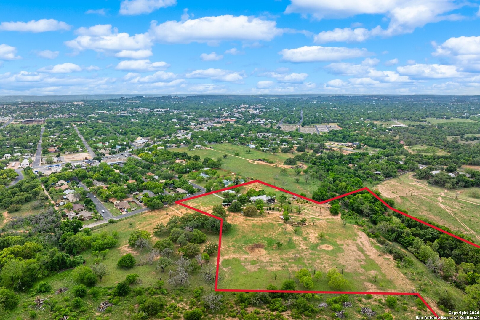 Prime +-15.76 Acres in Fredericksburg City Limits less than 1 mile to Main ST!! Beautiful 1 bedroom, 1.5 bathroom Homestead on the property with a 1 bedroom, 1 bathroom guest house just steps away and connected by the large wood deck. R-1 Zoned for Single Family Residential use, with ADDITIONAL ACREAGE AVAILABLE! Properties of this size inside the city limits of Fredericksburg and located this close to downtown do not come around often! The former Peach, Pecan and Tomato Orchard was once a destination for locals and visitors across the State to come and purchase fresh produce. Still owned by the same family that once ran the Orchard, this property is forever connected to Fredericksburg's incredible history! At the front of the property you'll find the original Homestead that was constructed in the late 1800's and early 1900's. You can still see the history in the Roos block stone that was used to construct the home as it is still in phenomenal condition. The home was fully remodeled in 2019 with an additional 1,830 square feet of living space added on along with a spacious side patio, 874 square foot deck and 660 square foot guest home. There is a .33 acre deer proof garden with a shed, raised garden beds, and 3 rows of fruit trees in place. Large Post Oak Trees and a grove of Live Oak Trees cover the land while Barons Creek meanders along the Northern portion of the property for more than 1,000 feet, and includes both side of the creek. The land gently slopes toward the creek and allows for easy access down to the waters edge where Mexican Sycamore and mature Pecan Trees line the banks. Although the full property is within the City Limits, it still carries an AG Exemption to keep the taxes on the land to a minimum. City utilities (water, sewer and gas) are conveniently located in the street, and additionally, 24-inch sewer lines are in place at the front and back of the property. Atmos Gas is ran to the house and connected to the whole home Generac generator. There is an RV hook up available to store large horse trailers or RV's. The barn is conveniently located near the main home at the front of the property to allow for storage of UTV/ATVs or other equipment. A second pole barn is in place for more storage of equipment and trailers. With close proximity to Fredericksburg's Main Street which boasts over 100 restaurants, bars, and shops, this is an unmatched opportunity for end users, developers and investors alike. Whether you are looking for a property for residential development, or the perfect canvas to build out your dream home, 308 Oakhaven offers the ideal opportunity! 1114 Meadowlark is also for sale next to this property and is 4.5 acres.