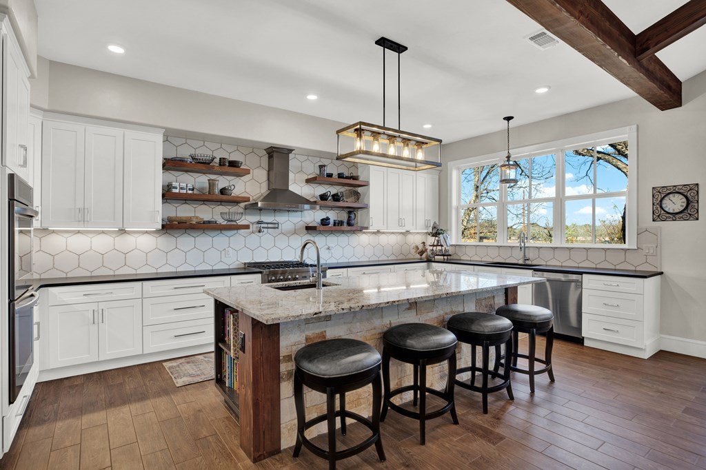 Prime 20.3 Acres in Fredericksburg City Limits less than 1 mile to Main ST!! R-1 Zoned for Single Family Residential use. Properties of this size inside the city limits of Fredericksburg and located this close to downtown do not come around often! The former Peach, Pecan and Tomato Orchard was once a destination for locals and visitors across the State to come and purchase fresh produce. Still owned by the same family that once ran the Orchard, this property is forever connected to Fredericksburg's incredible history! At the front of the property you'll find the original Homestead that was constructed in the late 1800's and early 1900's. You can still see the history in the Roos block stone that was used to construct the home as it is still in phenomenal condition. The home was fully remodeled in 2019 with an additional 1,830 square feet of living space added on along with a spacious side patio, 874 square foot deck and 660 square foot guest home. There is a .33 acre deer proof garden with a shed, raised garden beds, and 3 rows of fruit trees in place. Large Post Oak Trees and a grove of Live Oak Trees cover the land with some of the trees being 200 years old! Barons Creek meanders along the Northern portion of the property for more than 1,000 feet, and includes both side of the creek. The land gently slopes toward the creek and allows for easy access down to the waters edge where Mexican Sycamore and mature Pecan Trees line the banks. Although the full property is within the City Limits, it still carries an AG Exemption to keep the taxes on the land to a minimum. City utilities (water, sewer and gas) are conveniently located in the street, and additionally, 24-inch sewer lines are in place at the front and back of the property. The property includes 2 city water taps, and 2 city sewer taps. Atmos Gas is ran to the house and connected to the whole home generac generator. There is an RV hook up available to store large horse trailers or RV's. The barn is conveniently located near the main home at the front of the property to allow for storage of UTV/ATVs or other equipment. A second pole barn is in place for more storage of equipment and trailers. Frontage along the public road way is very sufficient, as the property front all along Meadow Lark Dr for about 630 feet. With close proximity to the vibrant Main Street which boasts over 100 restaurants, bars, and shops, this is an unmatched opportunity for end users, developers and investors alike. Whether you are looking for a property for residential development, or the perfect canvas to build out your dream home, 308 Oakhaven offers the ideal opportunity!