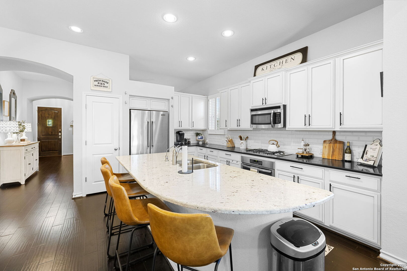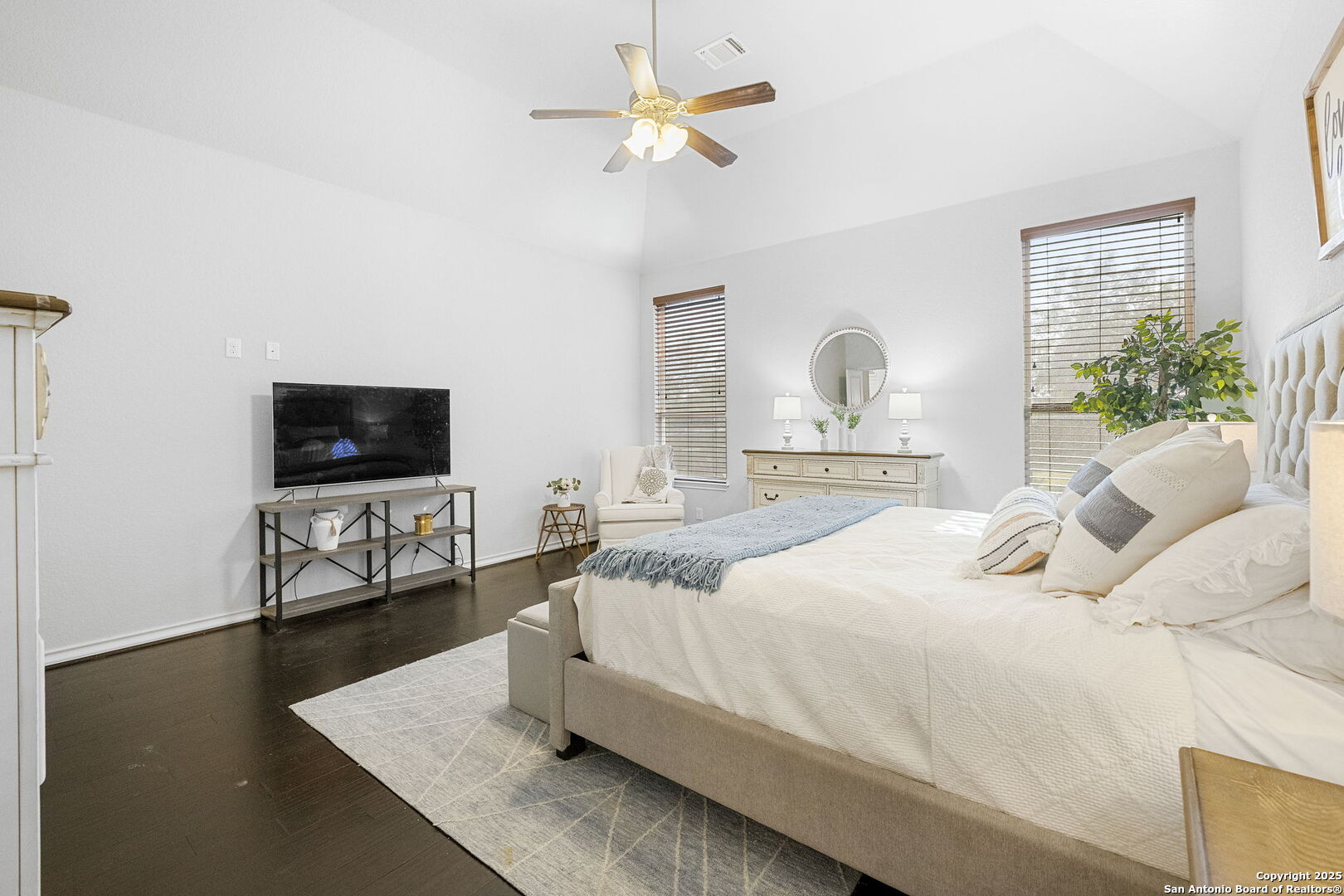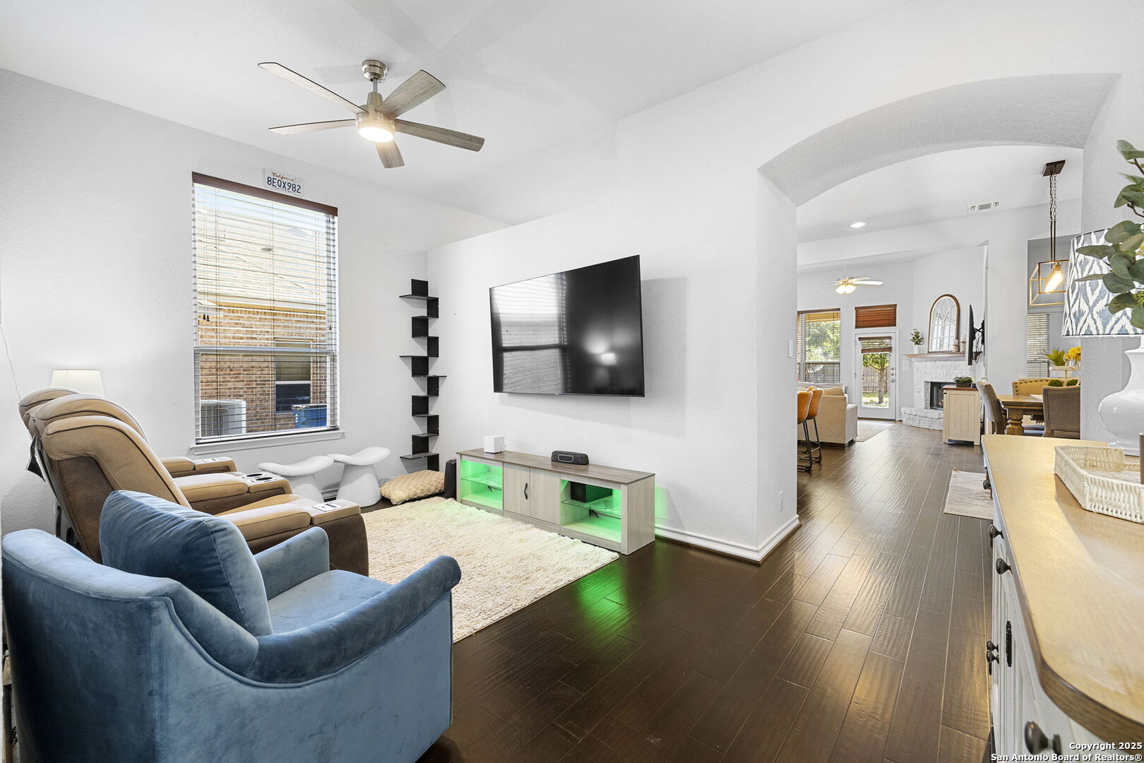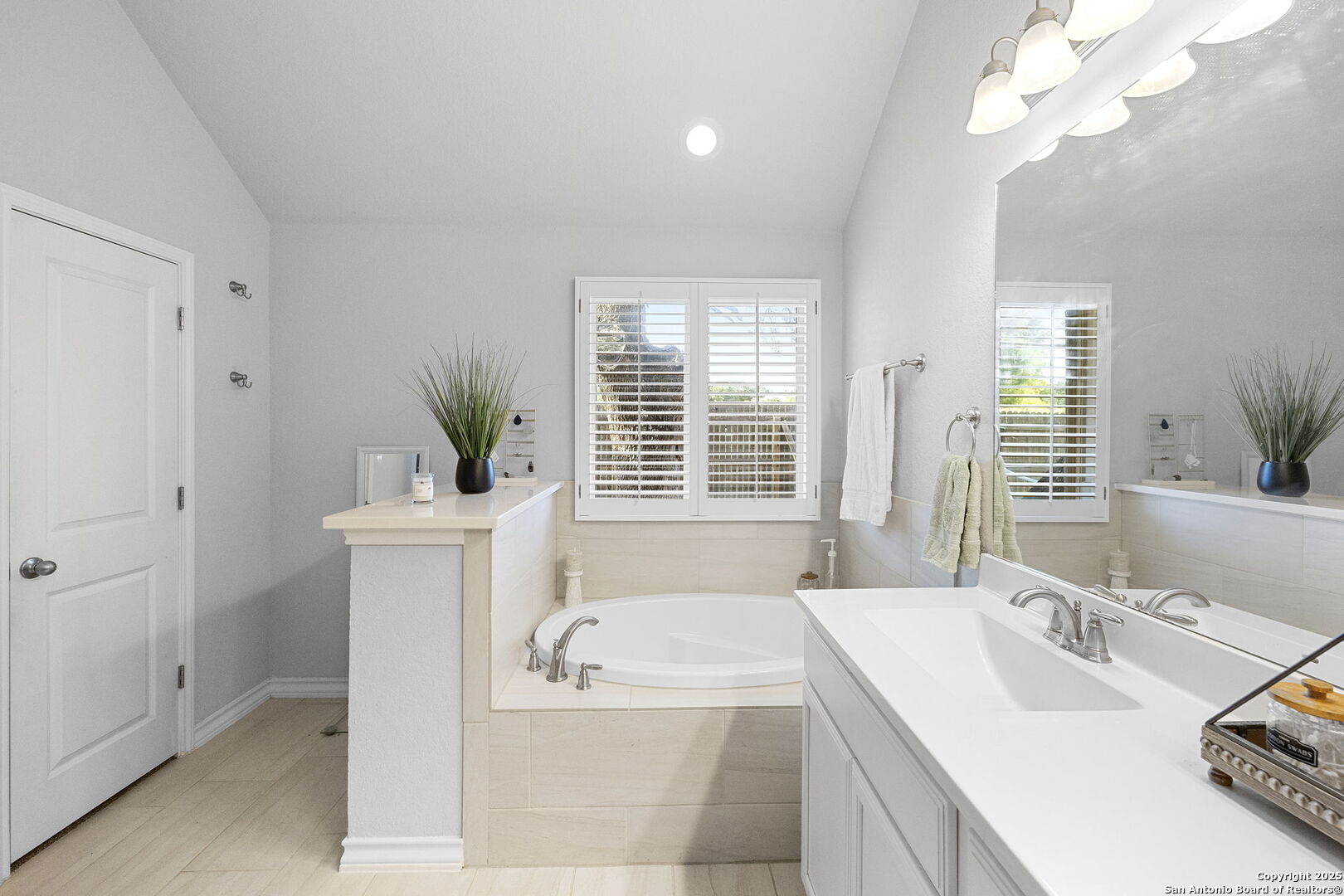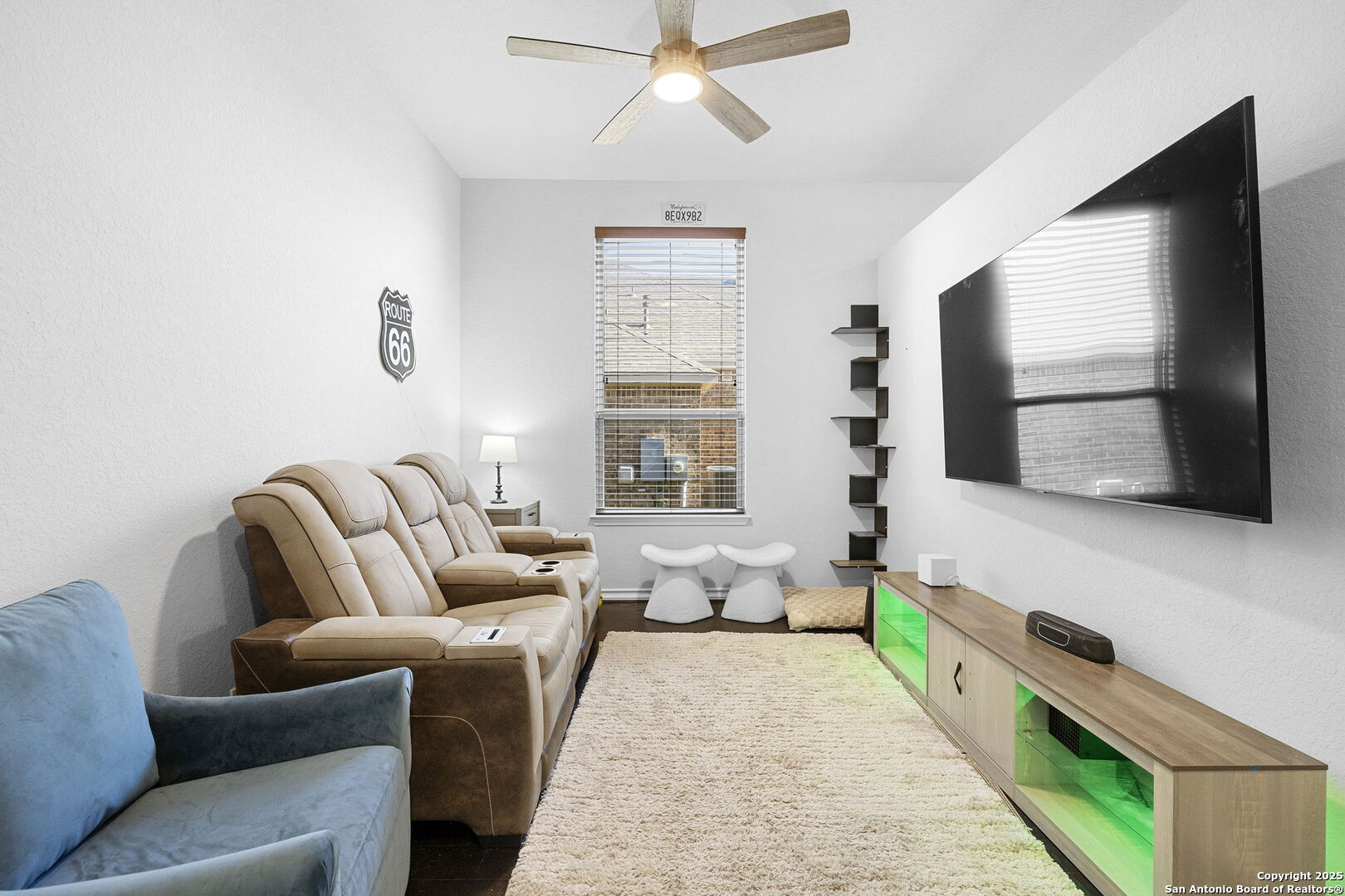 Tucked away on an oversized lot in a desirable gated section of Johnson Ranch, this beautifully maintained one-story home with soaring 12-foot ceilings throughout and 8-foot windows offers 3 bedrooms plus a dedicated office, or use it as a 4th bedroom to suit your needs. With 2.5 bathrooms and a thoughtfully designed layout, this home combines comfort, flexibility, and privacy. The backyard is a true retreat, featuring a practically brand-new in-ground pool with heater and chiller, epoxy-covered patio, lush surroundings, and greenbelt on two sides-providing rare seclusion and plenty of space to relax or entertain. Inside, enjoy spacious living areas, a well-appointed kitchen, and natural light throughout. Oversized three-car garage with epoxy floor is ready for the car enthusiasts. Beautiful walking trails behind this gorgeous property to enjoy relaxing evening strolls. Located just minutes from Hwy 281 with access to top-rated Comal ISD schools, this home offers the perfect blend of small-town charm and big-time convenience. Don't miss the opportunity to own in one of Bulverde's most sought-after neighborhoods!
