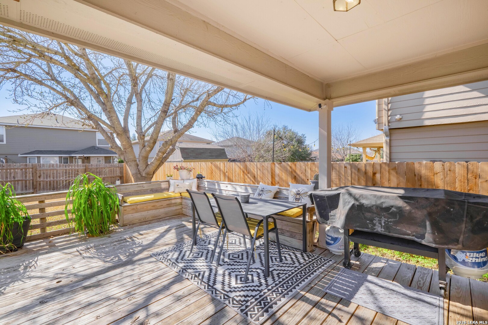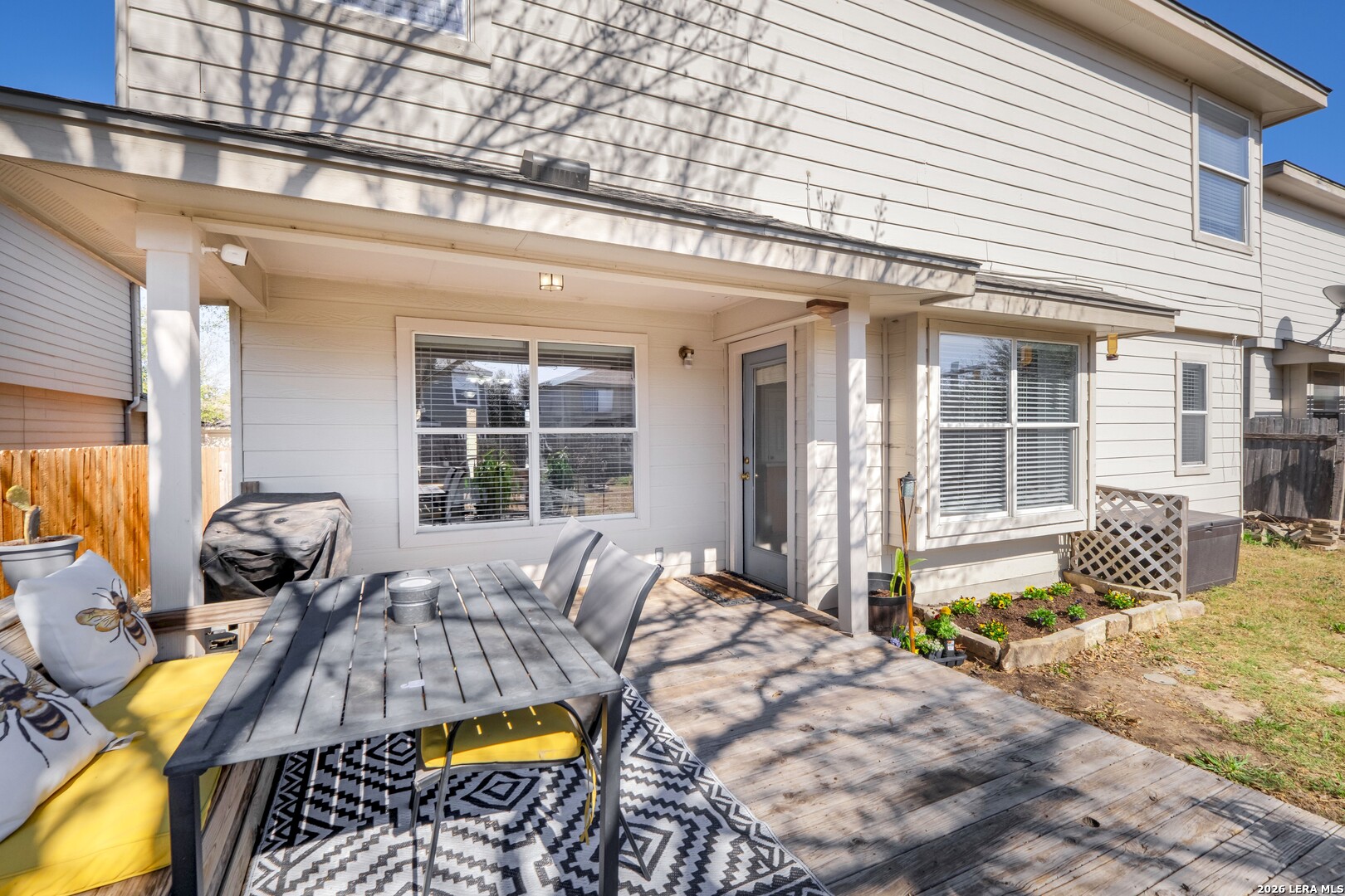 This well-maintained 4-bedroom, 2.5-bath home offers 2,472 sq ft of comfortable living space with a functional layout and numerous updates. The attractive stone/rock front, covered front porch, and attached 2-car garage create excellent curb appeal and everyday convenience. Inside, the living and dining areas flow together in an open-concept layout, ideal for both daily living and entertaining. An archway leads from the dining area into the kitchen, which features a center island, pantry, and ample cabinetry for storage and workspace. A convenient main-level half bath and laundry room add to the home's practicality. All bedrooms are located upstairs, providing excellent privacy from the main living areas. The spacious primary suite features high ceilings, carpeted flooring, a walk-in closet, and an ensuite bath with a double vanity, garden tub, and separate walk-in shower. All secondary bedrooms are also carpeted for added comfort. Step outside to enjoy a covered patio that connects to an open deck, overlooking the spacious wooden-fenced backyard with plenty of room for outdoor activities, pets, or future enhancements. Recent upgrades include new carpet installed in 2025, a new roof installed in 2025, and a new hot water heater in 2024. The foundation has been professionally repaired and comes with a transferable warranty, offering added peace of mind. Ideally located in the heart of New Braunfels, this home offers easy access to Historic Gruene, HEB Plus, Creekside Shopping Center, and I-35, putting dining, shopping, and entertainment just minutes away. Conveniently located just minutes from Oak Creek Elementary School, this home combines space, updates, and a desirable layout in a prime neighborhood setting.