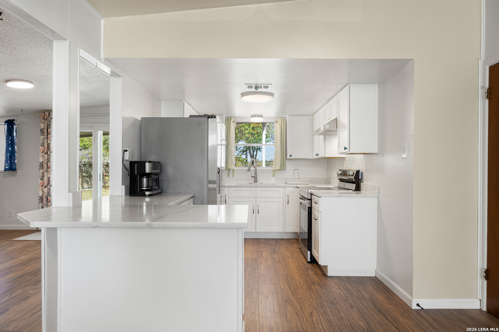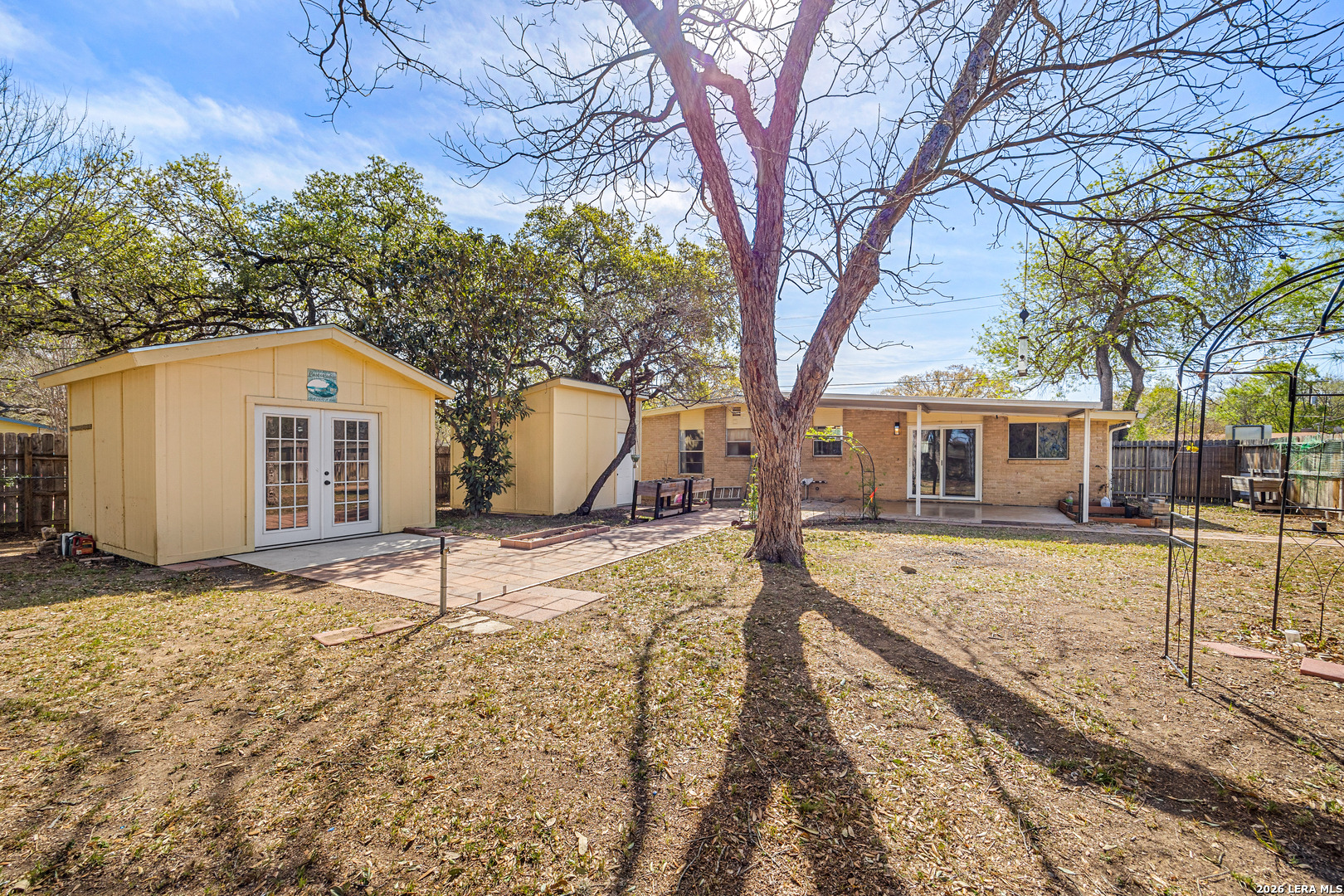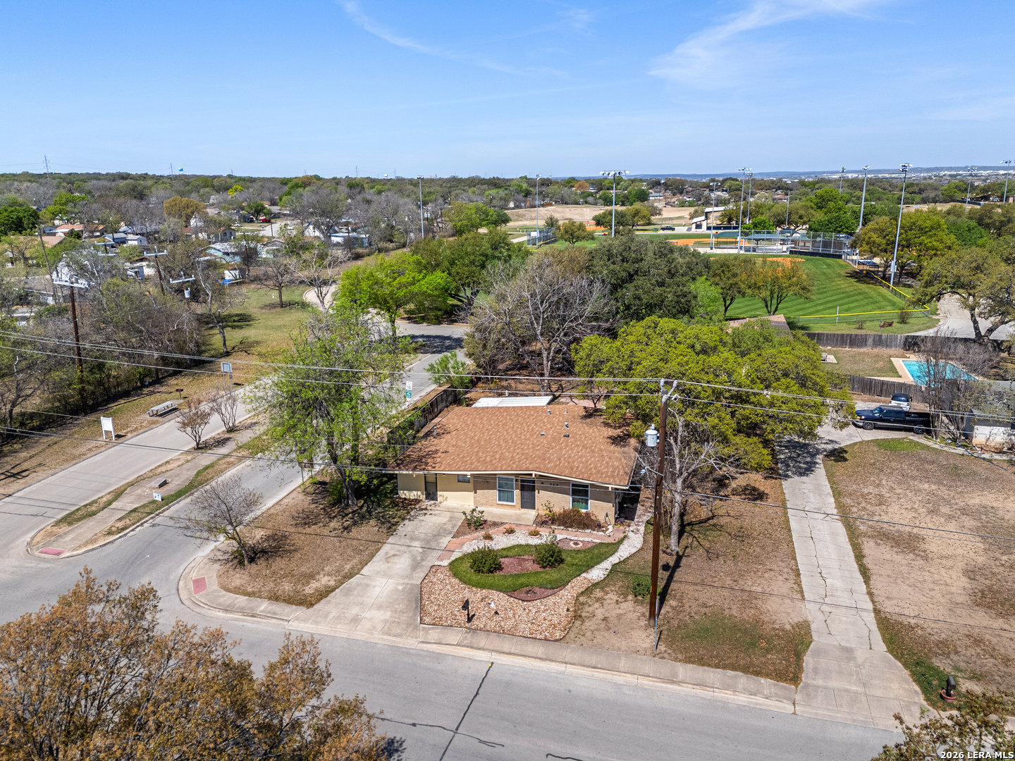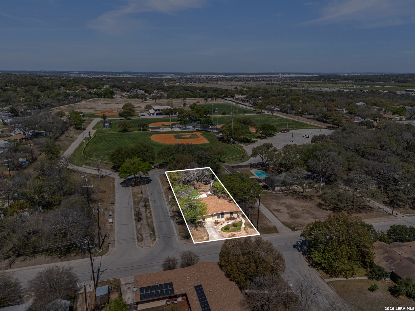 This single-story home offers inviting curb appeal and a functional layout with plenty of possibilities to make it your own. Ideally situated just minutes from Randolph AFB, the property sits on a desirable corner lot with added privacy-no neighbors on one side, where you'll find direct access to the entrance of Universal City Park. The spacious backyard is fully fenced and shaded by mature trees, creating a peaceful outdoor setting that backs up to the park. Inside, the home features multiple living areas, with an open flow between the kitchen, breakfast area, and main living space. A front room provides additional flexibility for a second living area, home office, or more. The converted garage adds extra square footage and can serve as a fourth bedroom or be adapted to suit your needs-whether as a media room, game room, or workspace. The remaining bedrooms are comfortably sized, offering versatility for a variety of living arrangements. With its convenient location, adaptable floor plan, and no HOA----this property presents a great opportunity for homeowners or investors alike.