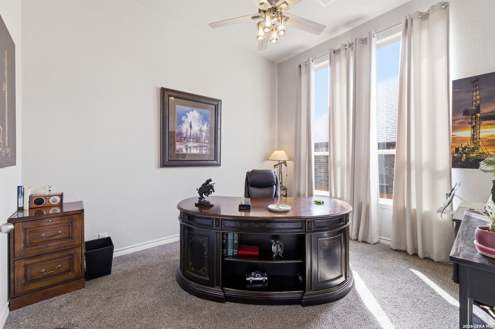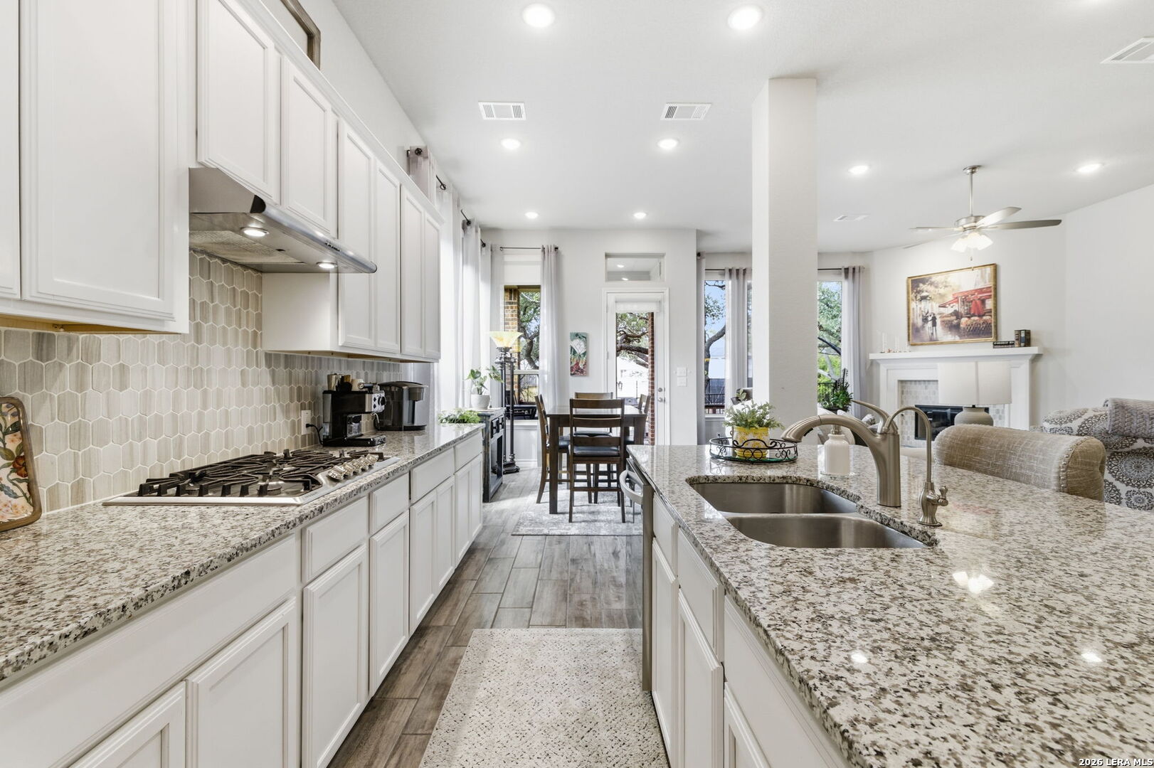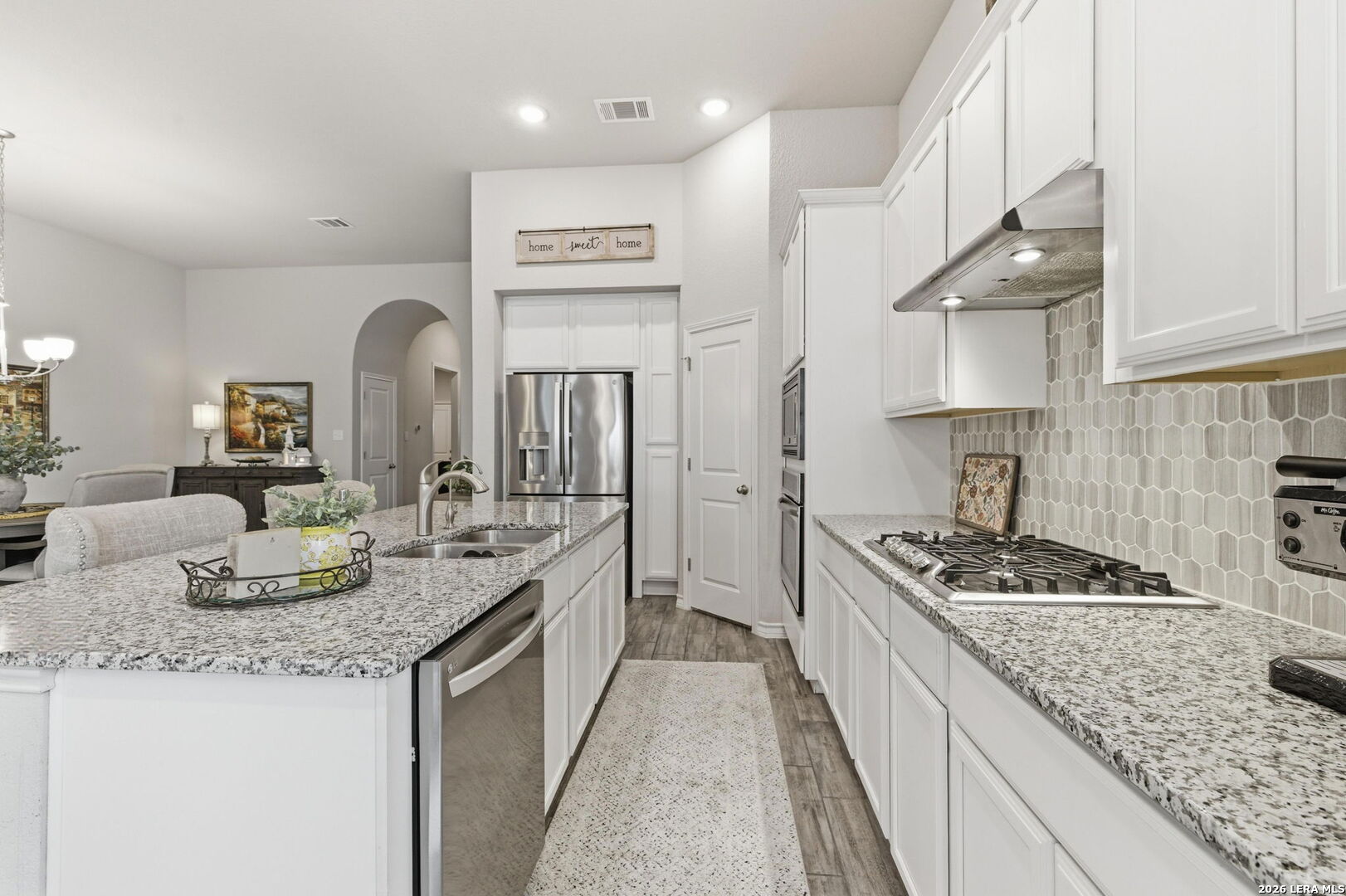 Gorgeous Green belt location, in this four bedroom, three bathrooms, plus light and bright study. Lives like a show Home! Sensational floor plan with an open Great room concept, high ceilings, tall windows with automated shades plus drapes, gourmet kitchen, opening to dining area, breakfast area and living room. Beautiful views to the hundred-year-old oaks are just stunning. Sequestered primary with elegant bay window, spacious primary bath with double vanities Sep. Tub and shower and huge walk-in closet. This is the perfect in-law plan with different wings of bedrooms and bathrooms. High Ceilings throughout with Arched hallways add an elegant flair. Solar panels pass with sale at no cost to Buyer, reverse osmosis, double water heaters, recent inspections, move in ready condition.