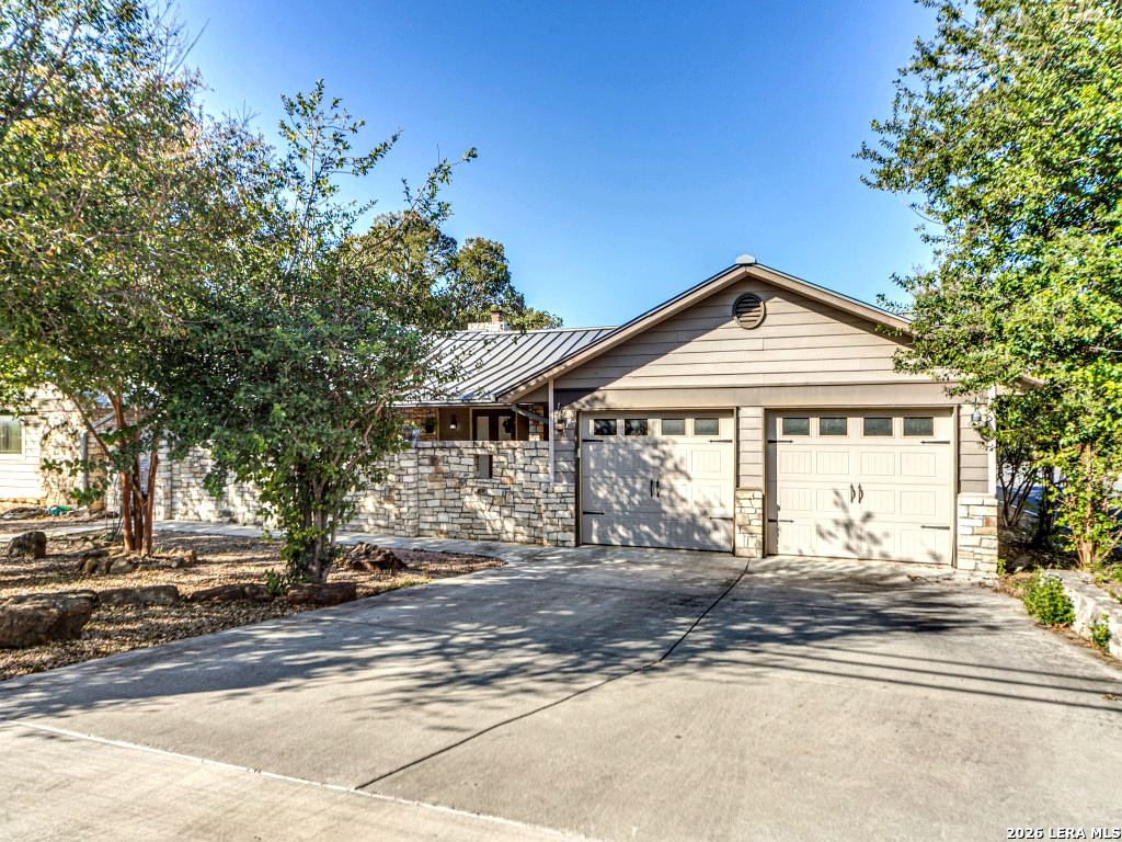 Rare single-story opportunity in Downtown Boerne's highly sought-after Oak Park neighborhood. Just blocks from Main Street, this beautifully updated home offers over 3,000 square feet of timeless character, modern updates, and an unbeatable location where you can walk to Bakery Lorraine, boutiques, restaurants, and year-round local events. Inside, classic Hill Country charm meets thoughtful design with gorgeous Saltillo tile floors, architectural details, and a vaulted, beamed ceiling in the family room centered around a striking two-sided fireplace and subtle mid-century modern vibe. The flexible floor plan features 4 spacious bedrooms and 4 full bathrooms, including large secondary bedrooms with walk-in closets and a potential ensuite option for guests or multi-generational living. The single-story layout offers comfortable living with space for guests, hobbies, and entertaining. The updated kitchen offers granite countertops, a butcher block island, gas cooking, and custom cabinetry with pullouts, creating a space that is both beautiful and functional. The primary suite provides a relaxing retreat with a spa-like bath featuring a large walk-in shower and dual vanities. A standout feature of the home is the oversized utility room, complete with an island, sink, and exceptional storage-perfect for everyday living or hobby space. Situated on over one-third acre in the heart of Downtown Boerne, the private backyard offers multiple decks, a hot tub retreat, aviary (ideal for chickens or a future outdoor kitchen), potting shed, and custom storage shed. Durable stone and cement siding, along with a metal roof, add lasting quality and curb appeal. Homes like this rarely become available in Oak Park-especially a single-story with this much space, charm, and proximity to Main Street.
