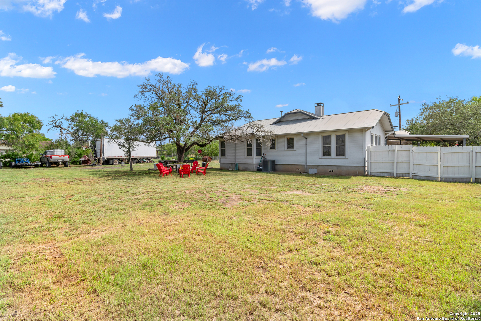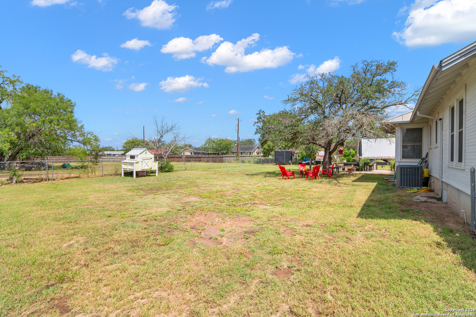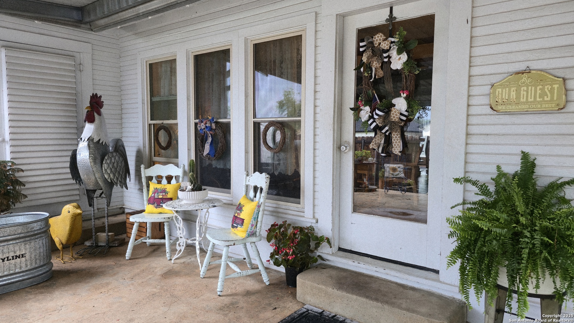 REDUCTION!! VA ASSUMABLE loan for military and NON-military! VA Assumable loans offer many benefits including lower interest rates, lower closing costs and it's a much faster process to close! Own a piece of Poth history! This historic 1935 home, once belonging to one of the original founding families of the town, is full of timeless charm and character. The inviting country bungalow features 3 bedrooms, 3 full baths, an open-concept kitchen and family room with a cozy fireplace, and a great room bathed in natural light. A true time capsule, the home retains much of its original character-from the mid-century oven (still baking like a dream) and natural woodwork to the original cabinetry, cedar-lined linen closet, interior wood shutters, and even a rare basement! More recent touches add fun and functionality, including a custom (and removable) cat window door, whimsical cottage-style landscaping with an antique iron bathtub planter, and a large custom chicken coop-all of which convey with the property. The retro blue refrigerator is always a conversation starter in the bright, cheerful, original yellow-tiled kitchen. Out back, a large oak tree provides ample shade for relaxing evenings, while a spacious cement slab offers room for gardening or future possibilities. Both the front and back porches still feature little footprints from the original owners' children, dated from the 1940s-a heartwarming tribute to the home's enduring legacy. An attached carport serves dual purposes as a covered entertaining area-perfect for grilling or unwinding in rockers while enjoying the sounds of nature. Storage is abundant, with a large trailer (used for storage) that also conveys with the property. Located just a 3-minute drive from the highly desirable Poth ISD, this home is nestled in a friendly and welcoming community. If you're tired of the same cookie-cutter listings and are searching for something truly special-full of history, charm, and a story to tell-come fall in love and make this piece of Poth history your own.