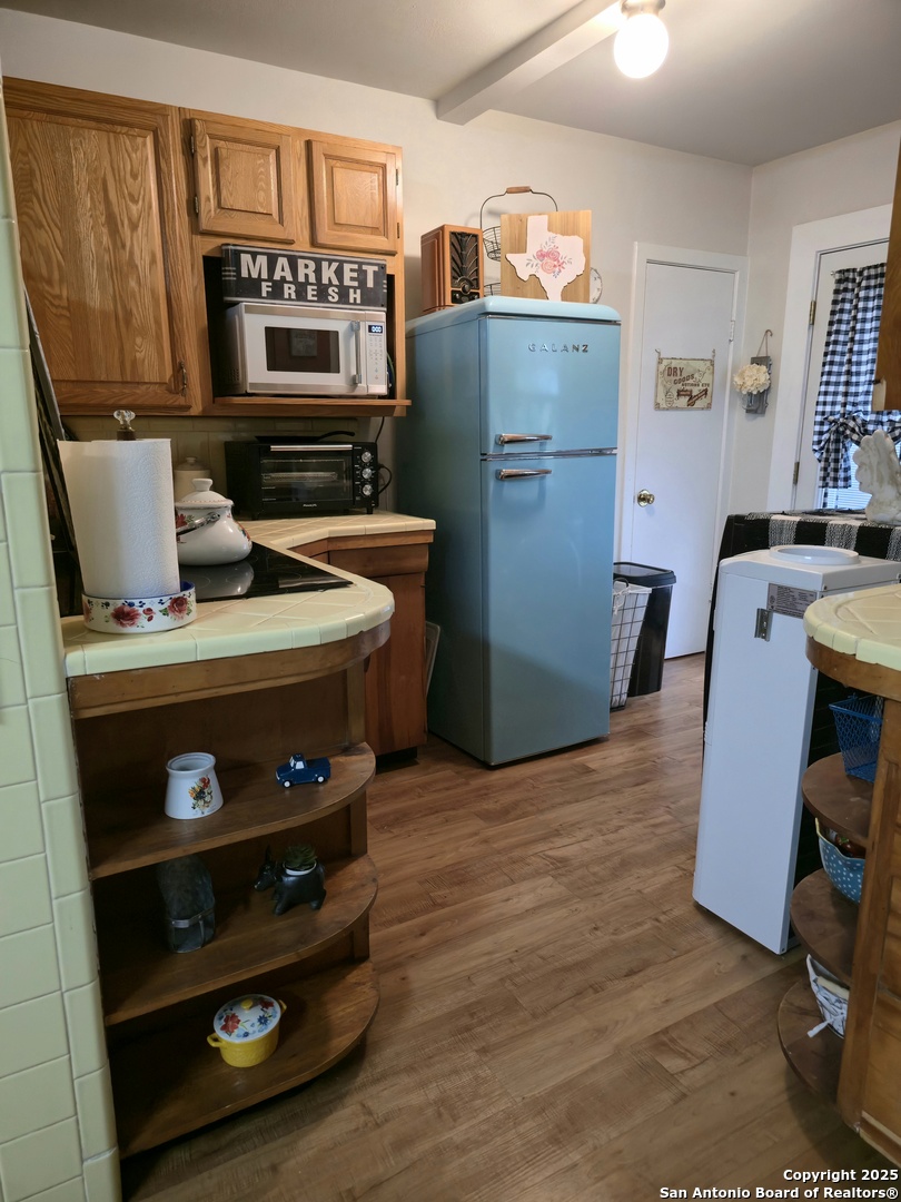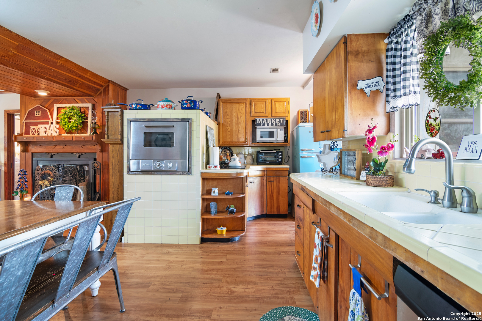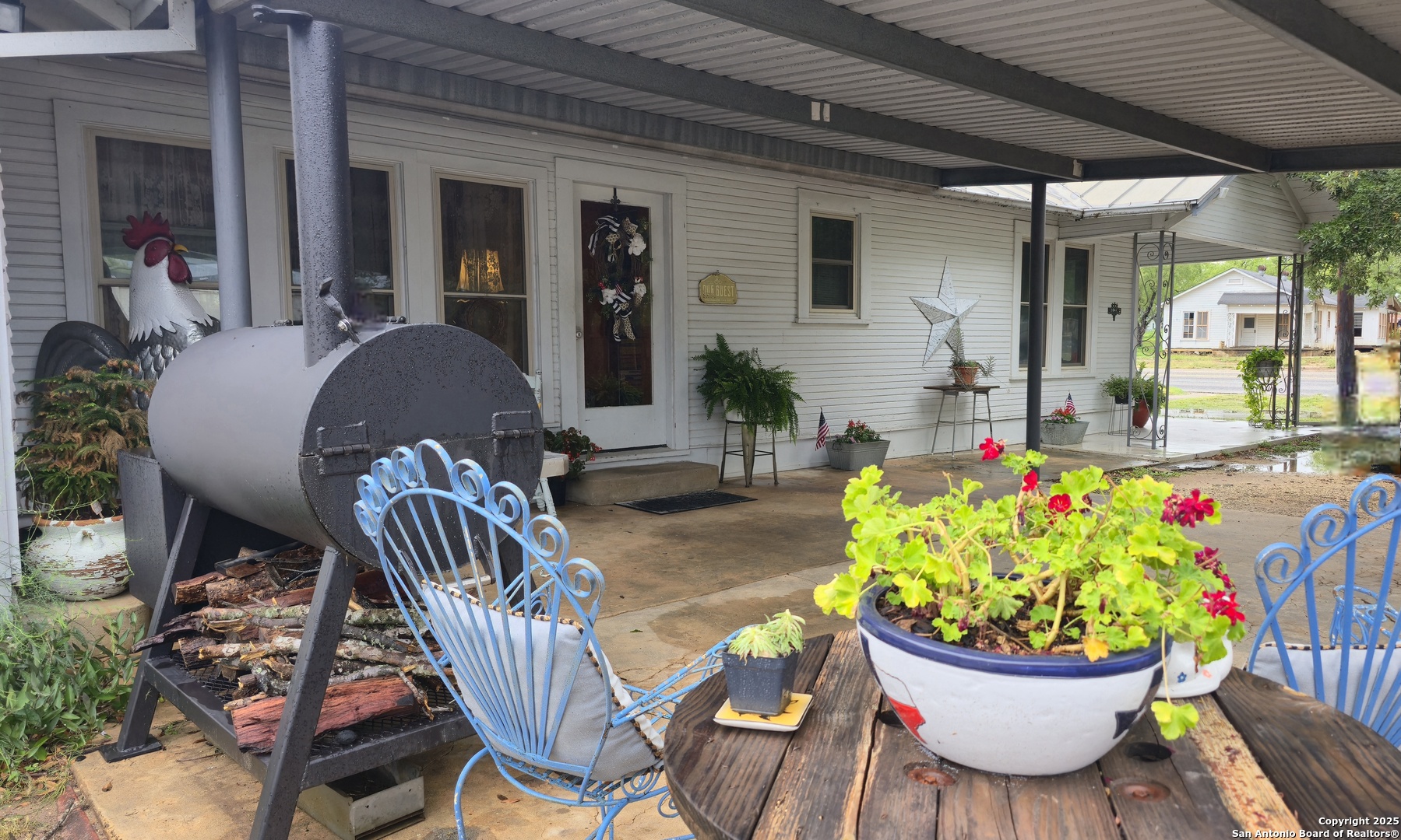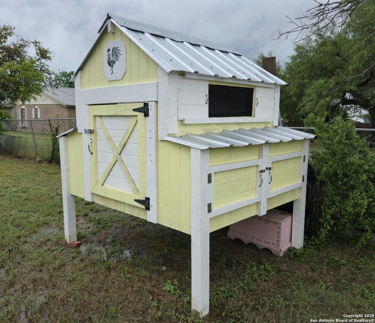 REDUCTION!! VA ASSUMABLE loan for military and NON-military! VA Assumable loans offer many benefits including lower interest rates, lower closing costs and it's a much faster process to close! Own a piece of Poth history! This historic 1935 home, once belonging to one of the original founding families of the town, is full of timeless charm and character. The inviting country bungalow features 3 bedrooms, 3 full baths, an open-concept kitchen and family room with a cozy fireplace, and a great room bathed in natural light. A true time capsule, the home retains much of its original character-from the mid-century oven (still baking like a dream) and natural woodwork to the original cabinetry, cedar-lined linen closet, interior wood shutters, and even a rare basement! More recent touches add fun and functionality, including a custom (and removable) cat window door, whimsical cottage-style landscaping with an antique iron bathtub planter, and a large custom chicken coop-all of which convey with the property. The retro blue refrigerator is always a conversation starter in the bright, cheerful, original yellow-tiled kitchen. Out back, a large oak tree provides ample shade for relaxing evenings, while a spacious cement slab offers room for gardening or future possibilities. Both the front and back porches still feature little footprints from the original owners' children, dated from the 1940s-a heartwarming tribute to the home's enduring legacy. An attached carport serves dual purposes as a covered entertaining area-perfect for grilling or unwinding in rockers while enjoying the sounds of nature. Storage is abundant, with a large trailer (used for storage) that also conveys with the property. Located just a 3-minute drive from the highly desirable Poth ISD, this home is nestled in a friendly and welcoming community. If you're tired of the same cookie-cutter listings and are searching for something truly special-full of history, charm, and a story to tell-come fall in love and make this piece of Poth history your own.