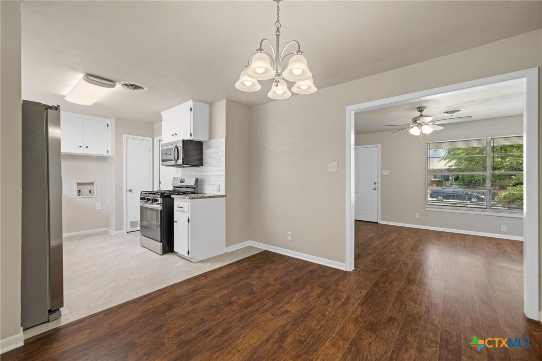 Come see this fully updated 4-bedroom, 1-bath home fresh, modern, and move-in ready! Enjoy NEW INSIDE PAINT, NEW OUTSIDE PAINT, NEW WOOD LAMINATE FLOORING, NEW CARPET, NEW GRANITE COUNTERTOPS, and NEW STAINLESS STEEL APPLIANCES with a GAS RANGE for the chef. The open layout flows smoothly from the kitchen into the dining and living spaces, while the NEW CENTRAL HEAT AND AIR system and a 3-YEAR-OLD ROOF add comfort and value. Outside, you’ll love the fenced yard and single-car front-entry garage. Located in KILLEEN ISD with quick access to schools, shopping, and city conveniences this upgraded home is priced to sell. At this price and with all these upgrades, this home is ready for its new owner. Schedule your showing today.