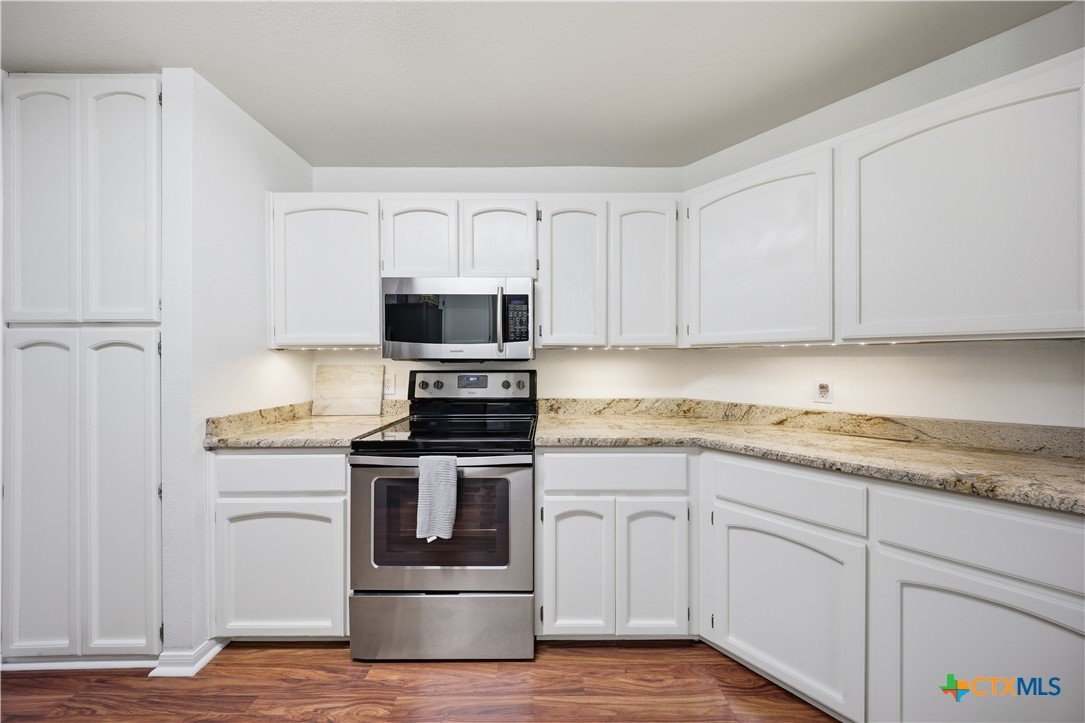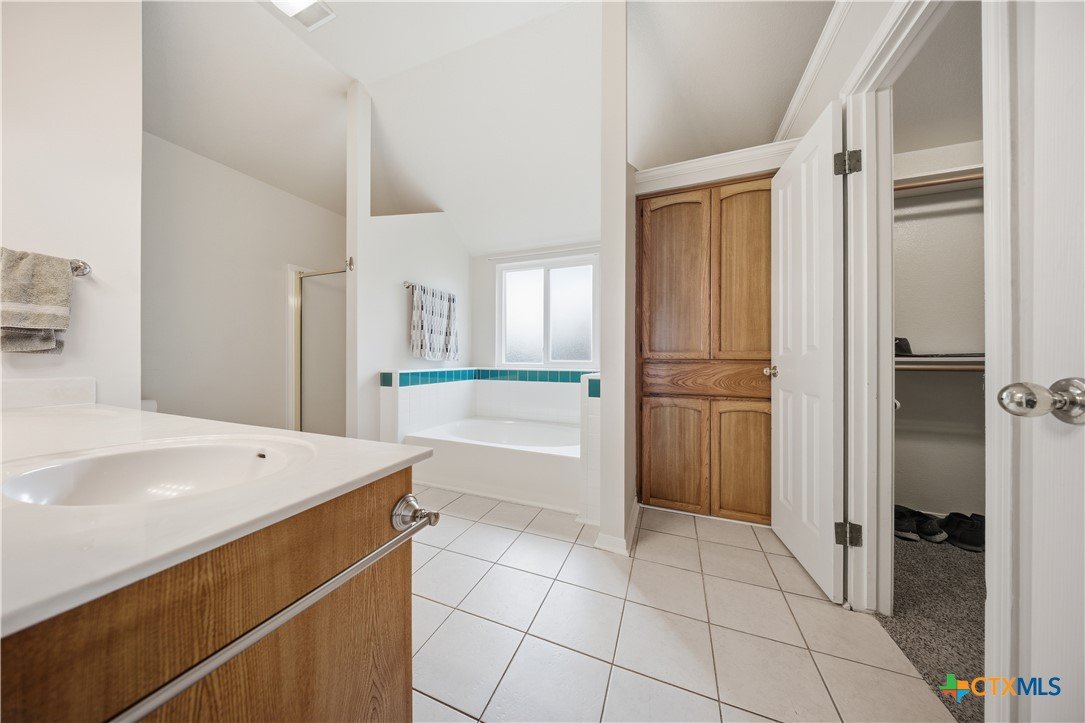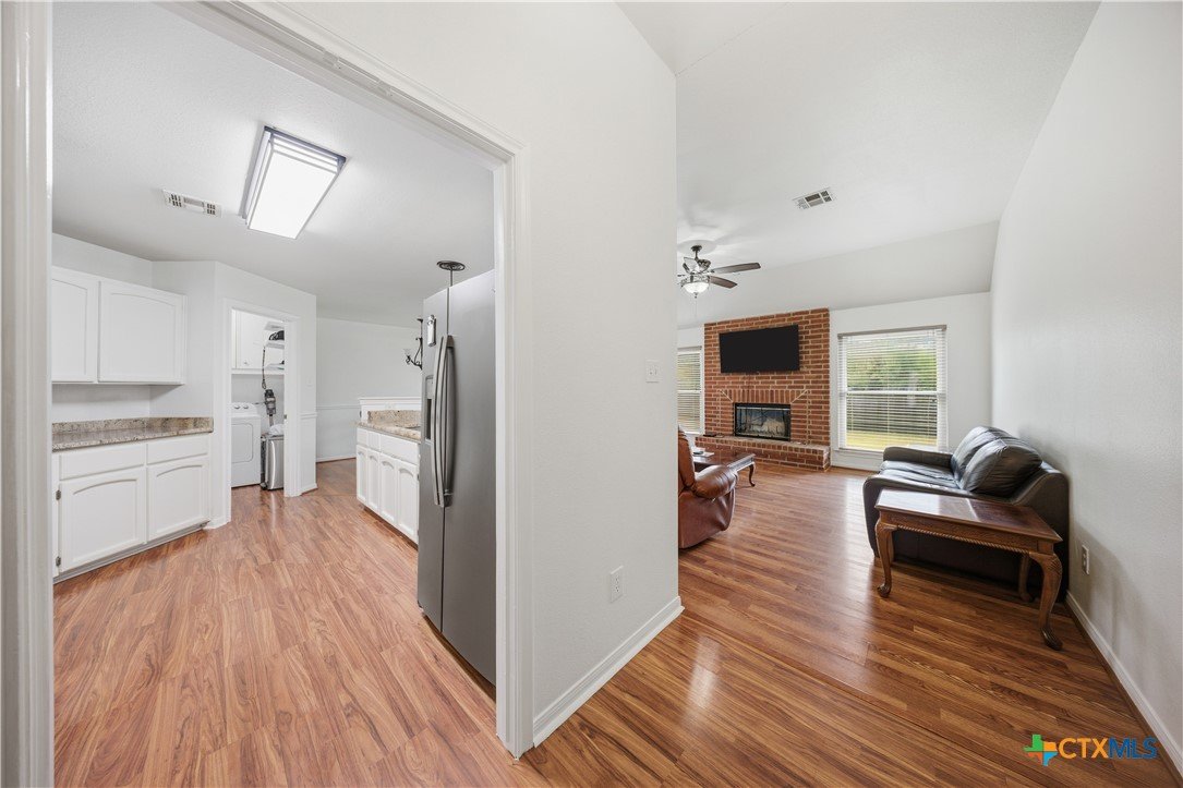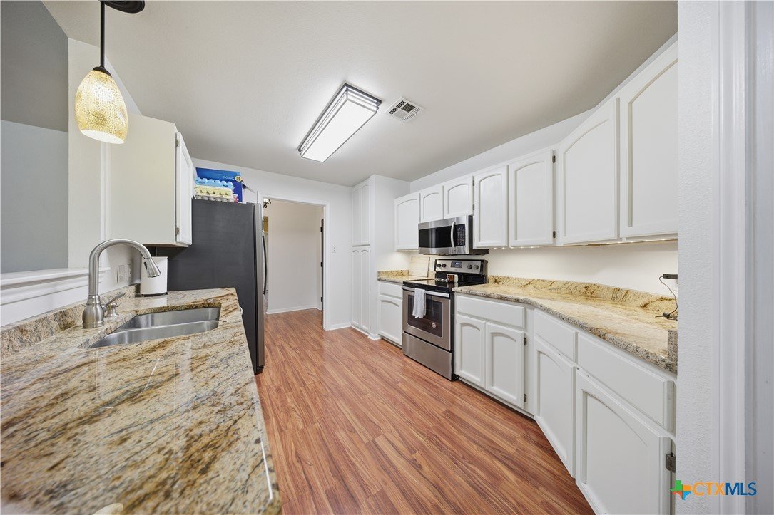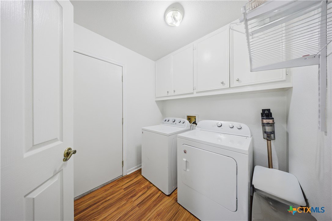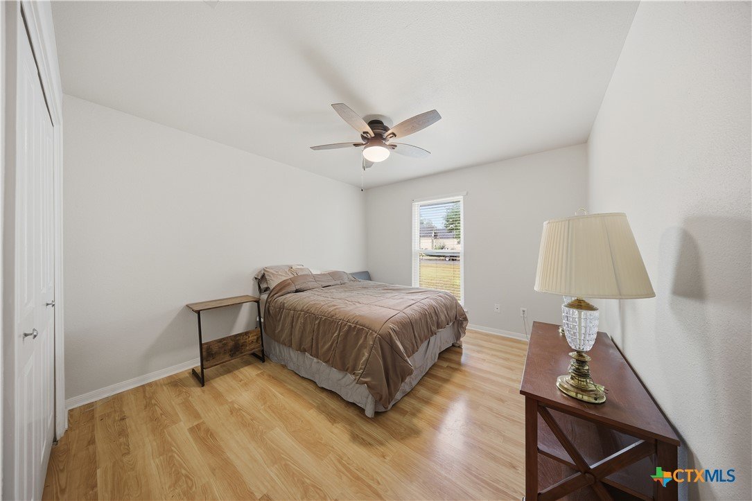 Welcome to 3110 Red Oak Drive in Belton, Texas! Nestled in the desirable and well-established neighborhood of The Oaks, this charming 3-bedroom, 2-bathroom home sits on an impressive 0.3-acre cul-de-sac lot offering privacy, space, and a true sense of community just minutes from Belton Lake. Step inside to find a warm and welcoming living area anchored by a cozy wood-burning fireplace, perfect for family gatherings or quiet evenings in. The spacious kitchen features beautiful granite countertops, abundant cabinetry, and a dedicated dining area, ideal for hosting dinners and entertaining guests. A separate laundry room with built-in cabinets provides added functionality and convenience. The primary suite is a relaxing retreat with double vanities, a soaking garden tub, separate shower, and a large walk-in closet. Secondary bedrooms are nicely sized and share a full shower-tub combo bathroom, offering plenty of comfort for family or guests. Outside, enjoy your morning coffee under the covered back patio, overlooking a spacious yard with plenty of room for kiddos or pets to roam. The property’s mature trees and generous lot provide a peaceful, shaded setting. This home is located in a highly sought-after Belton ISD school zone — close to Lakewood Elementary, Belton Middle, and Belton High School — and just a short drive from Belton Lake, Miller Springs Nature Center, H-E-B, and local shopping and dining. Best of all, there’s no HOA! Don’t miss your chance to own a beautiful home in one of Belton’s most desirable neighborhoods — where space, comfort, and location come together perfectly.