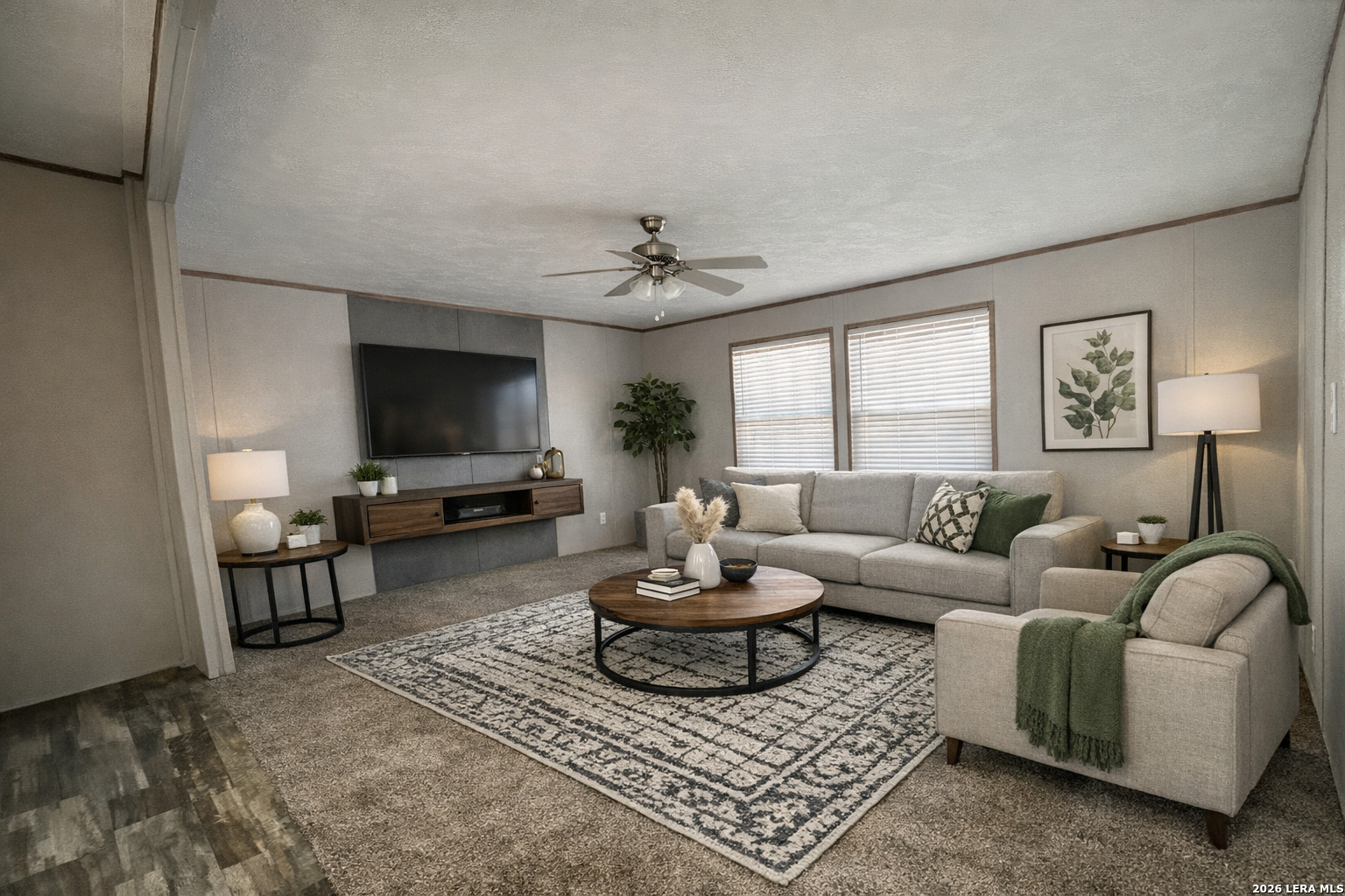 Spacious 4 bedroom 2 bathroom manufactured home with an open-concept layout perfect for everyday living. The kitchen features a large island, abundant cabinet space, and walk-in pantry. Private primary suite offers a relaxing garden tub and separate shower, while three additional bedrooms provide a flexible space for family, guests or office use.