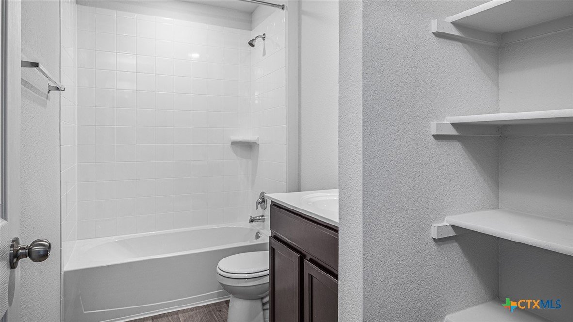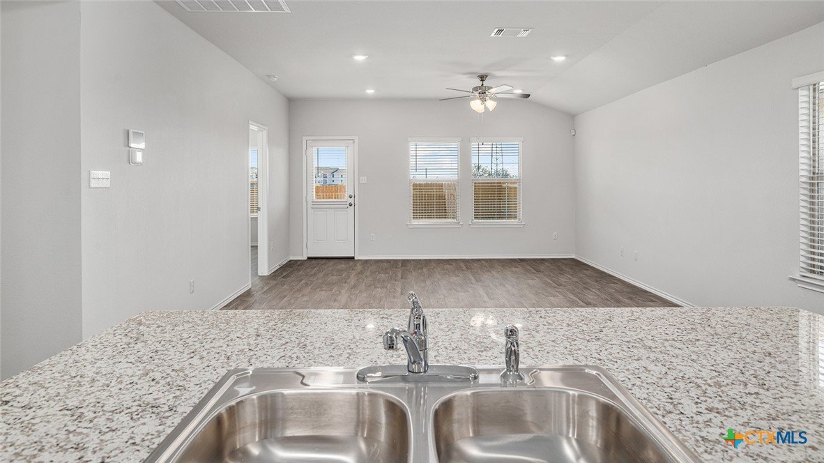 Come see our spacious Elgin floorplan at Eastern Wells in Jarrell, Texas. With 4-bedroom, 2-bathroom home featuring approximately 1,612 square feet of living space. The floorplan has an appealing open concept designed to fit your needs. From the welcoming foyer that leads to the open concept kitchen and living room to the primary bedroom with an attractive attached bathroom that has a spacious walk-in closet. With the 2-car garage, you will find plenty of space for storage or parking. Start or end your day with the standard covered patio, where you can sit and enjoy the views of nature from the backyard. The kitchen features beautiful shaker-style cabinets and granite countertops. Each of the spacious secondary bedrooms are carpeted and cozy. With easy access to the laundry room and the secondary bathroom. This stunning floorplan offers plenty of space is perfect for you and includes a smart home package to keep your home connected. Control and secure your home through the Qolsys smart panel, through your phone, or even with your voice. Talk to us today to learn more about the Elgin floorplan!