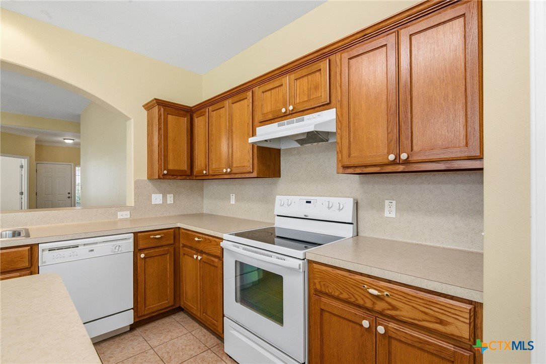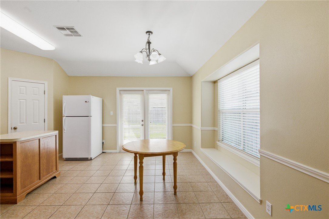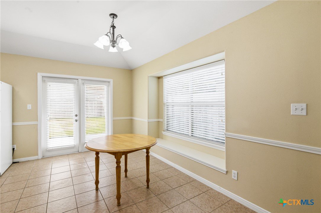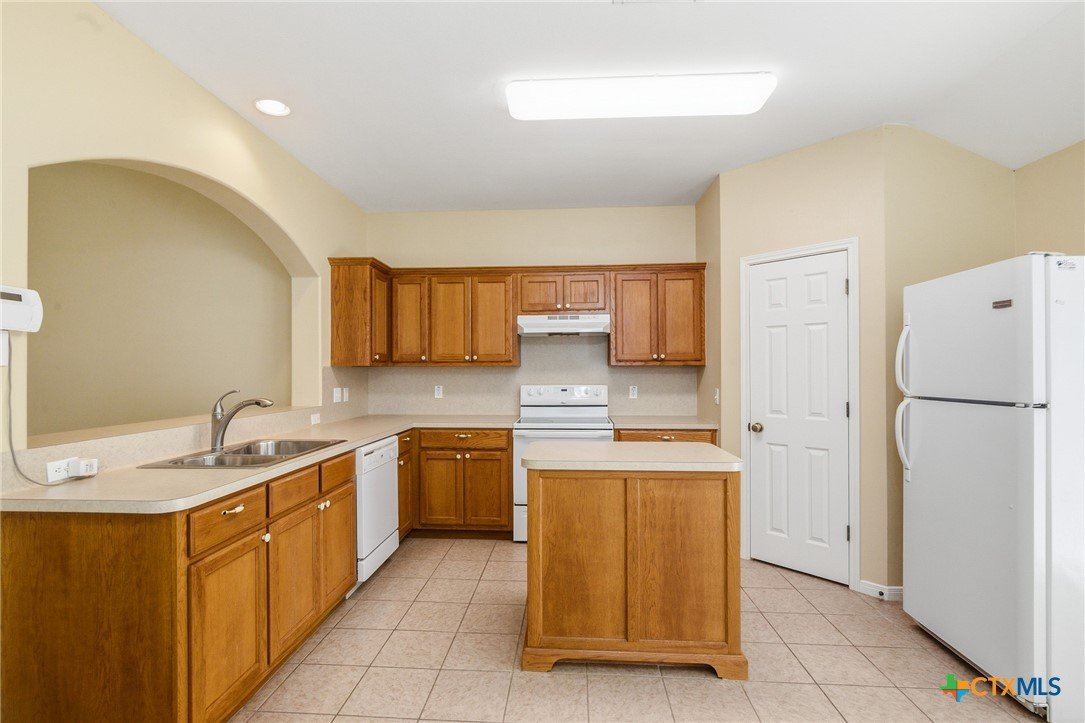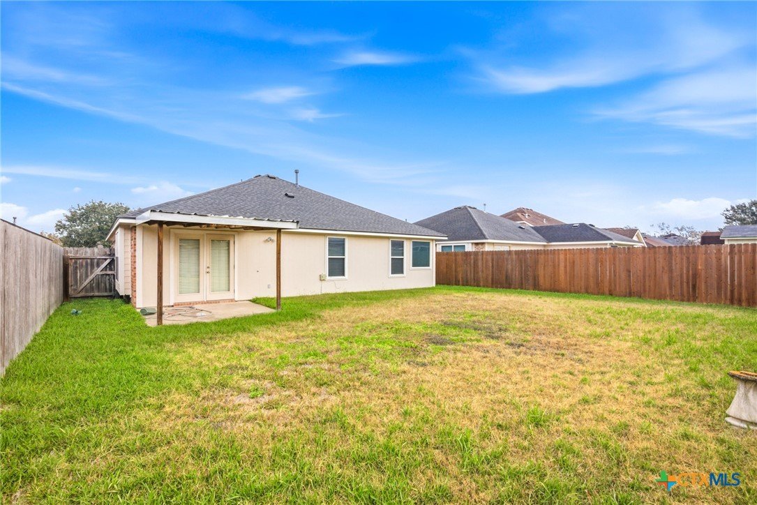 This spacious 4-bedroom, 2-bath Steve Klein home features a beautiful island kitchen with lots of countertop space. Ceramic tile flooring and many cabinets, top and bottom. There is also a generous pantry for storage. The hallway has a double door storage closet with shelves. There is also an indoor laundry room. Each bedroom has nice sized closets. The primary bedroom has a full walk-in closet as well as an additional closet. The primary bas has a double vanity and a separate soaking tub and shower. The living room is large and bright with high ceilings and natural light from the window. Outside you will find a covered patio and privacy fenced backyard.