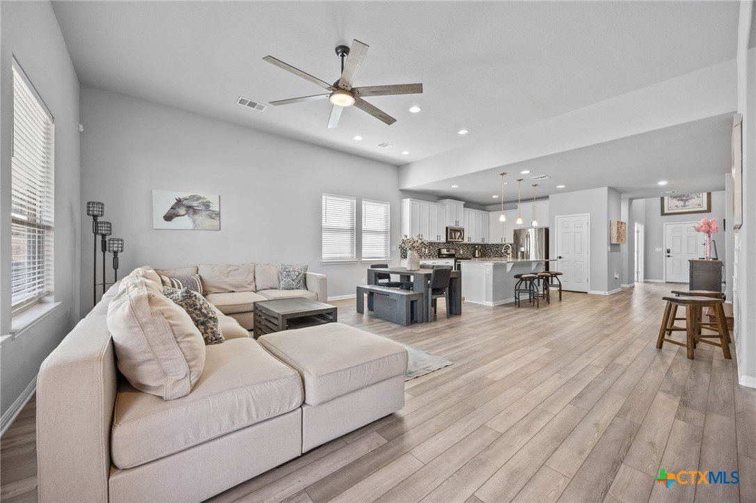 Welcome to this spacious 2-story, 3,042 sq. ft. home in the highly sought-after Larkspur community of Leander, TX. With 4 bedrooms, 3.5 baths, an office, and a large upstairs game room, this home is designed to balance comfort, style, and functionality for modern living. Step inside to an open floor plan filled with natural light and upgraded finishes, including durable vinyl plank flooring throughout the main level. The heart of the home features a spacious living and dining area that flows effortlessly into the kitchen—perfect for hosting gatherings or enjoying quiet nights in. The primary suite is conveniently located on the main floor, offering a retreat-like ensuite bathroom with double vanity, oversized shower, and a walk-in closet that includes extra storage space. A thoughtful design connects the primary closet directly to the laundry room for added convenience. A private office on the main level makes working from home both easy and comfortable. Upstairs, you’ll find three generously sized bedrooms, two full baths, and a huge game room that’s ideal for movie nights, playtime, or a second living space. Outside, the extended back patio and fenced-in backyard create the perfect setting for outdoor entertaining. Relax in your own private hot tub or enjoy evenings under the Texas sky. Located in Larkspur, residents enjoy a vibrant master-planned community with trails, parks, and a clubhouse with pool and fitness center. You’re minutes from major roadways, top-rated Leander ISD schools, shopping, dining, and entertainment at places like 1890 Ranch, the H-E-B Center, and Crystal Falls Golf Club. Commuters will appreciate quick access to major employers in the Austin metro area while still enjoying the small-town charm of Leander. This home offers the perfect blend of space, lifestyle, and location—ready to welcome you home.