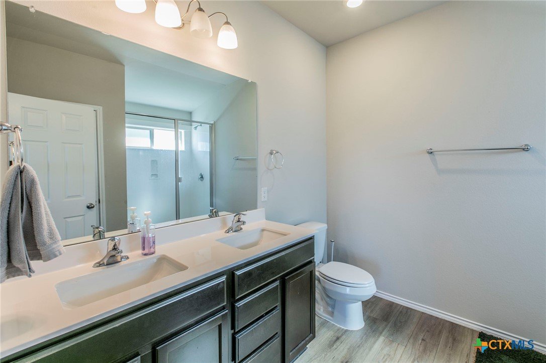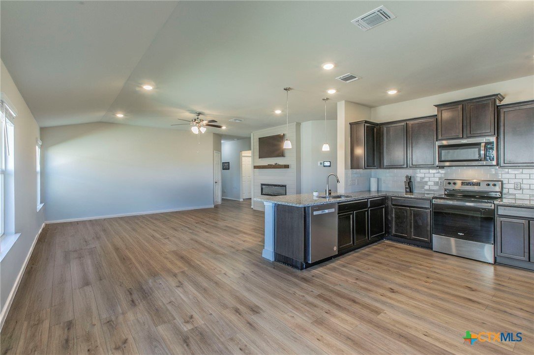 Gently lived in 3 bedroom, split arrangement, 2 full bath brick home, with open living, dining and kitchen floorplan. Over 1700 sq. ft living area in this beautifully maintained brick home in popular Belton ISD neighborhood. Upgrades throughout to include built-in electric fireplace, which is the vocal point of the large open family room with Lots of natural light and neutral colors. Abundance of granite counter tops, cabinets with extra storage, all the built-in appliances to include the refrigerator, all gently used. Large utility/laundry room with washer/dryer. Private master suite at back of house, master bath offers walk in shower, dual sinks and large walk in closet. The backyard is private with open backfield, so no back neighbors, covered back patio to enjoy the peaceful quiet setting, Recently completed 12X16 storage bldg. You won't be dissappointed.
