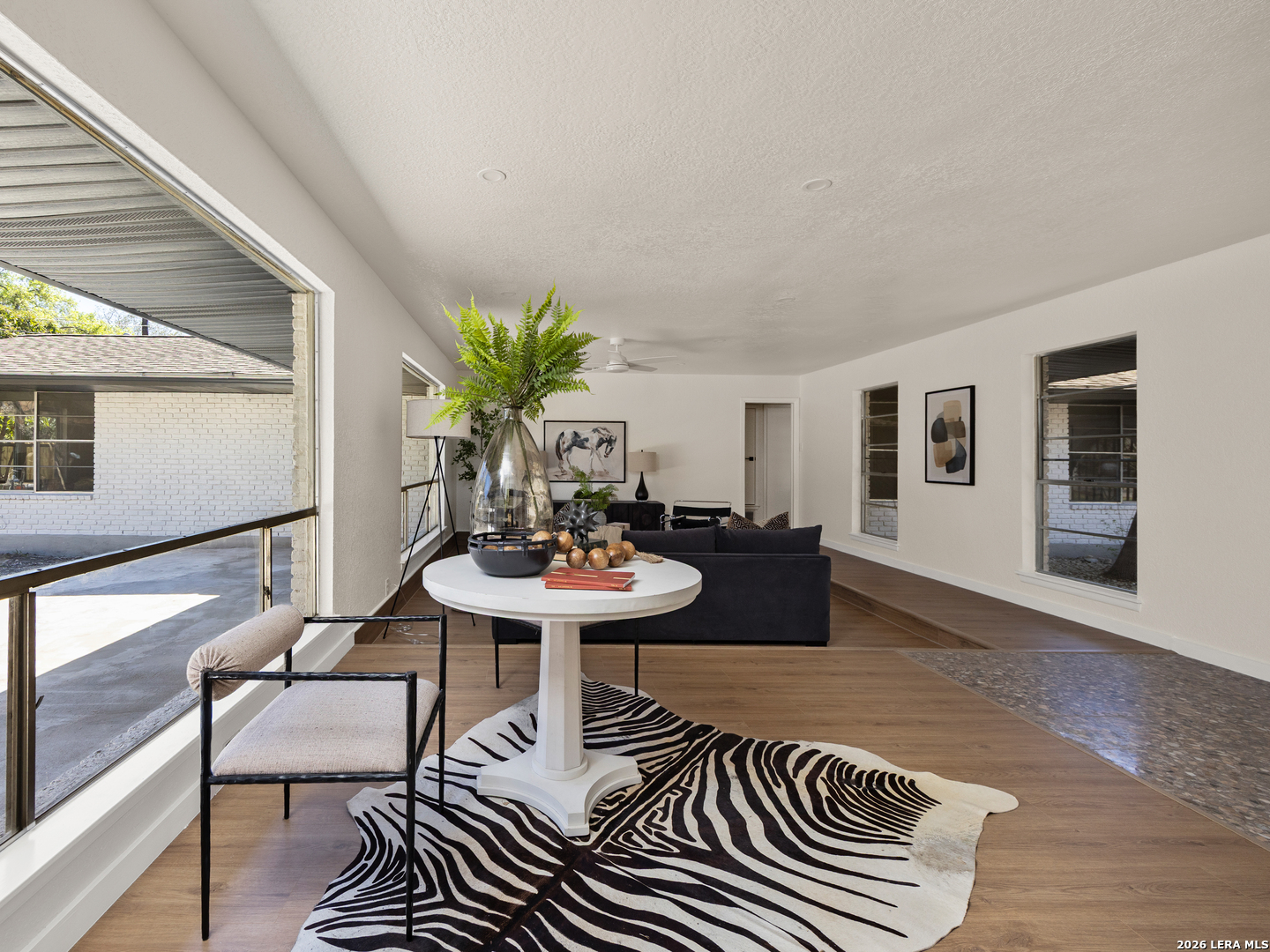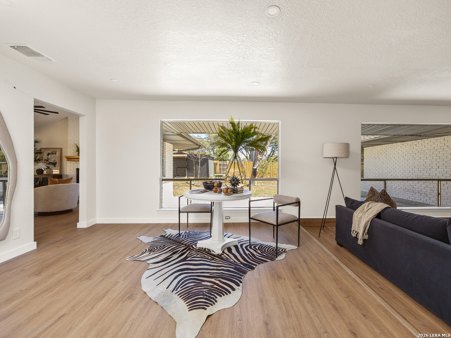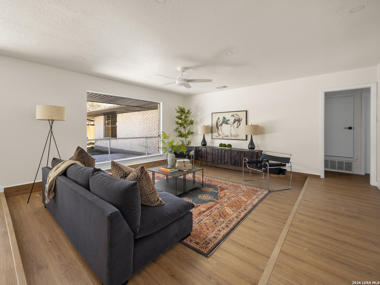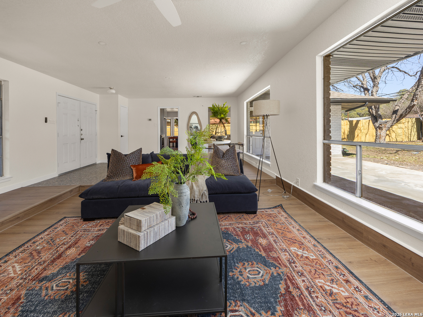 This *REMODELED MID CENTURY HOME* in Windcrest is up for grabs and ready for new home owners! What makes this home POP is its gorgeous curb appeal with its own private front courtyard perfect for those cool mornings to sit back and enjoy the peace and tranquility. More things you'll love is the attention to detail around the home from the water resistant flooring throughout to modern baths, all selections were meticulously selected for the family waiting for the ONE to hit the market. The living room has soaring pitched ceilings that feed into the kitchen which leads to your sunken living room area and if that doesnt WOW your guests, the original Terrazzo floors at the entrance will especially with the wall of windows overseeing your oversized yard and patio. Enjoy privacy in the home as it is separate from the gathering areas and when its time to wind down, youll love the modern selections in the bathrooms and plenty of options to chose from for your bedroom and optional office space. Windcrest has pickleball courts, tennis, walking and jogging trails, and many other HOA style amenities WITHOUT the HOA! This isn't your cookie cutter remodel, come take a look and see why Windcrest is for you!