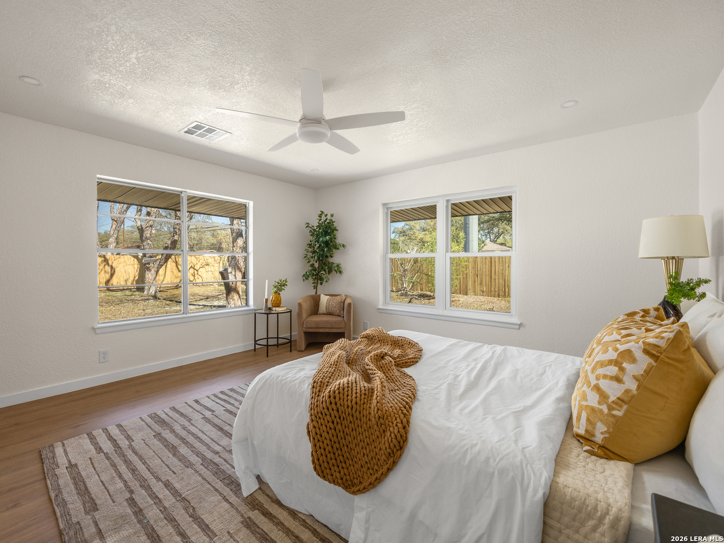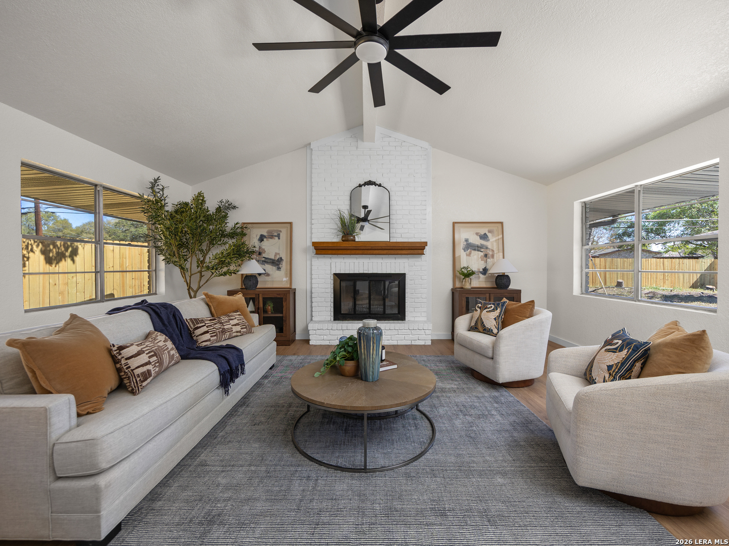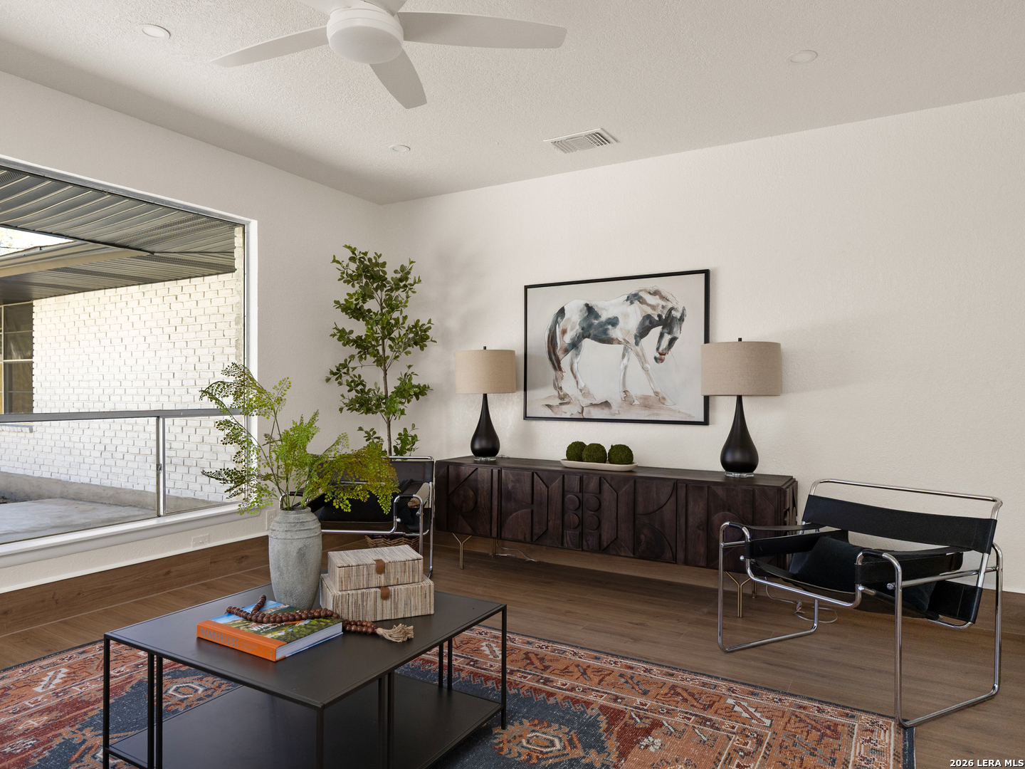 This *REMODELED MID CENTURY HOME* in Windcrest is up for grabs and ready for new home owners! What makes this home POP is its gorgeous curb appeal with its own private front courtyard perfect for those cool mornings to sit back and enjoy the peace and tranquility. More things you'll love is the attention to detail around the home from the water resistant flooring throughout to modern baths, all selections were meticulously selected for the family waiting for the ONE to hit the market. The living room has soaring pitched ceilings that feed into the kitchen which leads to your sunken living room area and if that doesnt WOW your guests, the original Terrazzo floors at the entrance will especially with the wall of windows overseeing your oversized yard and patio. Enjoy privacy in the home as it is separate from the gathering areas and when its time to wind down, youll love the modern selections in the bathrooms and plenty of options to chose from for your bedroom and optional office space. Windcrest has pickleball courts, tennis, walking and jogging trails, and many other HOA style amenities WITHOUT the HOA! This isn't your cookie cutter remodel, come take a look and see why Windcrest is for you!
