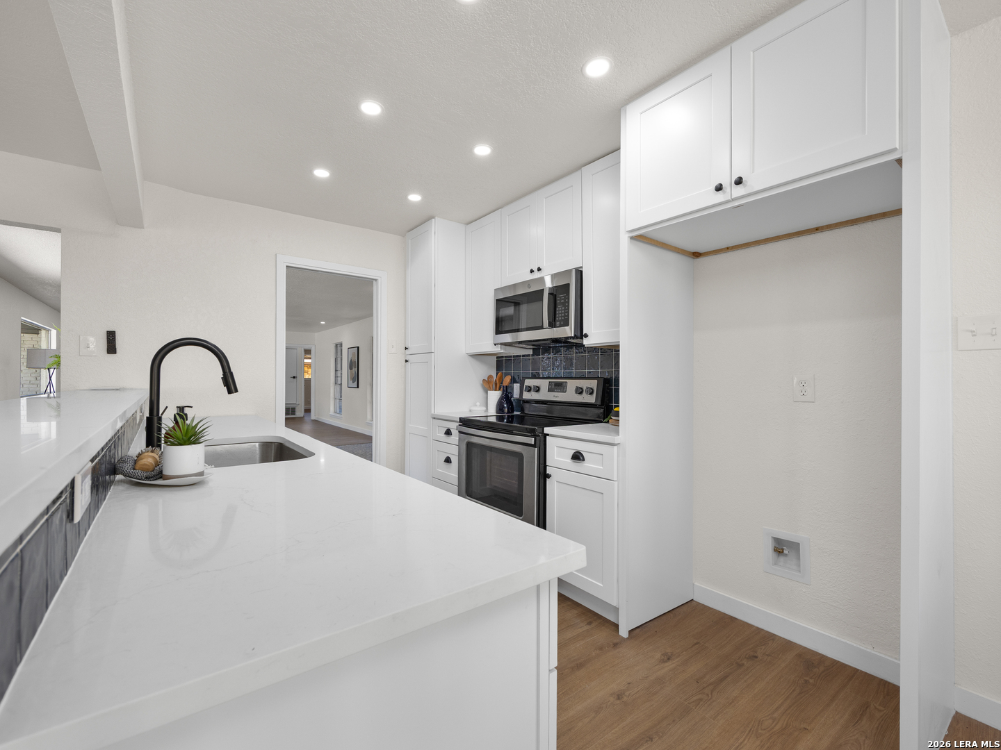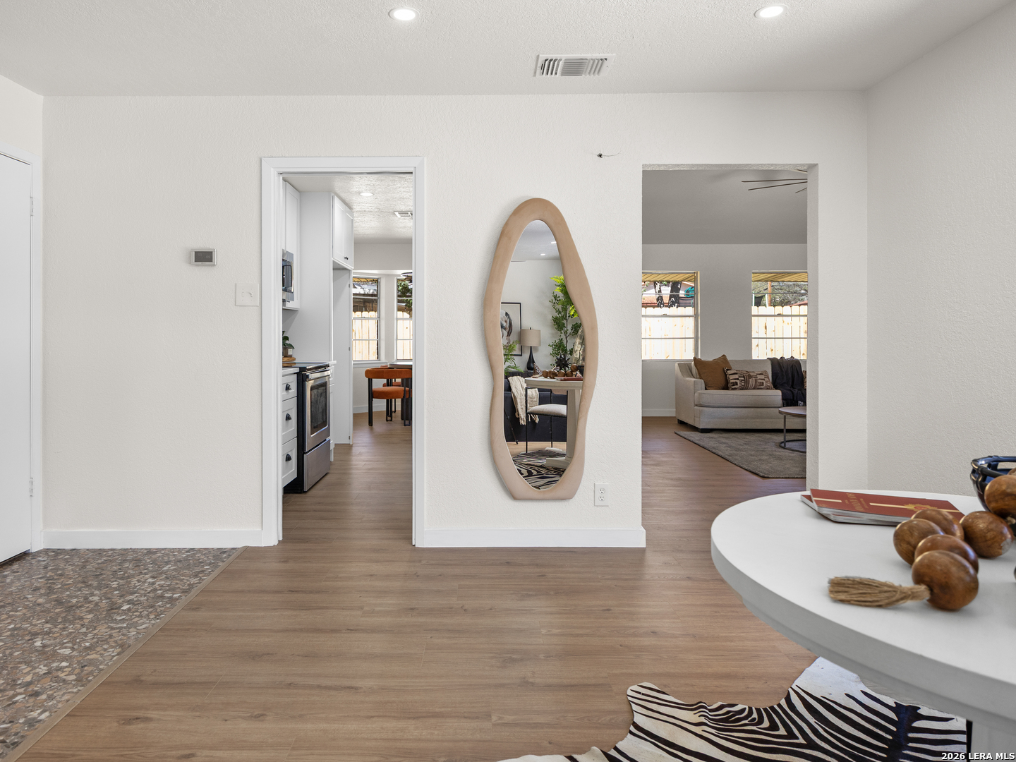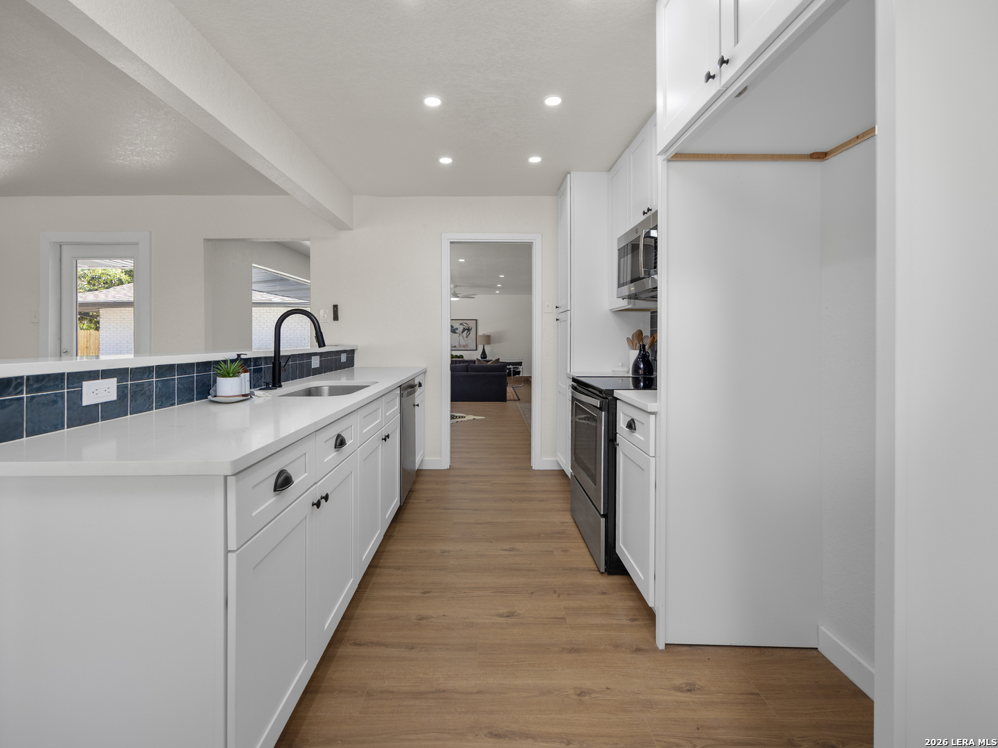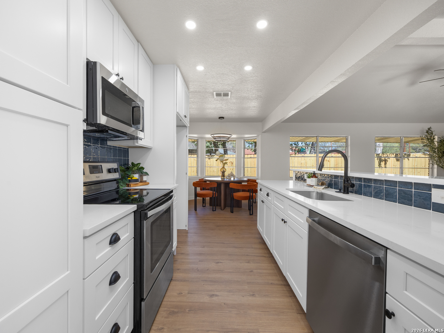 This *REMODELED MID CENTURY HOME* in Windcrest is up for grabs and ready for new home owners! What makes this home POP is its gorgeous curb appeal with its own private front courtyard perfect for those cool mornings to sit back and enjoy the peace and tranquility. More things you'll love is the attention to detail around the home from the water resistant flooring throughout to modern baths, all selections were meticulously selected for the family waiting for the ONE to hit the market. The living room has soaring pitched ceilings that feed into the kitchen which leads to your sunken living room area and if that doesnt WOW your guests, the original Terrazzo floors at the entrance will especially with the wall of windows overseeing your oversized yard and patio. Enjoy privacy in the home as it is separate from the gathering areas and when its time to wind down, youll love the modern selections in the bathrooms and plenty of options to chose from for your bedroom and optional office space. Windcrest has pickleball courts, tennis, walking and jogging trails, and many other HOA style amenities WITHOUT the HOA! This isn't your cookie cutter remodel, come take a look and see why Windcrest is for you!