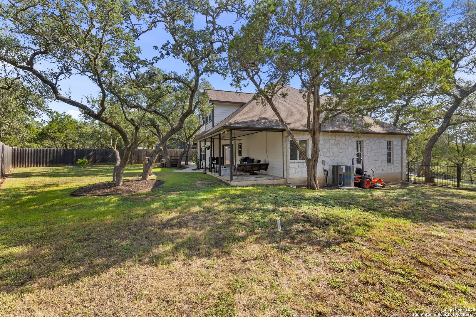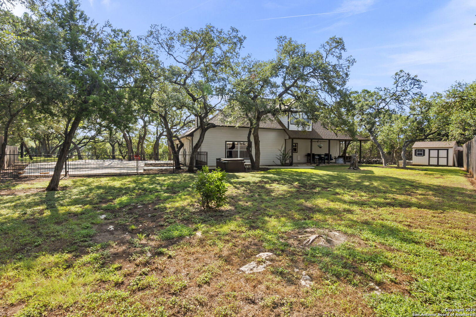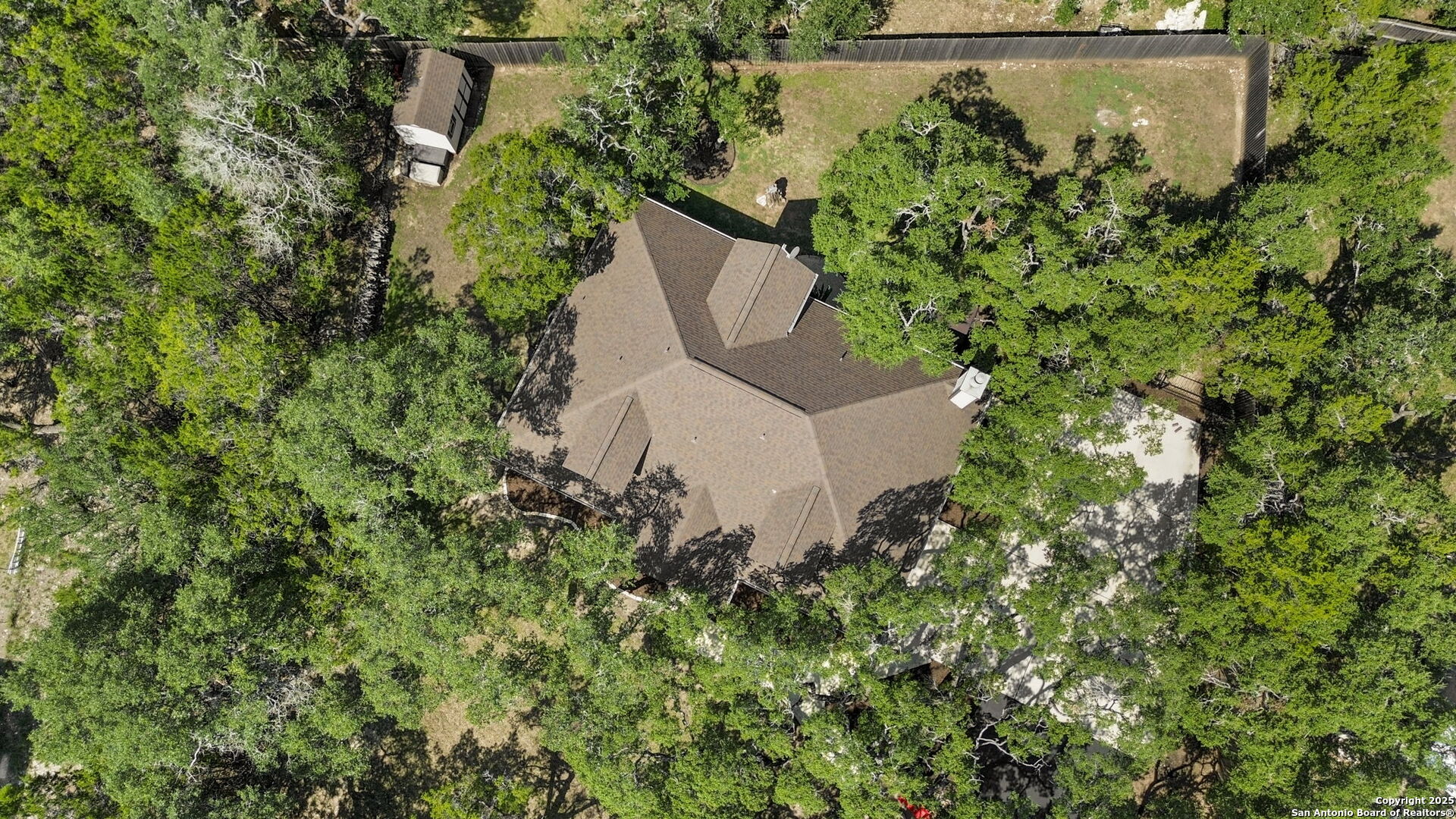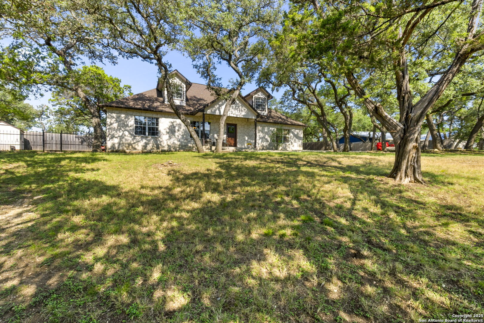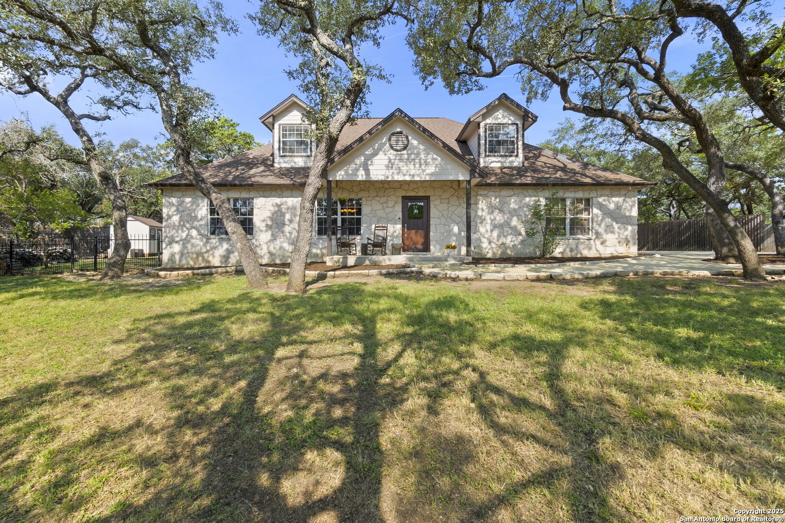 OPEN HOUSE, SUN. SEPT. 21ST 1-3 PM. Welcome to this beautiful 2,588 sq.ft home offering 4 bedrooms and 3 full baths on a spacious 0.71-acre lot. Nestled among 40+OAK TREES, this property provides the perfect balance of peaceful HILL COUNTRY LIVING with easy access to Highway 281, putting you minutes from San Antonio. Step onto the front porch and take in breathtaking sunrises, or relax on the large, shaded back porch in the evenings surrounded by an 8-ft privacy fence. Enjoy stargazing from the HOT TUB with wine in hand, in total privacy. With ample PARKING SPACE FOR A RV, this home is ideal for those who love to travel and still want room for their home base. Inside, the home features a large primary suite with new carpet and a primary bathroom with new tile work and an updated shower, creating a fresh and inviting retreat. Upstairs, you'll find three generously sized bedrooms plus a LOFT AREA, perfect for an additional living space, study or play area. The home also offers ample attic STORAGE and an outdoor SHED to keep everything organized. The property is truly move-in ready, lovingly maintained by Mr. and Mrs. Meticulous-giving buyers peace of mind that every detail has been cared for. Recent upgrades include a new roof in 2023, air conditioner in 2019, and a water heater in 2024.Septic pumped Sept. 2025. If you have been searching for a serene setting with plenty of space to enjoy nature, this is it!