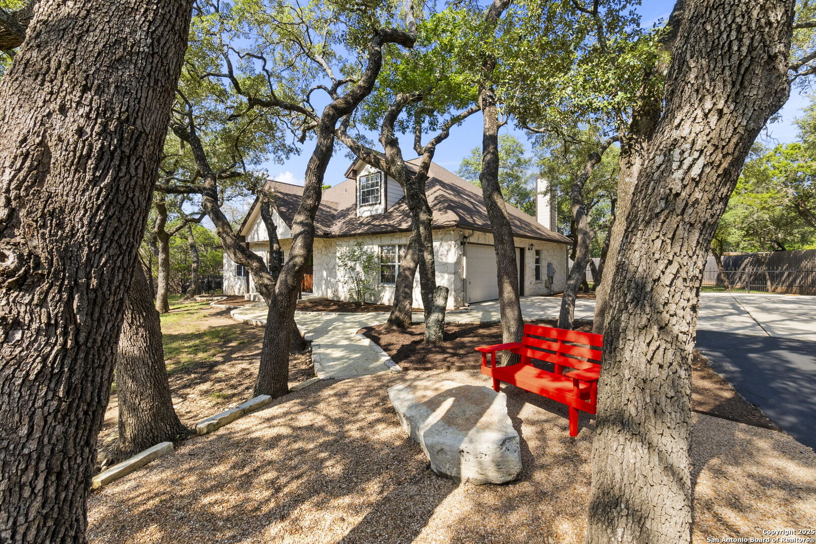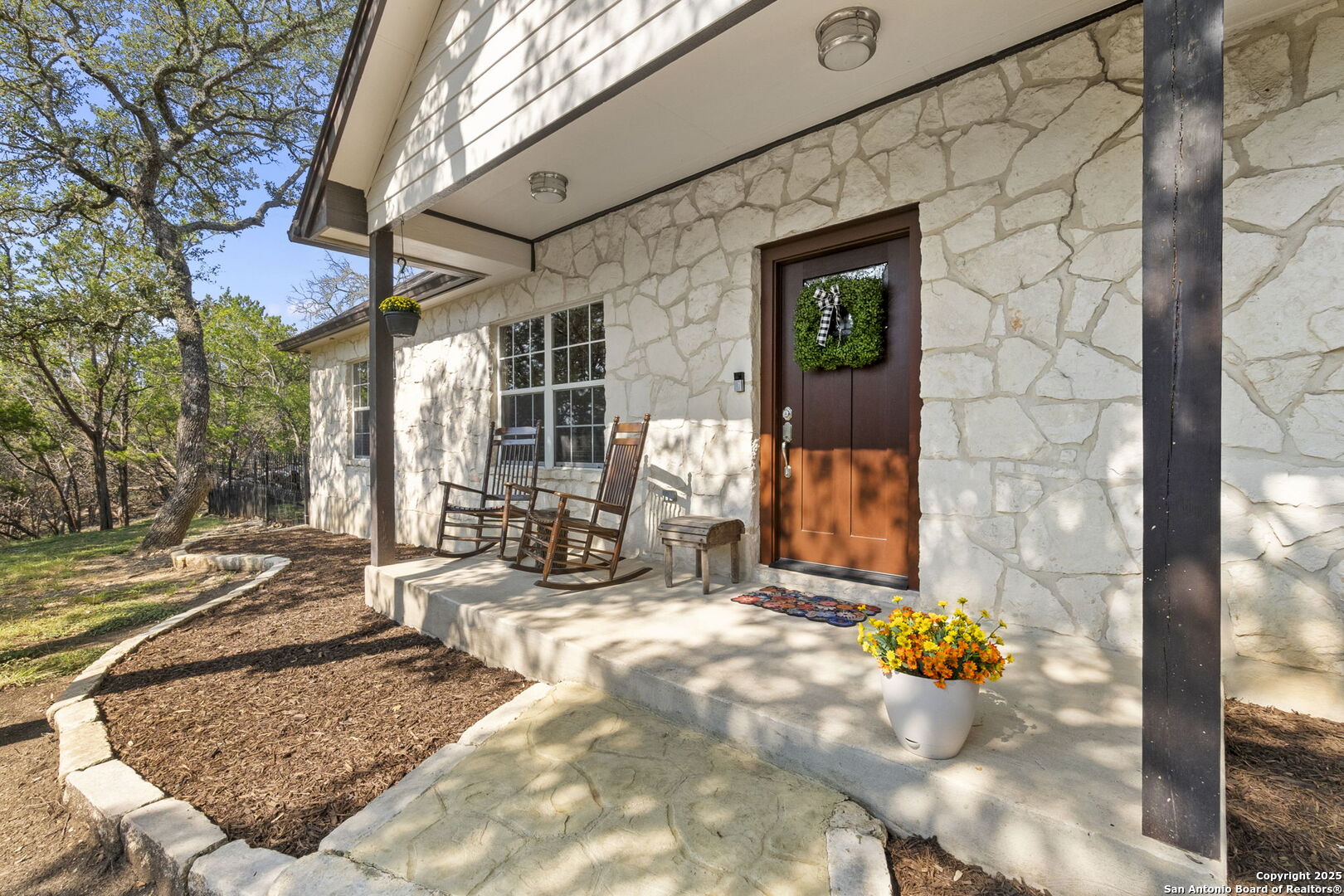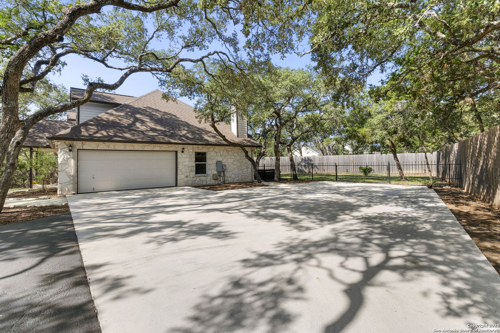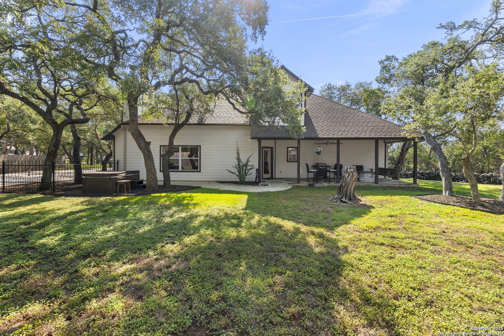 OPEN HOUSE, SUN. SEPT. 21ST 1-3 PM. Welcome to this beautiful 2,588 sq.ft home offering 4 bedrooms and 3 full baths on a spacious 0.71-acre lot. Nestled among 40+OAK TREES, this property provides the perfect balance of peaceful HILL COUNTRY LIVING with easy access to Highway 281, putting you minutes from San Antonio. Step onto the front porch and take in breathtaking sunrises, or relax on the large, shaded back porch in the evenings surrounded by an 8-ft privacy fence. Enjoy stargazing from the HOT TUB with wine in hand, in total privacy. With ample PARKING SPACE FOR A RV, this home is ideal for those who love to travel and still want room for their home base. Inside, the home features a large primary suite with new carpet and a primary bathroom with new tile work and an updated shower, creating a fresh and inviting retreat. Upstairs, you'll find three generously sized bedrooms plus a LOFT AREA, perfect for an additional living space, study or play area. The home also offers ample attic STORAGE and an outdoor SHED to keep everything organized. The property is truly move-in ready, lovingly maintained by Mr. and Mrs. Meticulous-giving buyers peace of mind that every detail has been cared for. Recent upgrades include a new roof in 2023, air conditioner in 2019, and a water heater in 2024.Septic pumped Sept. 2025. If you have been searching for a serene setting with plenty of space to enjoy nature, this is it!