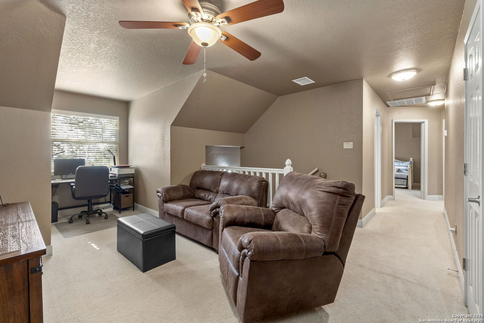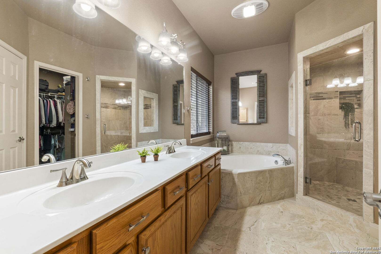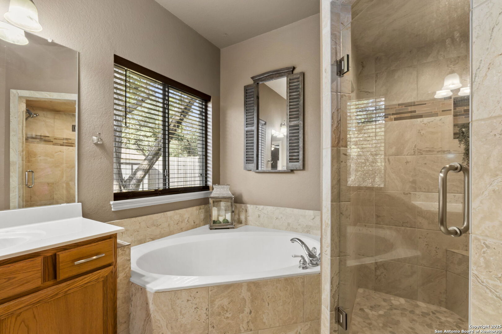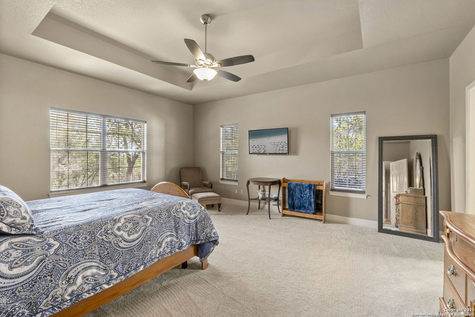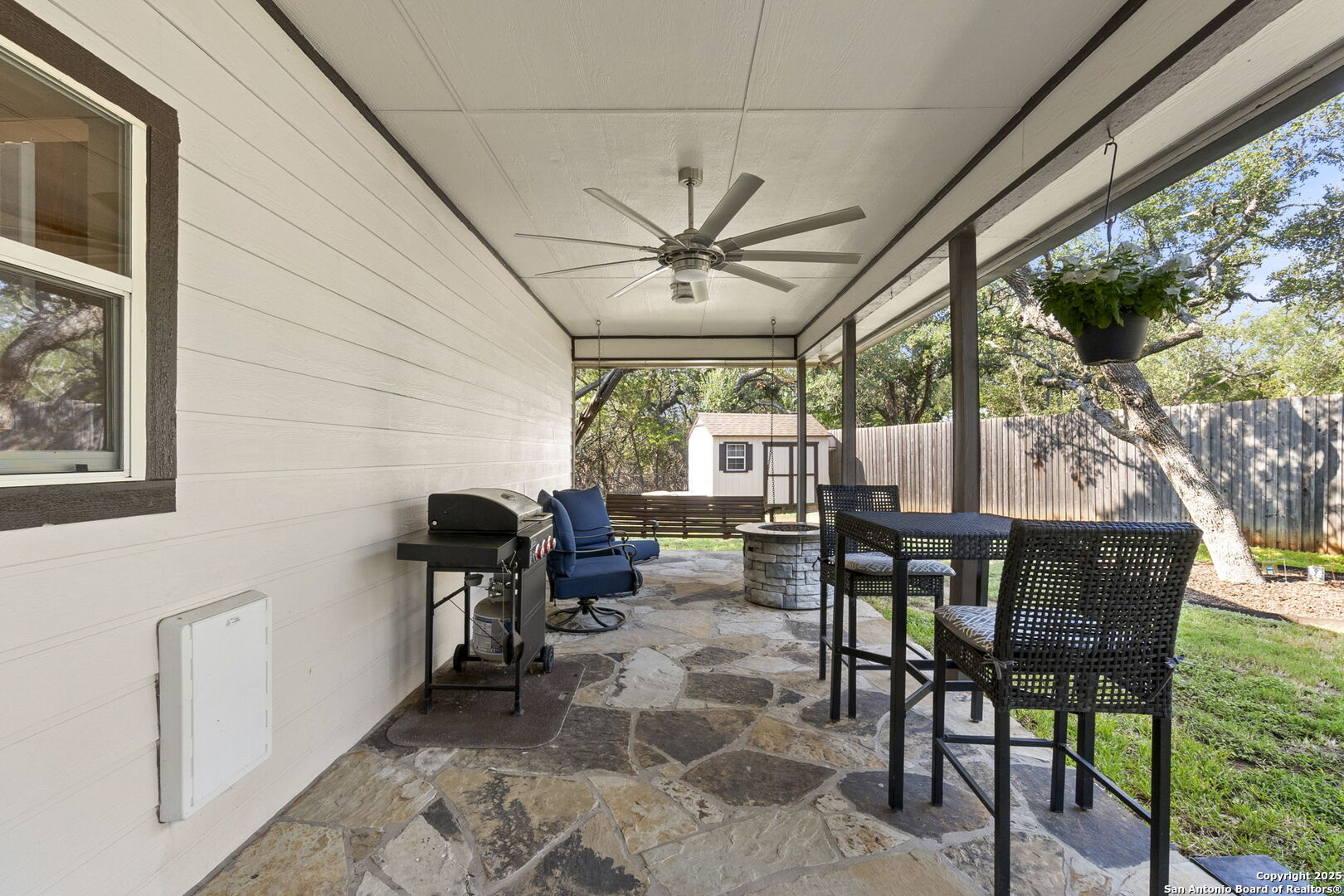 OPEN HOUSE, SUN. SEPT. 21ST 1-3 PM. Welcome to this beautiful 2,588 sq.ft home offering 4 bedrooms and 3 full baths on a spacious 0.71-acre lot. Nestled among 40+OAK TREES, this property provides the perfect balance of peaceful HILL COUNTRY LIVING with easy access to Highway 281, putting you minutes from San Antonio. Step onto the front porch and take in breathtaking sunrises, or relax on the large, shaded back porch in the evenings surrounded by an 8-ft privacy fence. Enjoy stargazing from the HOT TUB with wine in hand, in total privacy. With ample PARKING SPACE FOR A RV, this home is ideal for those who love to travel and still want room for their home base. Inside, the home features a large primary suite with new carpet and a primary bathroom with new tile work and an updated shower, creating a fresh and inviting retreat. Upstairs, you'll find three generously sized bedrooms plus a LOFT AREA, perfect for an additional living space, study or play area. The home also offers ample attic STORAGE and an outdoor SHED to keep everything organized. The property is truly move-in ready, lovingly maintained by Mr. and Mrs. Meticulous-giving buyers peace of mind that every detail has been cared for. Recent upgrades include a new roof in 2023, air conditioner in 2019, and a water heater in 2024.Septic pumped Sept. 2025. If you have been searching for a serene setting with plenty of space to enjoy nature, this is it!