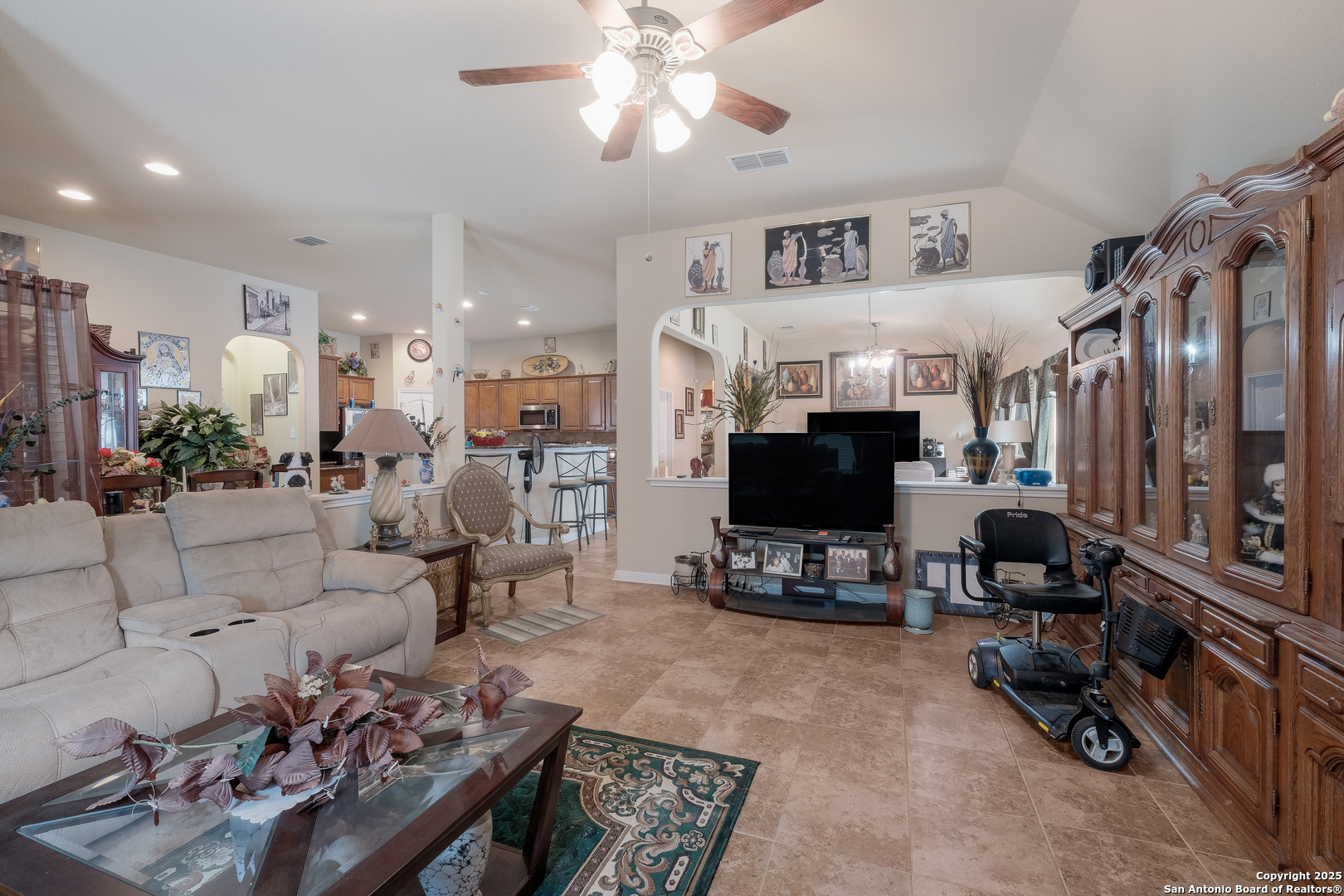 Spacious 1-story home in New Braunfels! with **solar panels**, **water softener**, and **A/C-enclosed patio**. Enjoy **two living areas**, **two dining areas**, and access to community pool, playground & nearby shopping, Schlitterbahn water park and river. Includes sprinkler system. Comfort, space & convenience all in one!