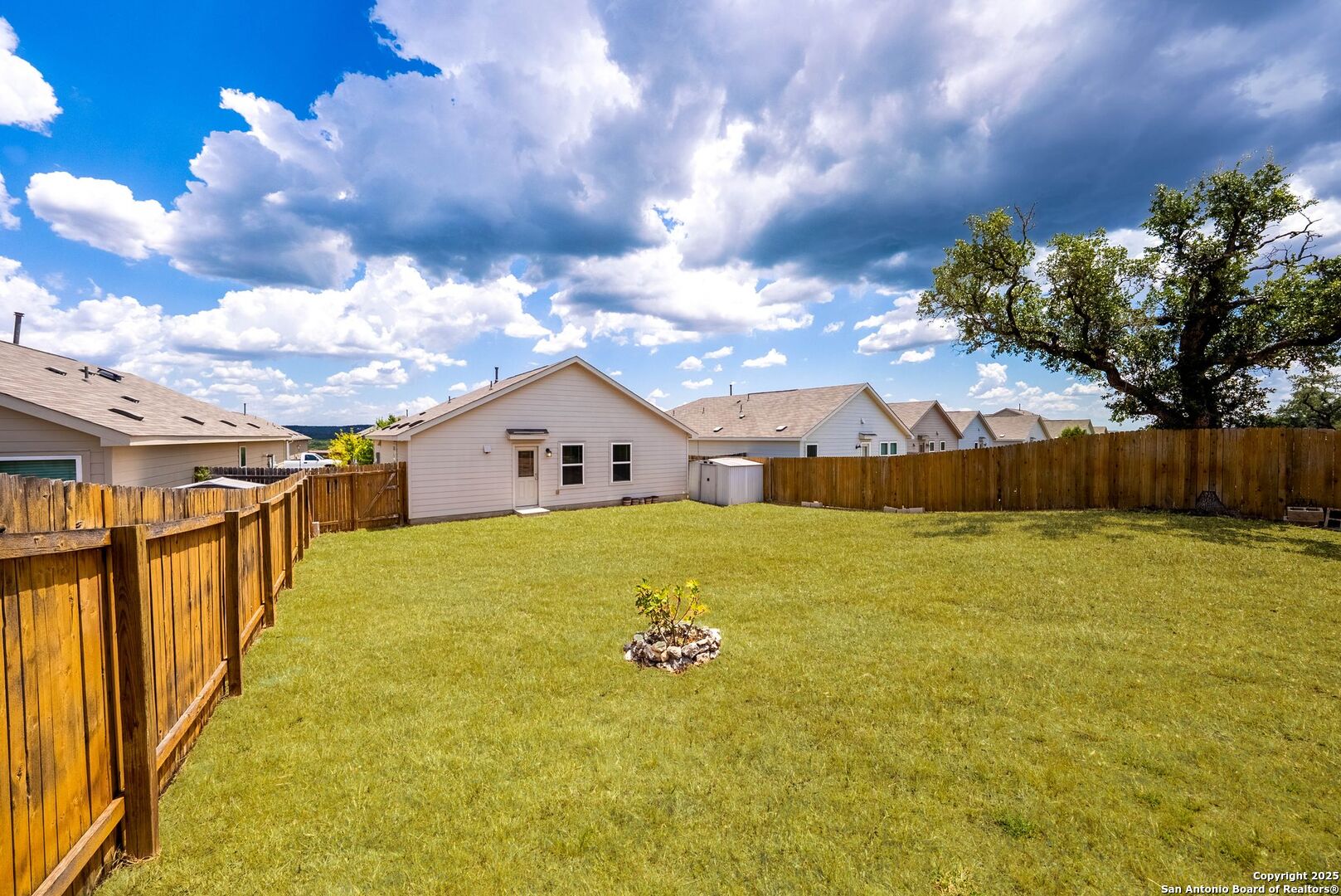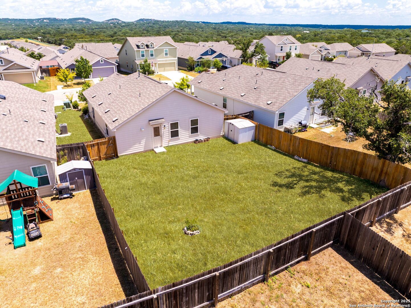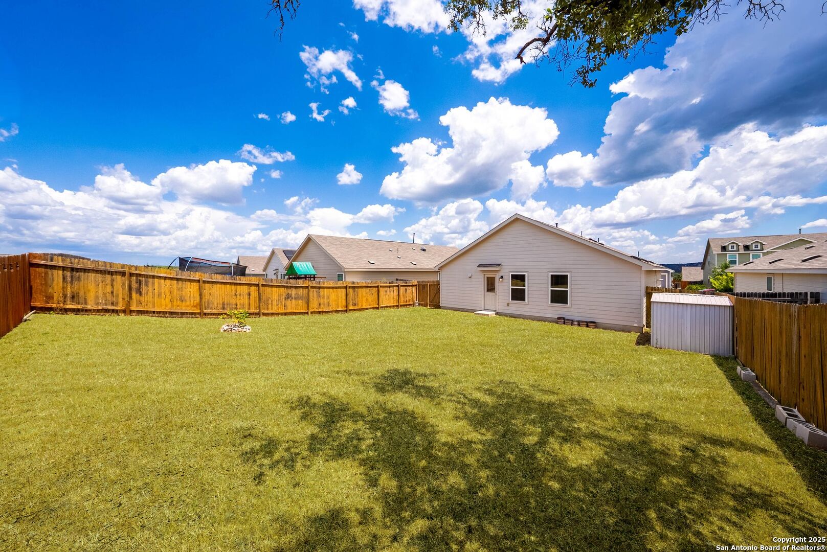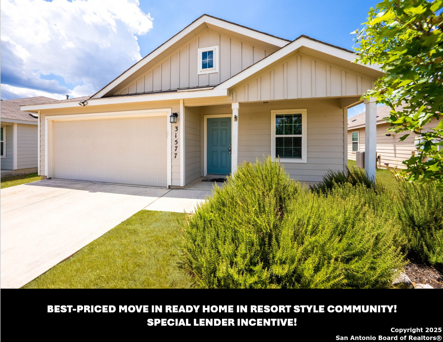 SPECIAL LENDER INCENTIVE available-save on your monthly mortgage payments! Best-Priced Home in RESORT STYLE Community - Move-In Ready & Perfect for First-Time Buyers! This is the perfect first home you've been waiting for-best-priced in the neighborhood, move-in ready, and located in a sought-after resort-style community where comfort, convenience, and fun are right outside your door. Enjoy walkable access to incredible amenities: a sparkling pool, clubhouse, state-of-the-art gym, playgrounds, basketball court, Kleck Park, fishing pond, and scenic hiking trails. Inside, the open-concept floorplan feels inviting, with the living room flowing effortlessly into the dining area and kitchen-ideal for game nights, dinner parties, or cozy evenings in. The kitchen features beautiful white cabinetry, an upgraded faucet, a built-in microwave, and all appliances included-yes, even the refrigerator! Your private primary suite is tucked away at the back for ultimate peace and quiet, complete with an en suite bathroom and roomy walk-in closet. Two more bedrooms offer plenty of space for family, guests, or a home office, and fiber-speed internet makes working from home or streaming a breeze. Additional highlights include a painted two-car garage with a garage door opener, a full back and front sprinkler system, a programmable thermostat for energy efficiency, and attic decking for added storage. Step outside to your large, level backyard with a storage shed-perfect for gardening, or weekend BBQs under the Texas sky. Homes like this don't last long-especially at this price in such an amazing community. Schedule your showing today and make it yours! Property is located in a sought-after resort-style community, where residents enjoy top-rated COMAL ISD schools along with amazing amenities. COMMUNITY: Imagine living in a RESORT STYLE COMMUNITY where every day feels like a vacation! Experience modern living with amenities like a stunning infinity pool, a brand-new Junior Olympic-sized lap pool, and a splash pad for kids. Access a contemporary clubhouse, a well-equipped 24/7 gym, a fitness center, and enjoy yoga classes. Discover miles of scenic walking and biking trails and access to the dog-friendly Kleck Park. Challenge friends to basketball, host BBQs, or spend quality time with your children on multiple playgrounds, where one features an exhilarating zip line, while the other offers diverse play options! Join an engaging community center hosting live music, events, and food trucks. Relax by the catch-and-release fishing pond. Hidden Trails offers a vibrant lifestyle with endless possibilities! LOCATION: Hidden Trails subdivision provides convenience, located just off Highway 281, with a few minutes' drive to nearby shopping at HEB and Walmart, as well as Starbucks, restaurants, and medical facilities. All your daily needs are within easy reach. The San Antonio Airport is a mere 30 minutes away. Additionally, the stunning Canyon Lake is just a short 20-minute drive. Don't miss your chance to make it yours - schedule your private showing today.
