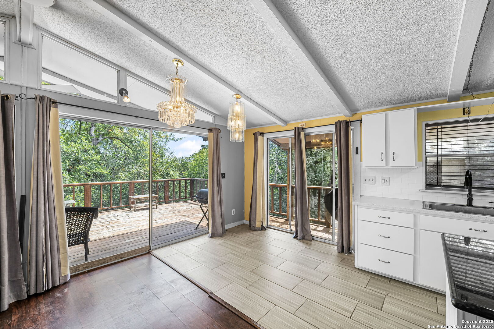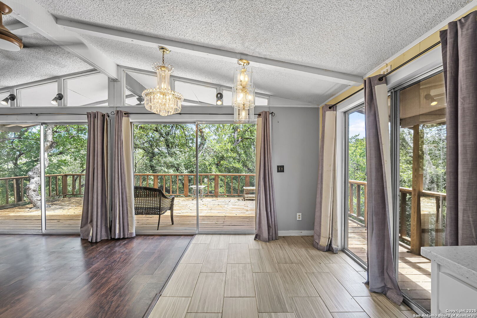 Rare and unique opportunity in Cypress Cove! This property features two homes on one wooded lot just under half an acre, backing directly to the 10+ acres Cypress Cove Park for unbeatable privacy and Hill Country views. The main home offers approximately 1,200 sq. ft. with 2 bedrooms, 2 bathrooms, and two elevated decks overlooking the treetops, creating a true "treehouse" feel. Additional storage is available under the home, and the property is shaded by large, mature oak trees. A charming deck bridge connects to the second home, a spacious 1,152 sq. ft. casita/mother-in-law suite with 1 bedroom, 1 bathroom, a full kitchen, screened-in porch, and large covered porch. This setup opens the door to multiple possibilities: live in one home and rent the other to offset your mortgage, enjoy multi-generational living, or lease both homes as an income-generating property. Whether used as guest quarters, a private office, or investment rental, this property delivers flexibility rarely found in the Hill Country. While the homes could benefit from some TLC, they offer incredible potential and character you can make your own. Cypress Cove offers exceptional amenities including Canyon Lake access, the Guadalupe River, Cypress Cove Park, Cypress Cove Pond, Rebecca Creek Park, boat ramp 11, pool, tennis courts, playground, walking trails, fishing, and barbecue areas... ALL IN-WALKING DISTANCE FROM THIS PROPERTY. Everyday convenience is at your fingertips with a neighborhood market at the subdivision entrance, while major shopping and dining in Bulverde is just 20 minutes away. Historic Blanco, New Braunfels, and Wimberley are also nearby, making this an ideal location for both full-time living and investment purposes. This property combines privacy, versatility, and Hill Country charm in a way rarely found-two complete homes on one lot with endless options for living, hosting, or earning income.