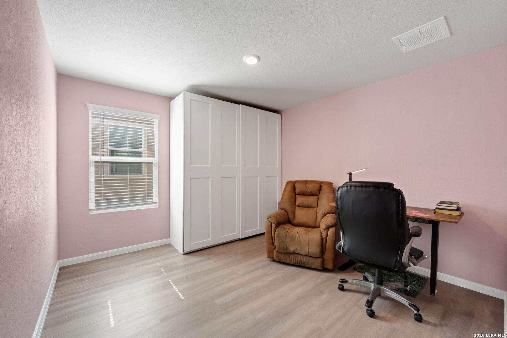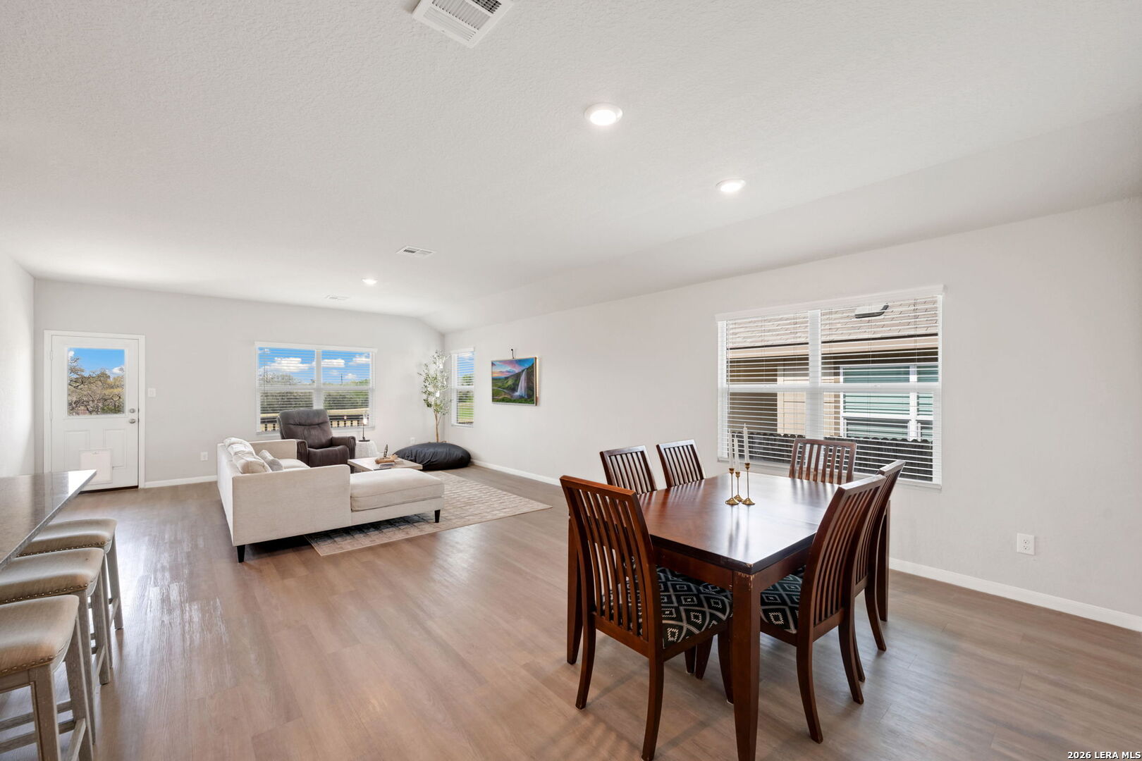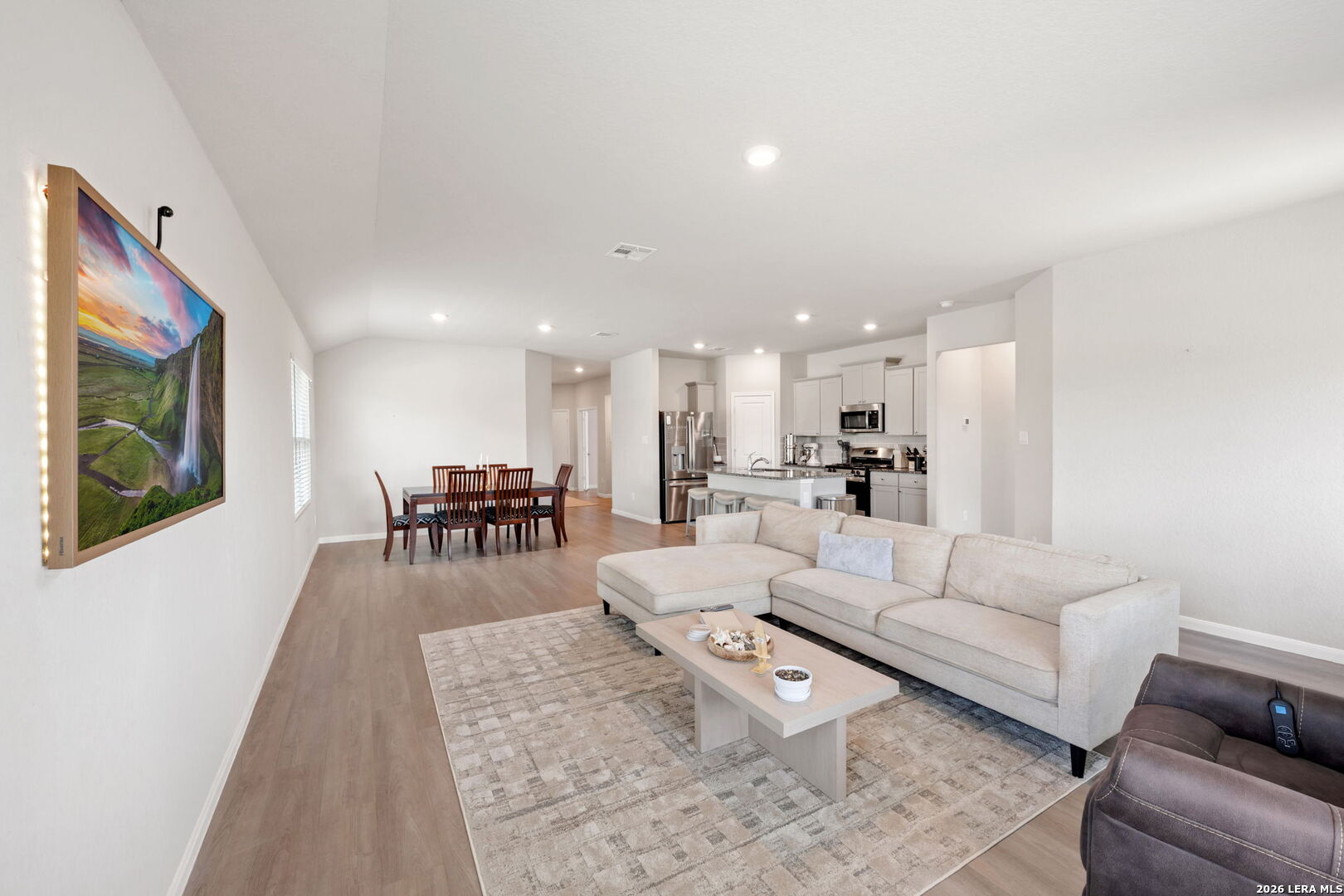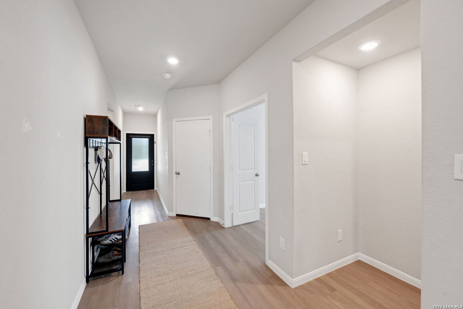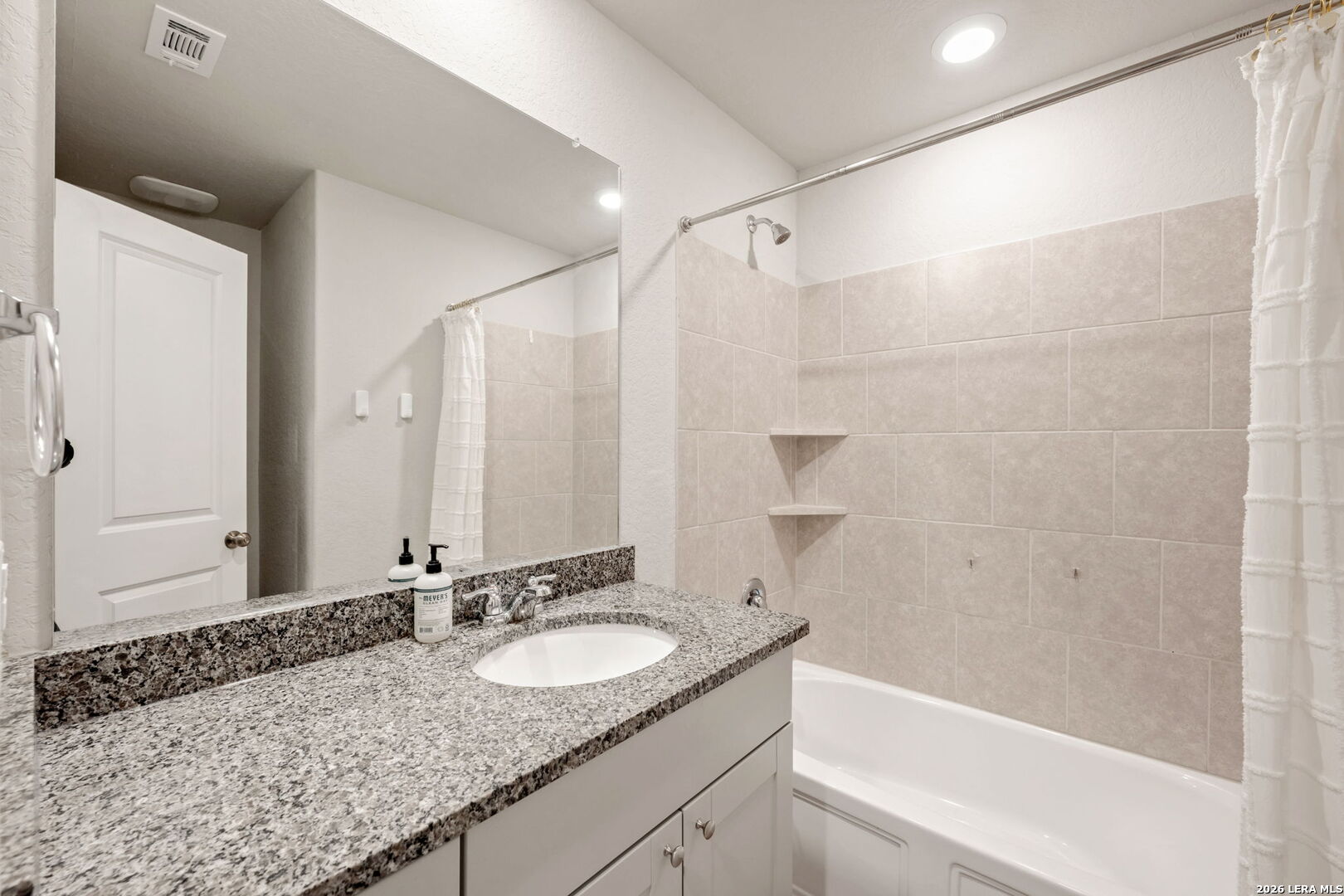 Enjoy breathtaking views of the Texas Hill Country in this beautiful, move-in-ready home in Hidden Trails. The home features a fantastic open-concept floor plan with 4 bedrooms and 2 full baths, elegant kitchen cabinetry, a spacious kitchen pantry, a luxurious walk-in shower, and a HUGE custom master closet. The spacious kitchen has granite countertops, a massive island and sitting bar, abundant cabinetry, and energy-efficient appliances, opening seamlessly to the living and dining areas-ideal for everyday living and entertaining. Step outside and enjoy the incredile view overlooking a lucious, private greenbelt with a private gate for direct access. The covered patio with an upgraded 12x20 slab and full fenced backyard provide plenty of opportunity for your backyard fun. A full sprinkler system makes maintenance easy. The private primary suite is tucked at the back of the home and includes a double vanity, oversized walk-in shower, and large walk-in closet. Additional features include blinds, water softener, programmable thermostat, Ring camera, and a fully decked attic for extra storage. Enjoy resort-style living in Hidden Trails with top-rated Comal ISD schools. Amenities include an infinity pool, Junior Olympic pool, clubhouse, fitness center, trails, playgrounds, basketball courts, fishing pond, and frequent community events. Conveniently located off Hwy 281-just minutes to shopping, dining, and medical, 30 minutes to San Antonio Airport, and 20 minutes to Canyon Lake.