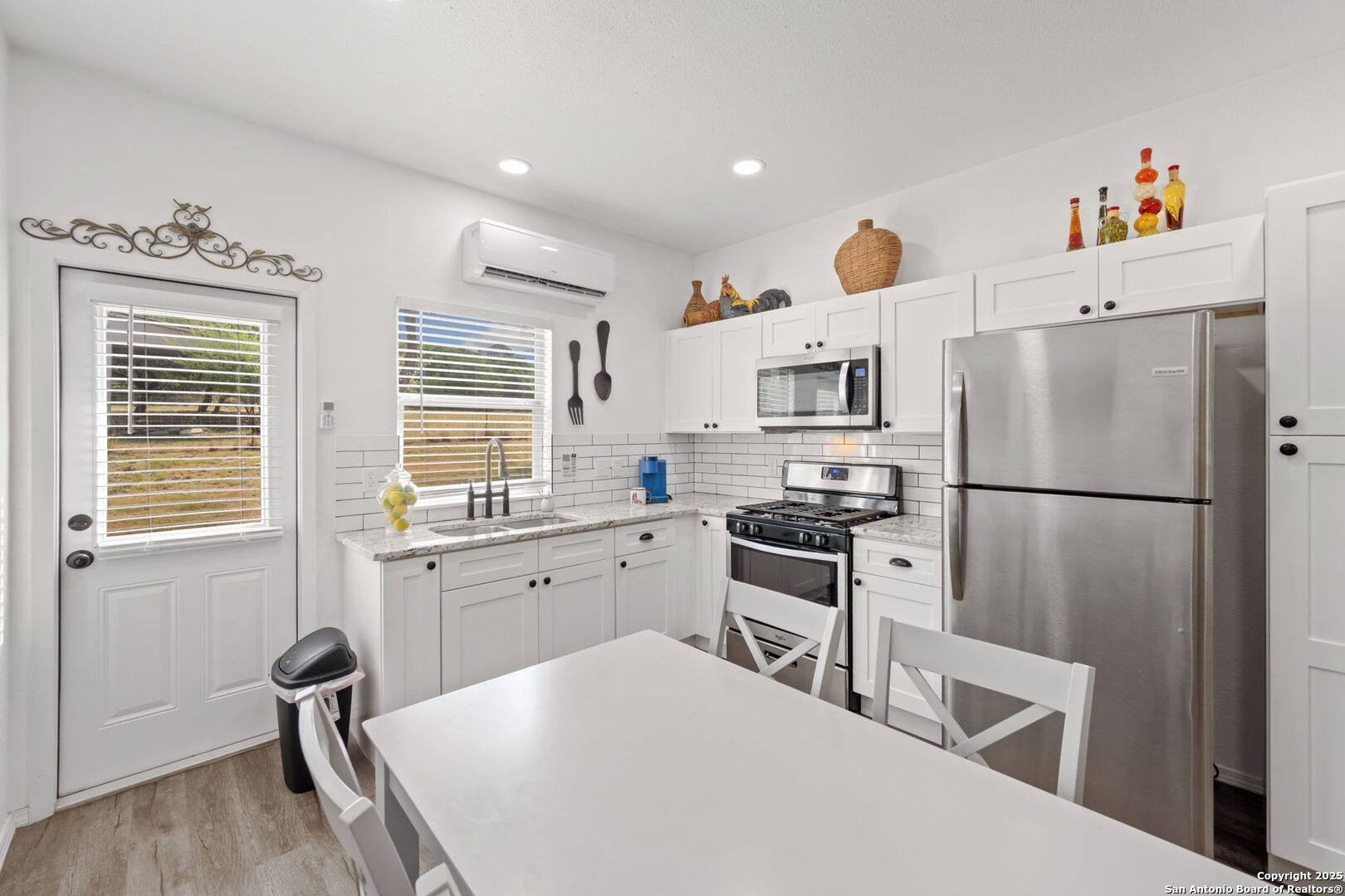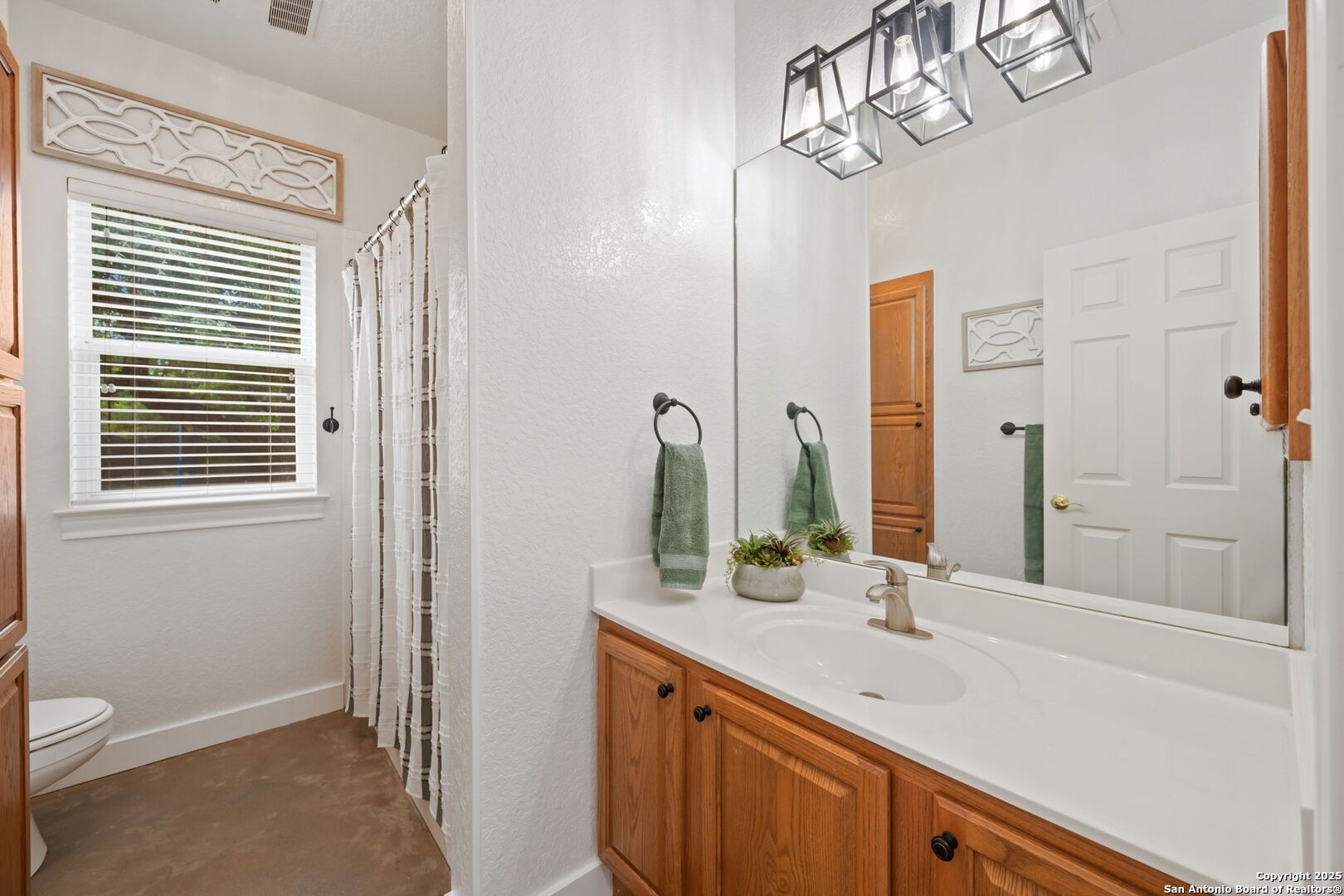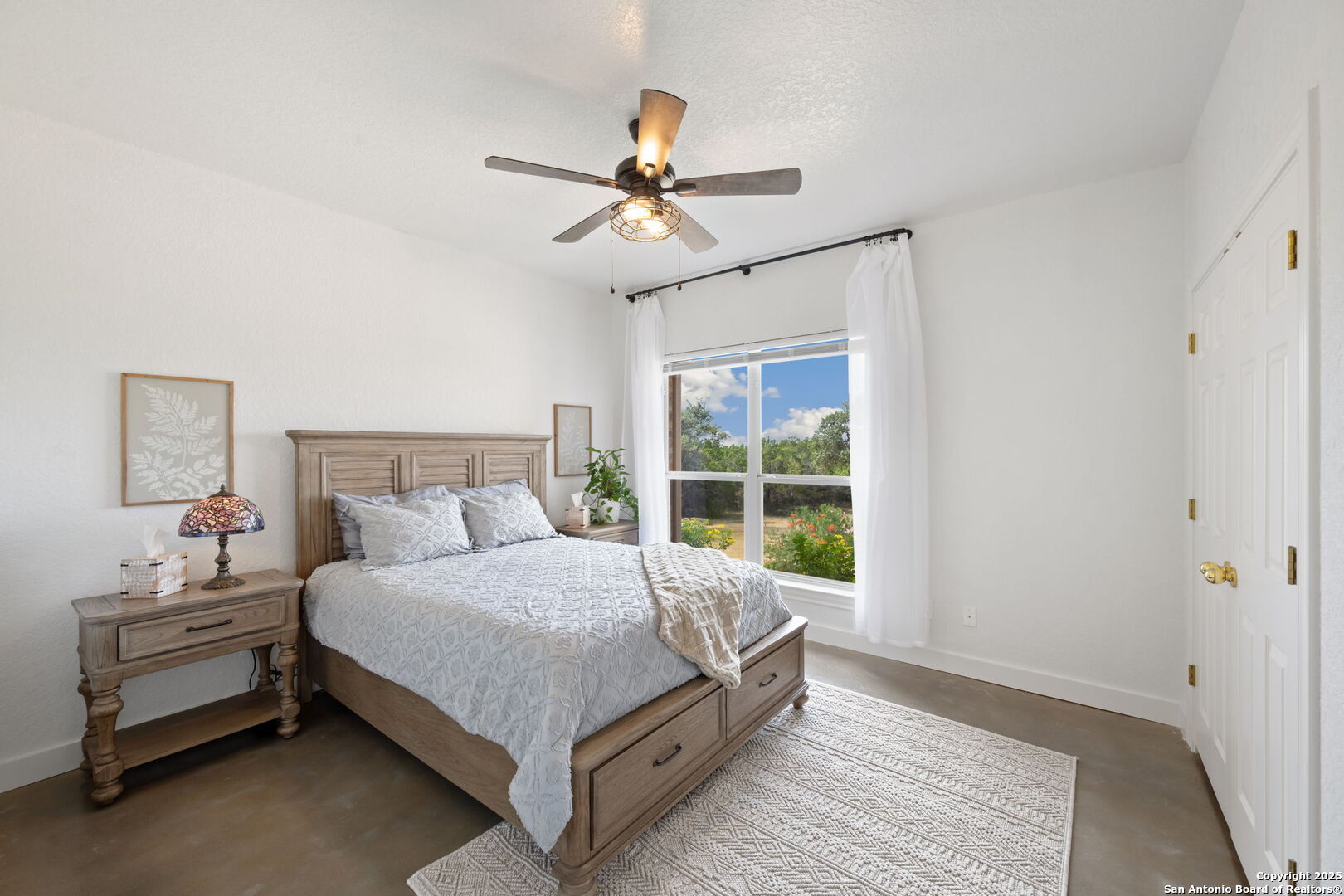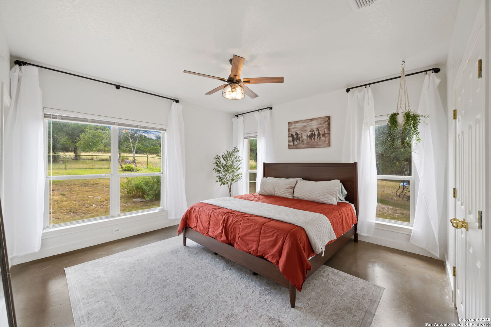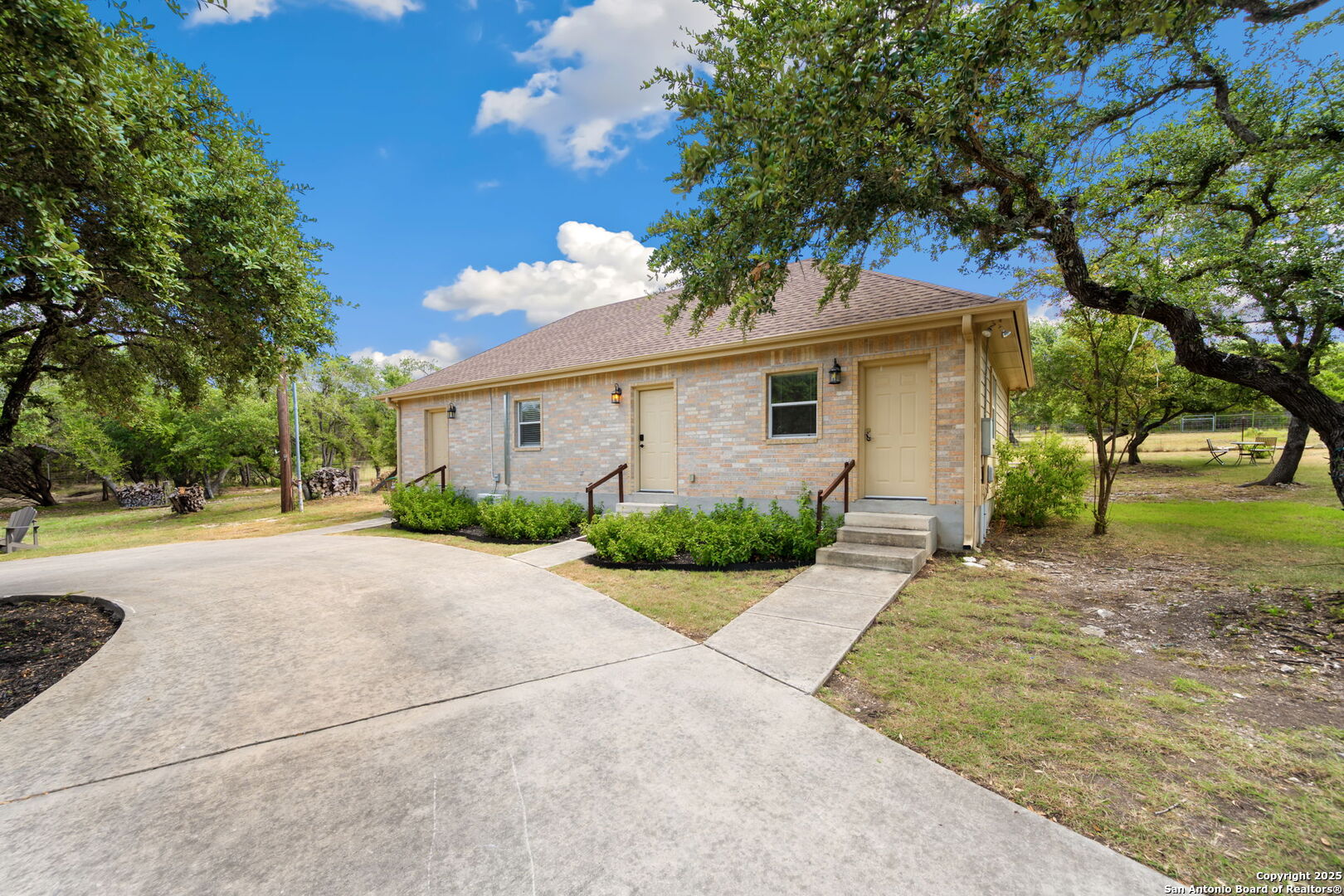 A beautiful, private, and peaceful property located in the Rim Rock Ranch neighborhood, just off FM 1863 in Bulverde, Texas. Nestled on 4.29 gated acres, this property offers the perfect blend of peaceful country living and convenient access to downtown Bulverde, Spring Branch, and Northern San Antonio. The main home spans 2,020 sq. ft. and features 3 bedrooms and 3 full bathrooms, with a thoughtfully designed open layout and plenty of natural light. Enjoy the charming kitchen, cozy living area, and a 2-car attached garage for everyday comfort and functionality. Step outside and experience the true charm of Texas Hill Country living. The land is 3/4 of the way fenced around the perimeter of the property and cross-fenced, ideal for horse lovers, with dedicated pasture space and ample room to roam. A standout feature of this property is the versatile 3-bay outbuilding, which has been professionally converted into a combination office and guest apartment. The apartment includes a full kitchen, living area, bedroom, bathroom, and its own laundry-perfect for extended family, guests, or income-producing potential. Whether you're looking for a peaceful homestead, multi-generational living, or a small horse property, this one-of-a-kind home in Rim Rock Ranch checks all the boxes. Features: 4.29 gated, fenced acres - horse-ready 2,020 sq. ft. main home: 3 beds, 3 baths, 2-car garage Converted 3-bay outbuilding with apartment + office space Apartment includes full kitchen, living, bed & bath, private laundry Quiet, established neighborhood with acreage lots Convenient to Bulverde, Spring Branch & San Antonio Don't miss the opportunity to own a rare slice of the Hill Country with room to live, work, and thrive!
