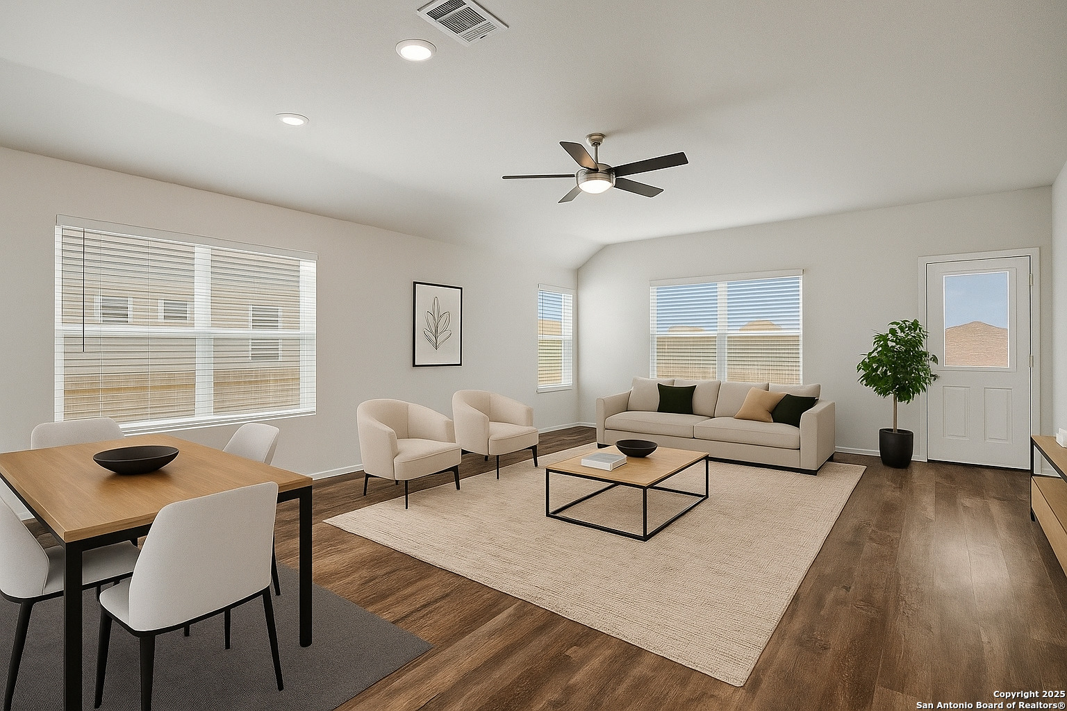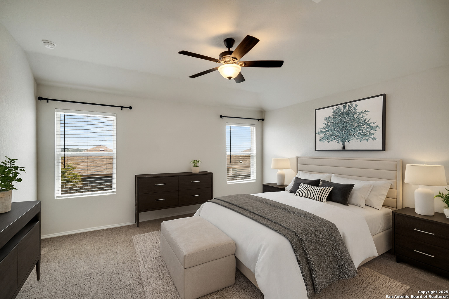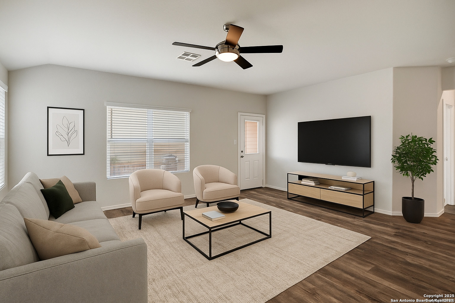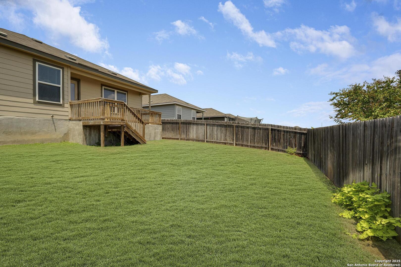 Welcome to Johnson Ranch living in the Texas Hill Country! Welcome to this well-appointed 4-bedroom, 3-bath home with 1,910 sq. ft. in the desirable Johnson Ranch community. The open-concept layout features a tankless water heater, stainless steel GE appliances with a brand-new microwave, and abundant natural light throughout. The floor plan includes two bedrooms with ensuite baths-the spacious primary suite and a private secondary suite tucked away from the main living areas, ideal for a grandparent, an older child, or guests seeking privacy. Enjoy outdoor living on the extended patio and deck, perfect for entertaining or unwinding in the peaceful Texas Hill Country setting. Conveniently located just off US-281, you'll have quick access to top-rated schools, shopping, dining, and community amenities including parks, walking trails, and green spaces.