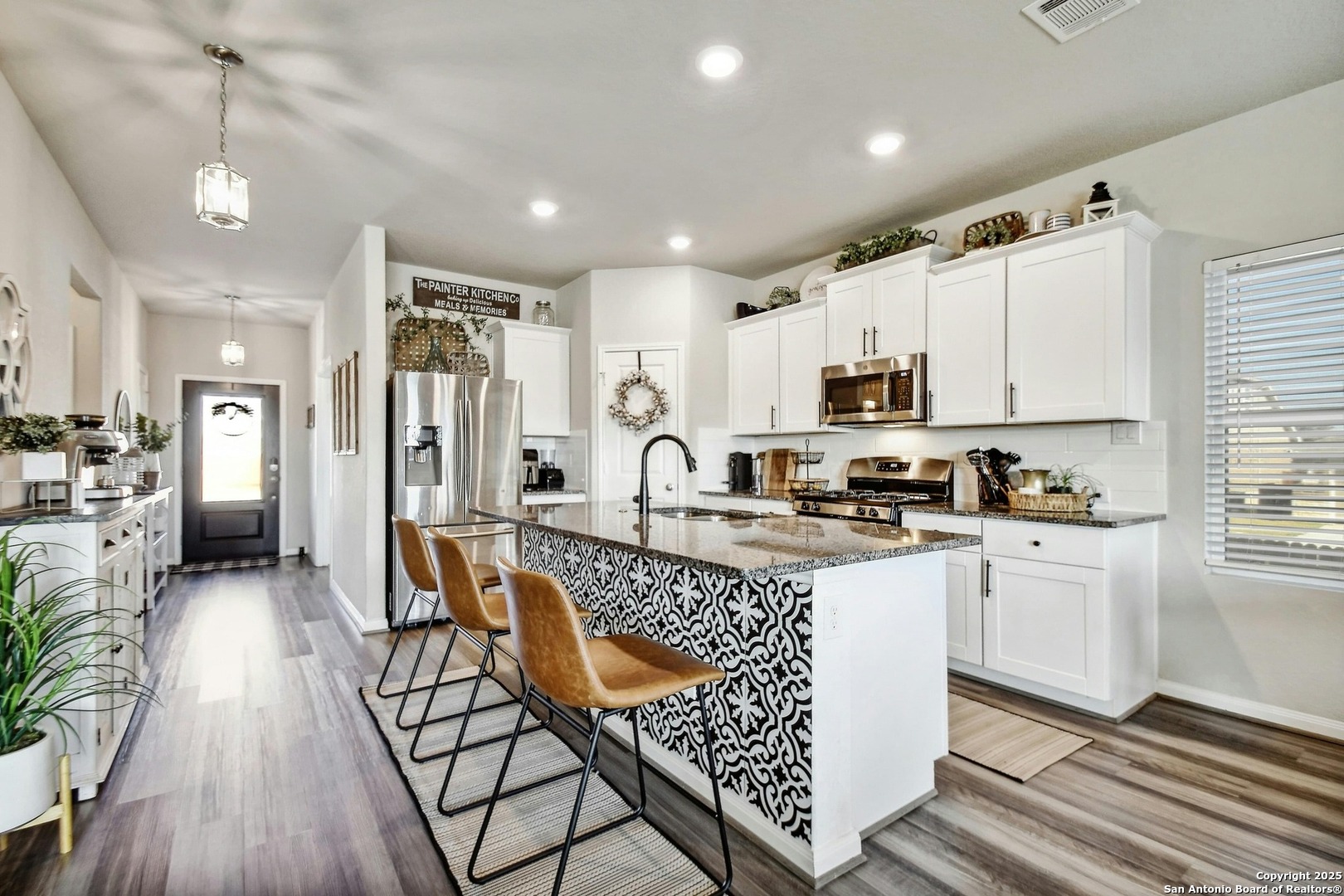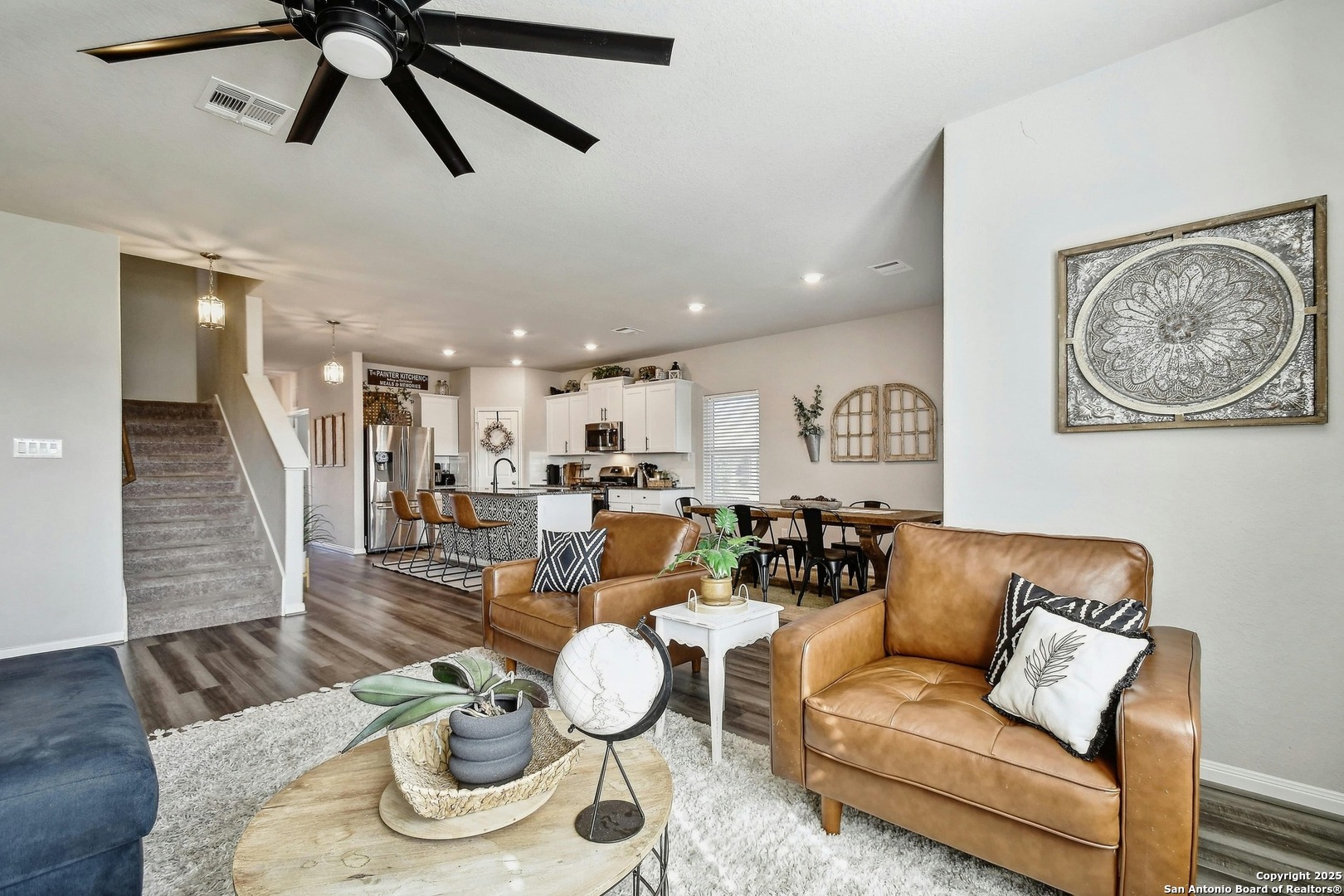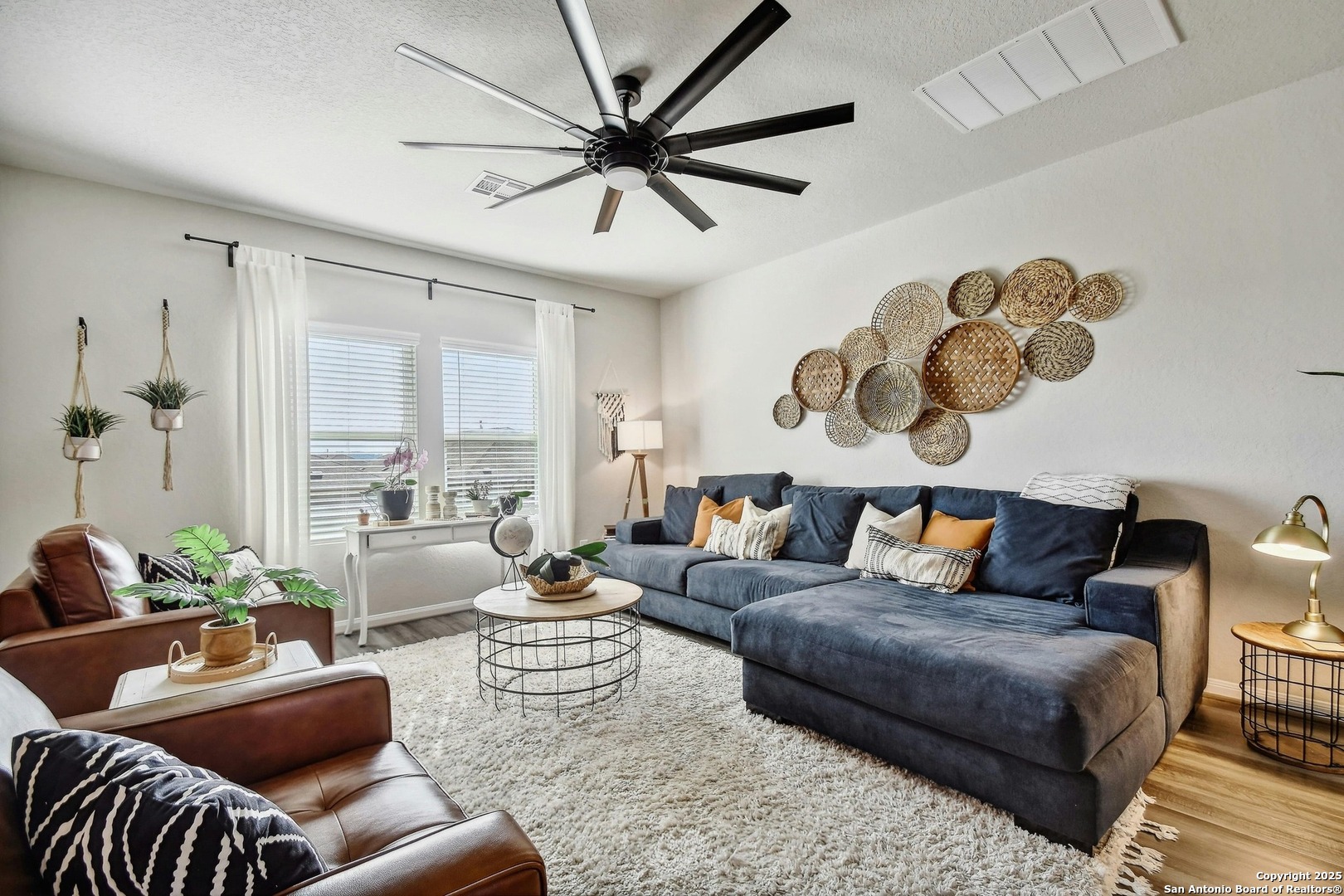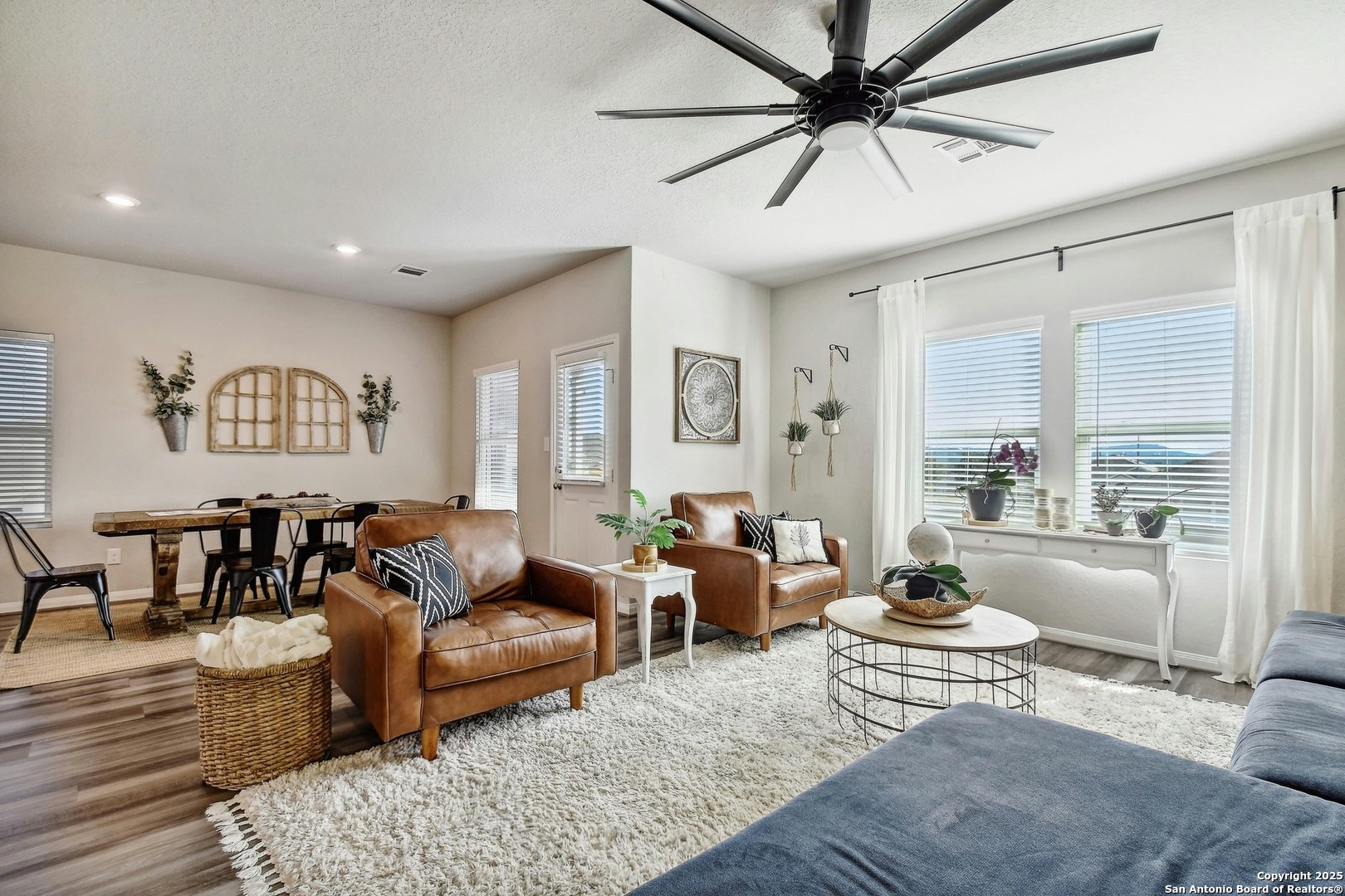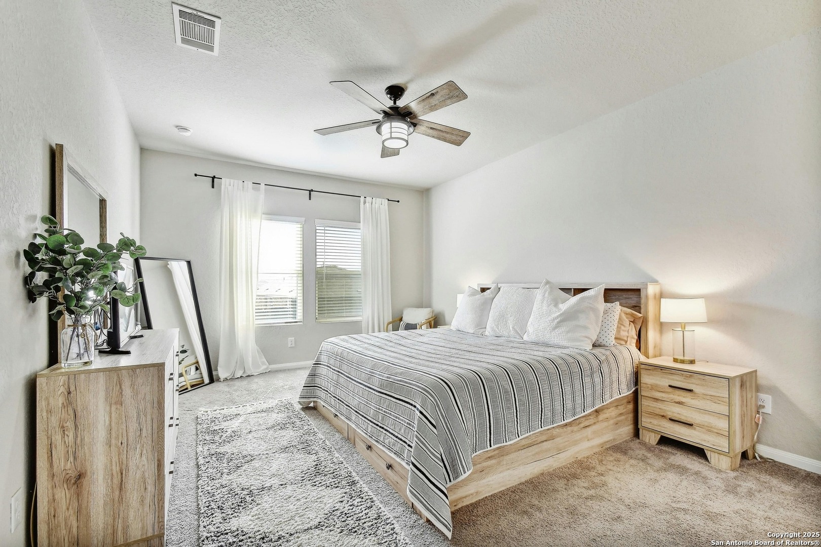 This beautiful 4-bedroom, 2.5-bath home sits on a desirable corner lot and offers an open-concept layout perfect for modern living. The spacious living, dining, and kitchen areas flow together seamlessly, with a private study for work or school. The downstairs primary suite provides comfort and convenience, while upstairs features a loft, three bedrooms, and a full bath-plenty of room for everyone to spread out. Enjoy resort-style community amenities including two pools, a fitness center, trails, playgrounds, and sports courts. Hidden Trails offers a peaceful Hill Country setting just minutes from Bulverde's shopping, dining, and top-rated Comal ISD schools, with easy access to Highway 281 for a quick commute to San Antonio.