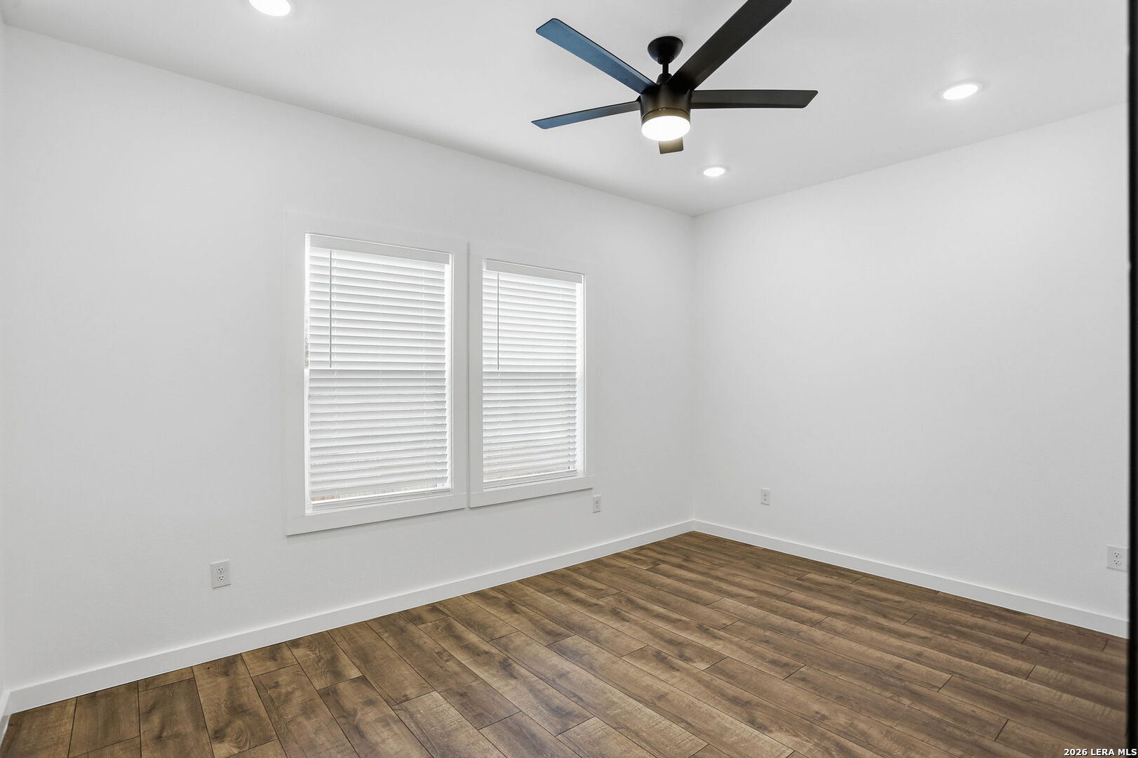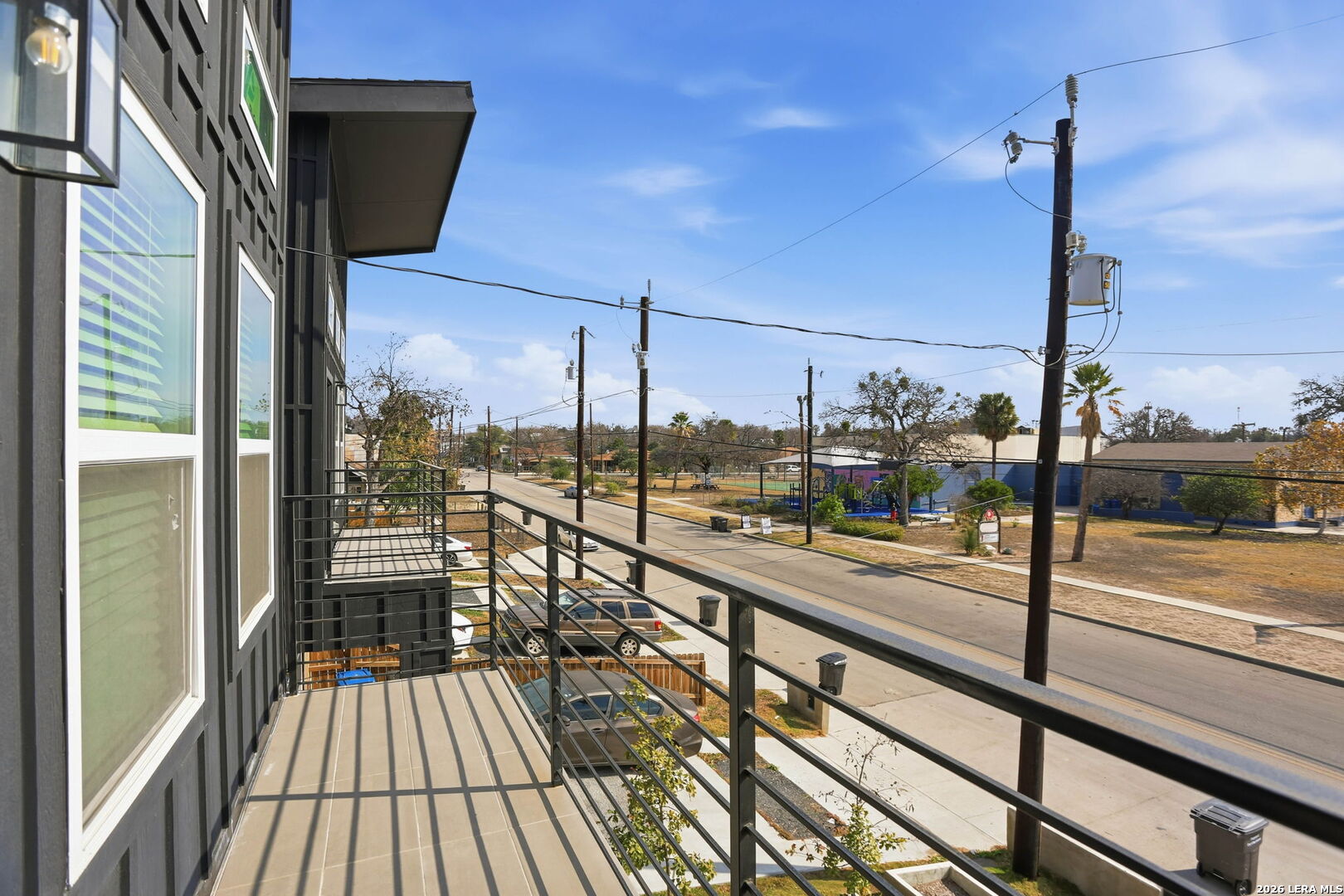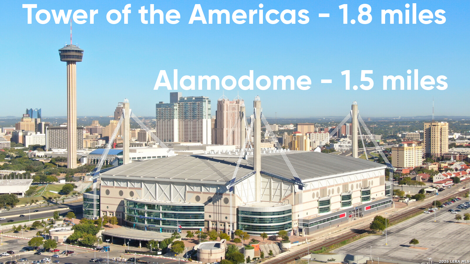 Situated directly across from Denver Heights Park, this home showcases a welcoming open-concept design that flows from the entry through the dining area and into the kitchen. The kitchen is equipped with an island, breakfast bar, stainless steel appliances, pendant lighting, recessed lighting, and custom cabinetry. The home offers four bedrooms, including a first-floor bedroom with access to a full bath-perfect for guests or flexible living. Upstairs features two secondary bedrooms and a spacious primary suite complete with a walk-in closet, private balcony, and an en-suite bath with a walk-in shower and double vanity. Ceiling fans are installed throughout the home, including the living area. The backyard features a covered patio and privacy fence, ideal for outdoor relaxation or entertaining. Conveniently located near downtown San Antonio attractions such as the River Walk, Alamodome, Pearl Brewery, AT&T Center, San Antonio Missions, and a variety of dining and entertainment options.