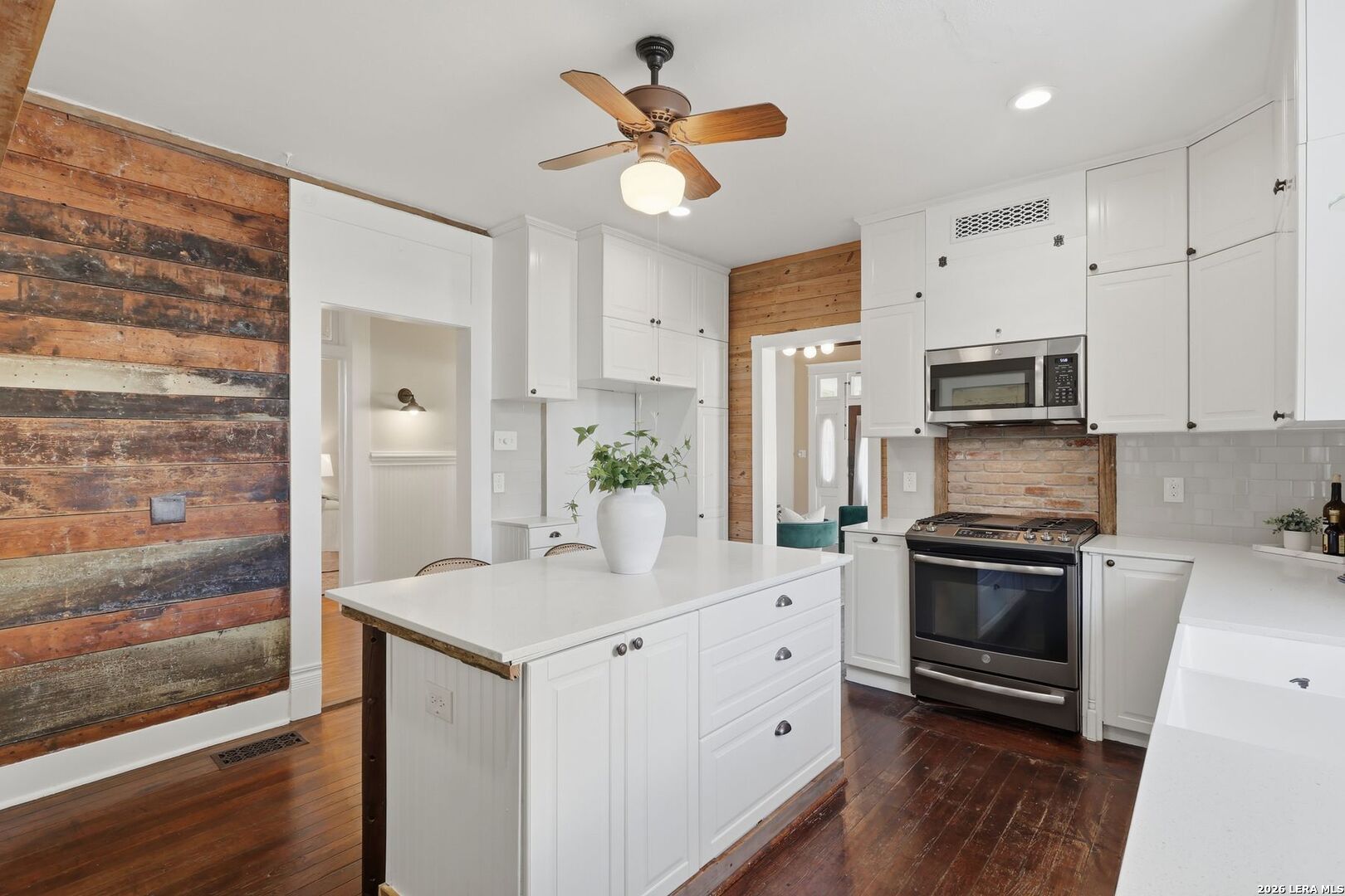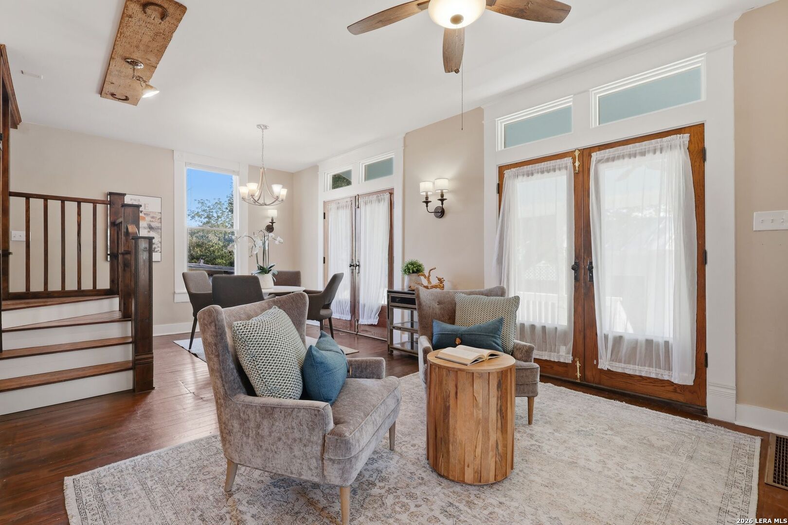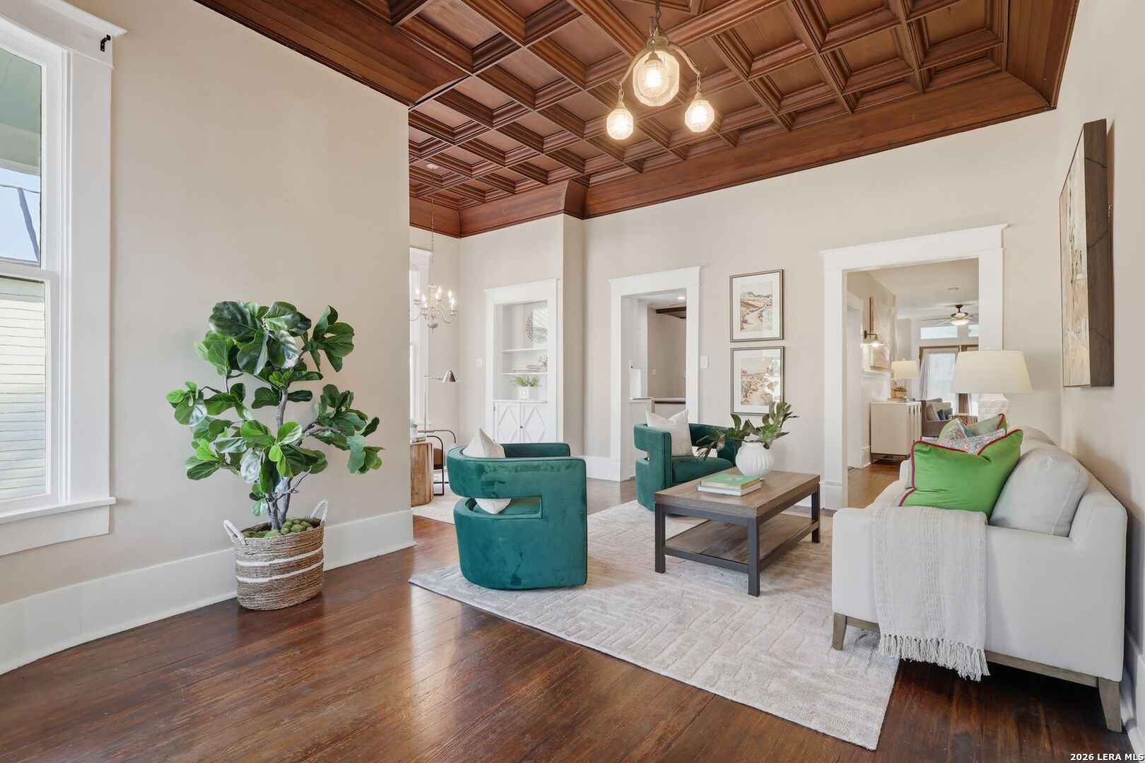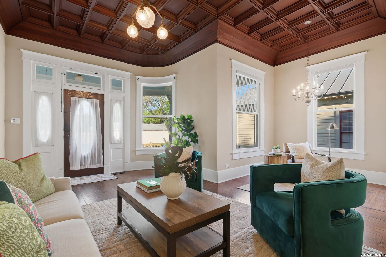 Own a true piece of history in the heart of the iconic King William Historic District, where timeless architecture and modern living come together in a truly inspiring way. As recognized by the Texas Historical (THC), this remarkable residence was once home to renowned composer Silvestre Revueltas, who created his celebrated Septet Batik within these very walls-an artistic legacy that continues to resonate throughout the home. From the moment you arrive, the architectural presence is undeniable. Elegant Corinthian columns, a rare rounded glass window, and a welcoming front porch-complete with a cheerful swing-set the tone for the warmth and character found inside. The home's original craftsmanship shines through exquisite coffered wood ceilings, rich hardwood floors, and thoughtfully preserved details that honor its heritage. Inside, light-filled spaces create an inviting atmosphere where historic charm meets everyday comfort. The fireplace-centered parlor, rich with wood-paneled warmth, offers timeless charm and flexibility-perfectly suited as an elegant additional primary suite or preserved as an elegant entertaining space. At the heart of the home, the kitchen blends modern functionality with farmhouse-inspired charm-featuring updated appliances, generous counter space, an island for gathering, and stylish finishes that make it perfect for both daily living and entertaining. The flexible layout allows for a variety of lifestyles, whether accommodating guests, working from home, or creating personalized spaces. The primary bath offers a classic clawfoot tub-an inviting retreat that echoes the home's timeless appeal. Outdoors, enjoy a low-maintenance yard designed for ease and beauty, ideal for a lock-and-leave lifestyle without sacrificing charm. Mature landscaping and curated garden spaces enhance the home's inviting curb appeal. Perfectly positioned just moments from Hemisfair Park, local restaurants, and the vibrant energy of downtown, this home also benefits from proximity to the transformative Project Marvel-placing it at the center of San Antonio's exciting future. This is more than a home-it's a rare opportunity to live within a legacy, where history, artistry, and modern lifestyle come together to create something truly unforgettable.