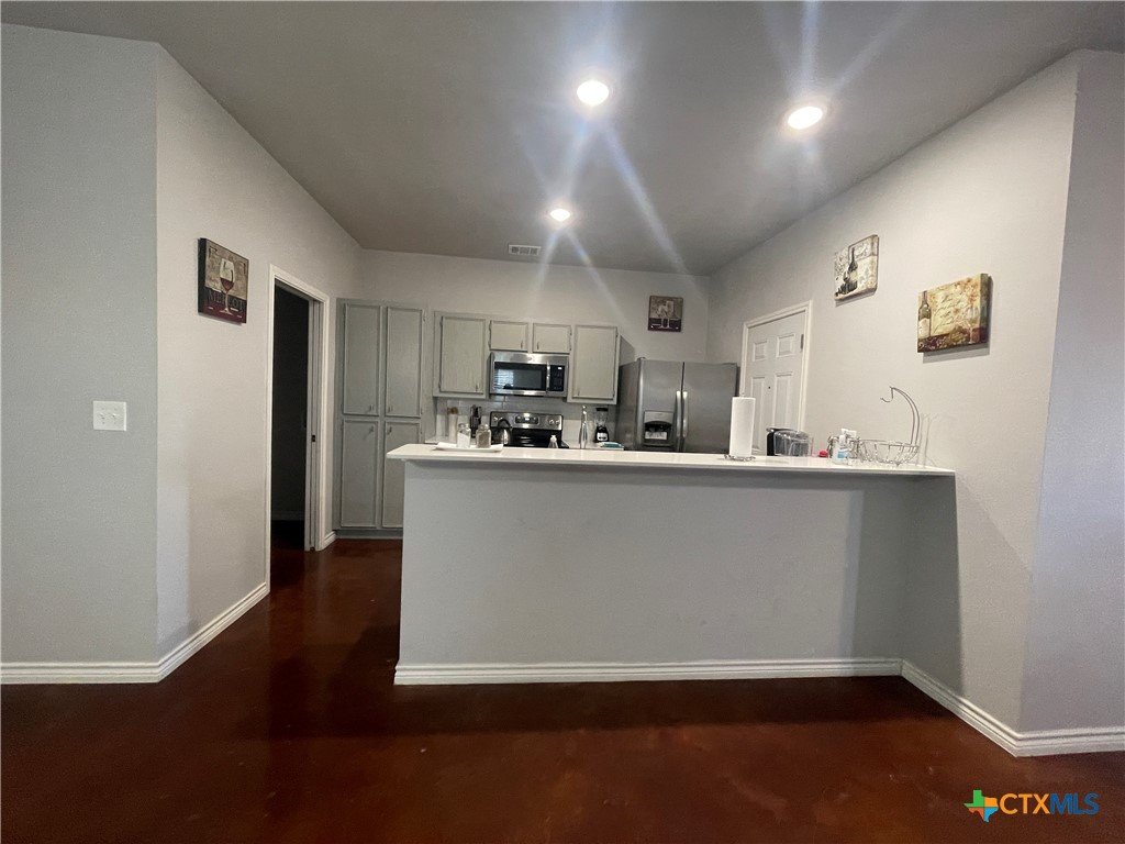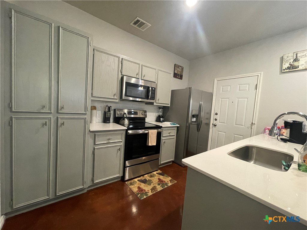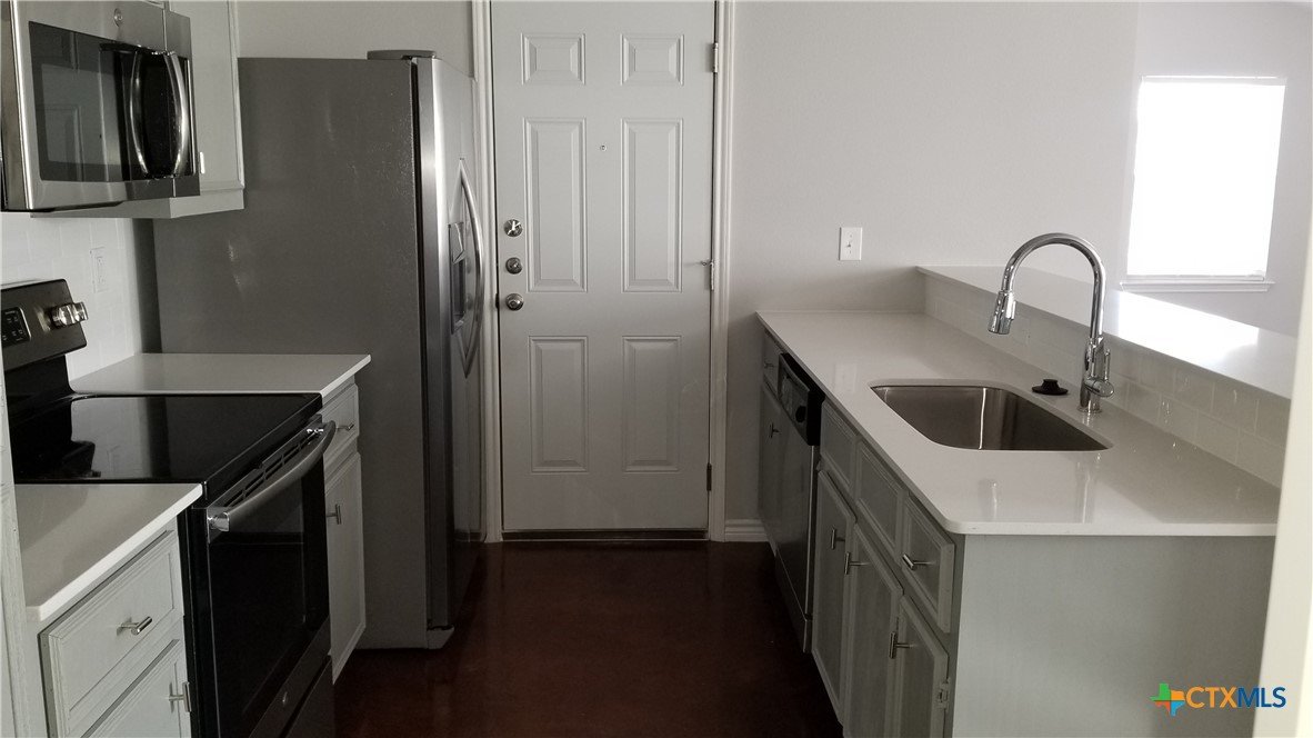LUXURY MODERN HOME! 3 bed 2 bath unit features polished concrete floors, sparkling white QUARTZ countertops, open floor plan, and vaulted ceilings that work together to create a sophisticated and modern living space. The kitchen is fully equipped with stainless steel appliances. The sleek black cooktop is surrounded by chic white subway tile backsplash. The large master suite has an enormous walk-in closet and double vanities. Spray foam insulation and ceiling fans for maximum energy efficiency and a private garage for one car with automatic openers. EXPANDED PARKING LOT! AVAILABLE NOW! Photos were taken before the last tenant moved in.