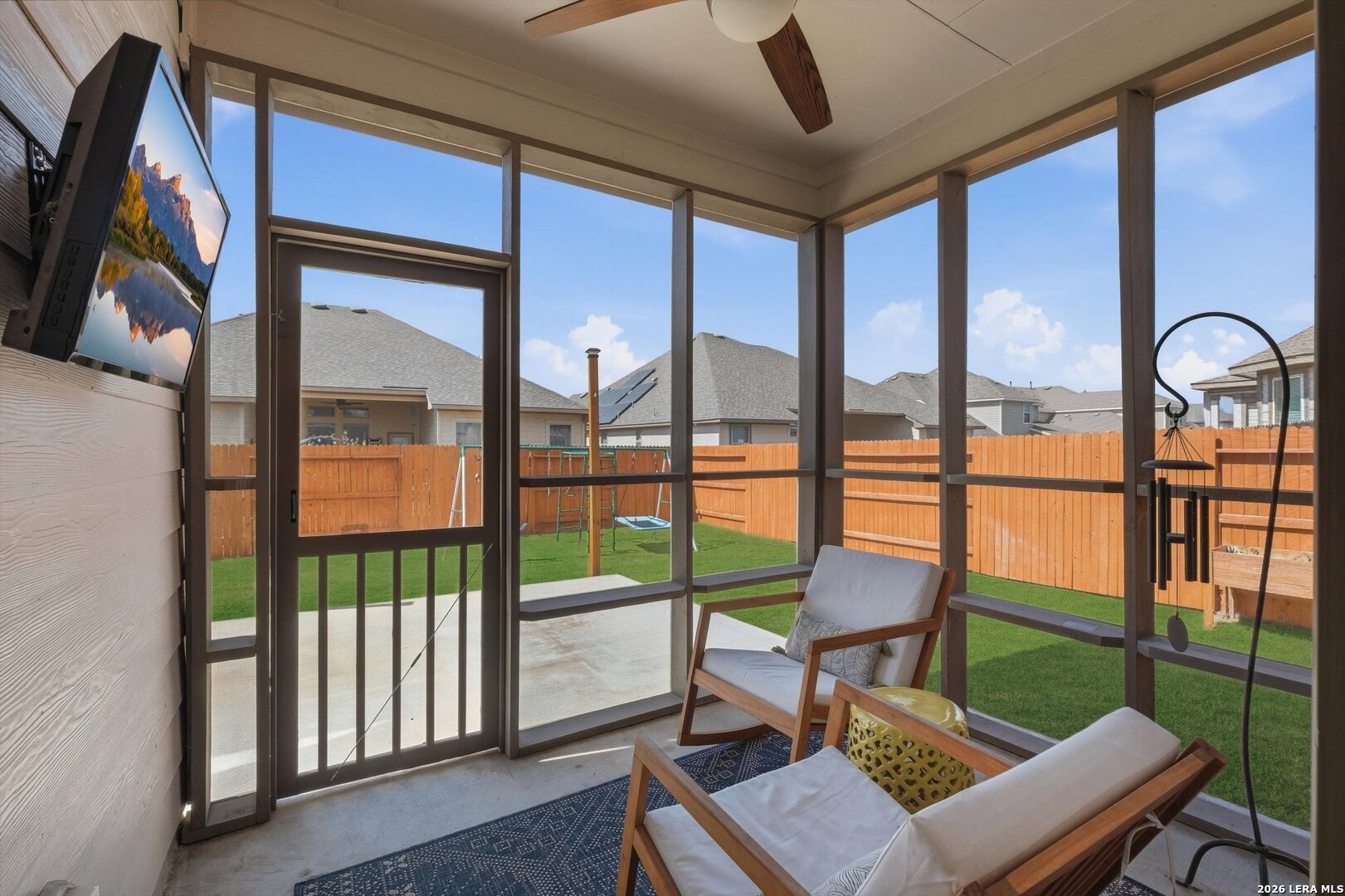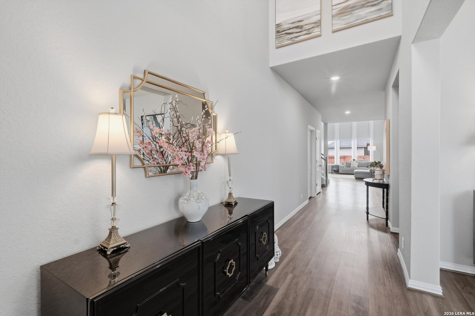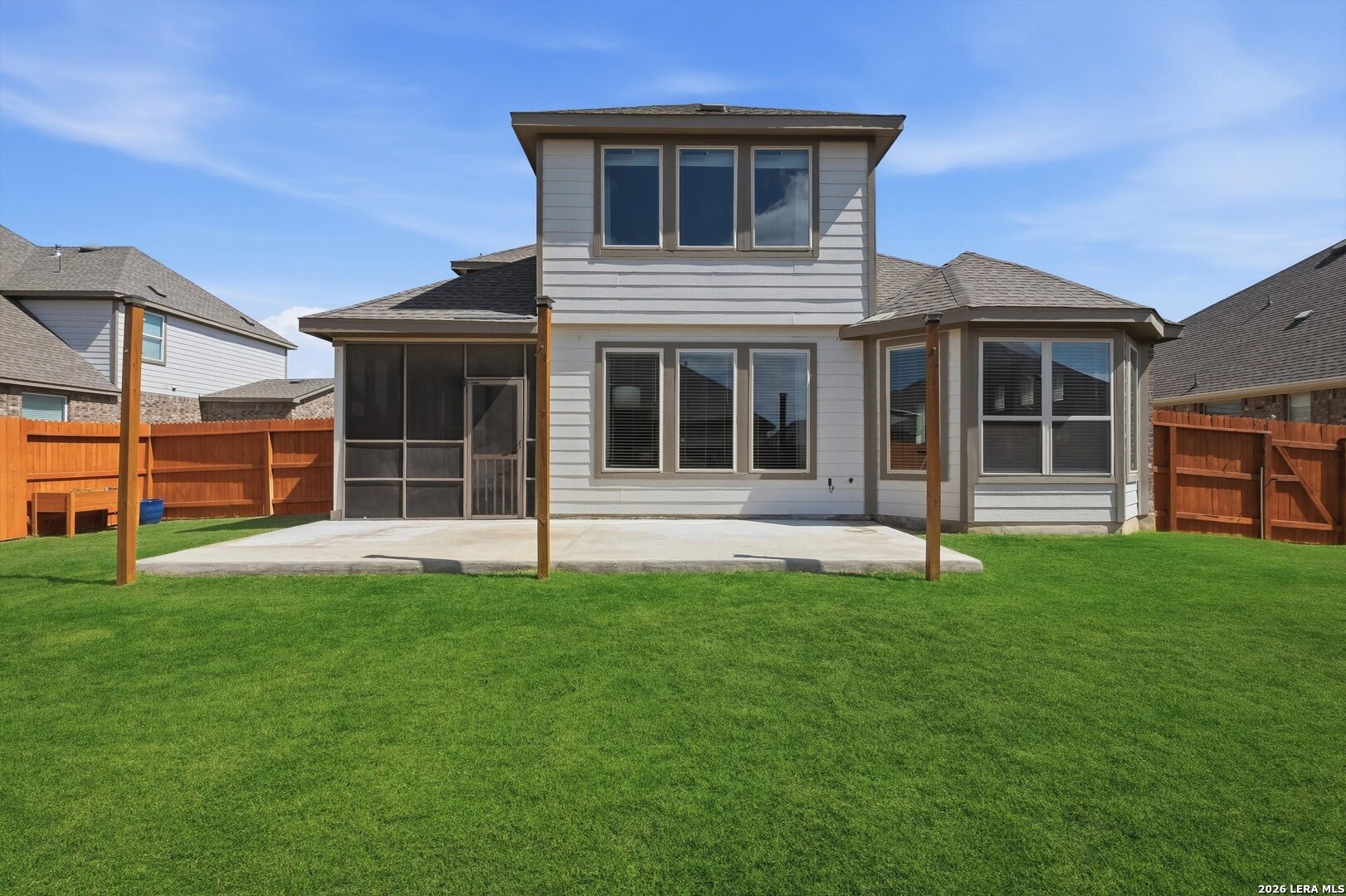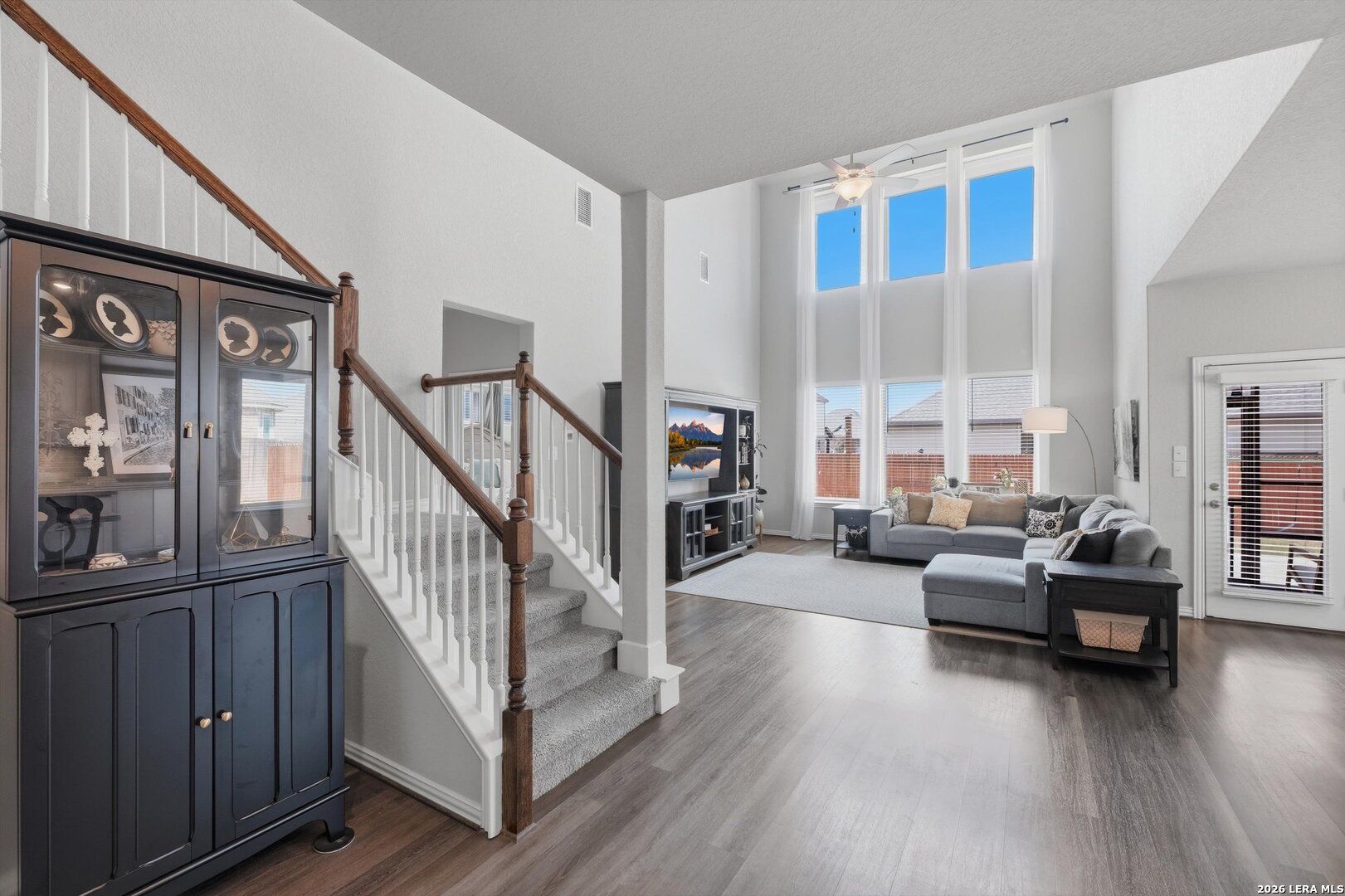 Beautifully maintained home featuring a grand entryway and soaring 20 foot ceilings that create an impressive and open feel as you enter. The living room showcases accent windows with automatic shades, bringing in abundant natural light with convenient control. The kitchen offers quartz countertops, gas cooking, and brand new Frigidaire Gallery microwave and refrigerator, plus a reverse osmosis system for added convenience and water quality. The home also includes a water softener that is still under warranty. The spacious primary suite features elegant bay windows that create a bright and relaxing retreat. The primary closet connects directly to the laundry room, offering a practical layout that makes everyday living easier. Upstairs you'll find a massive game room that provides flexible space for entertainment, a second living area, or a media setup. Enjoy outdoor living with a screened in porch and extended patio, perfect for a morning cup of coffee, relaxing, or hosting guests. The home also includes a full irrigation system in the front and back yards along with additional storage space in the garage.
