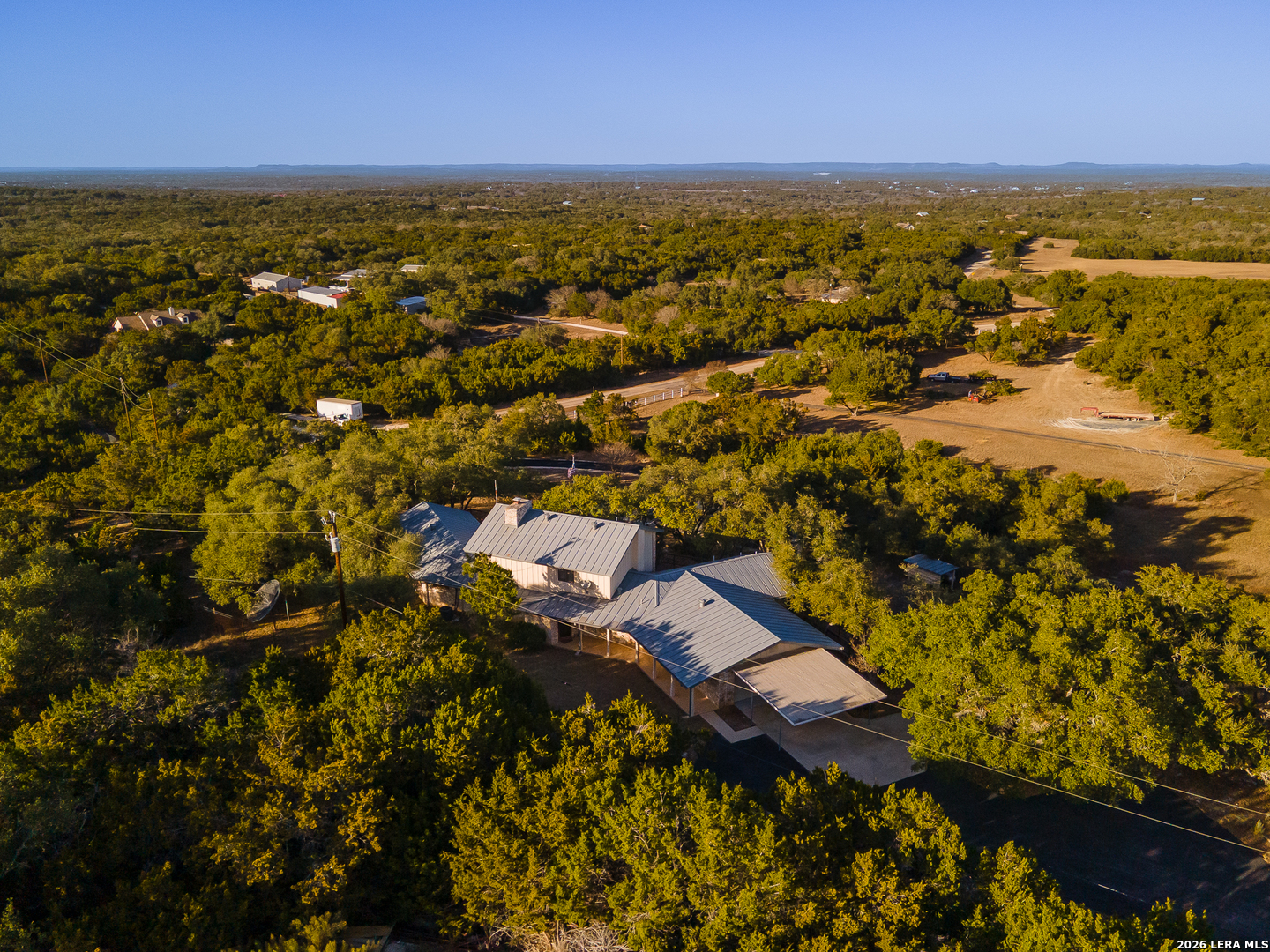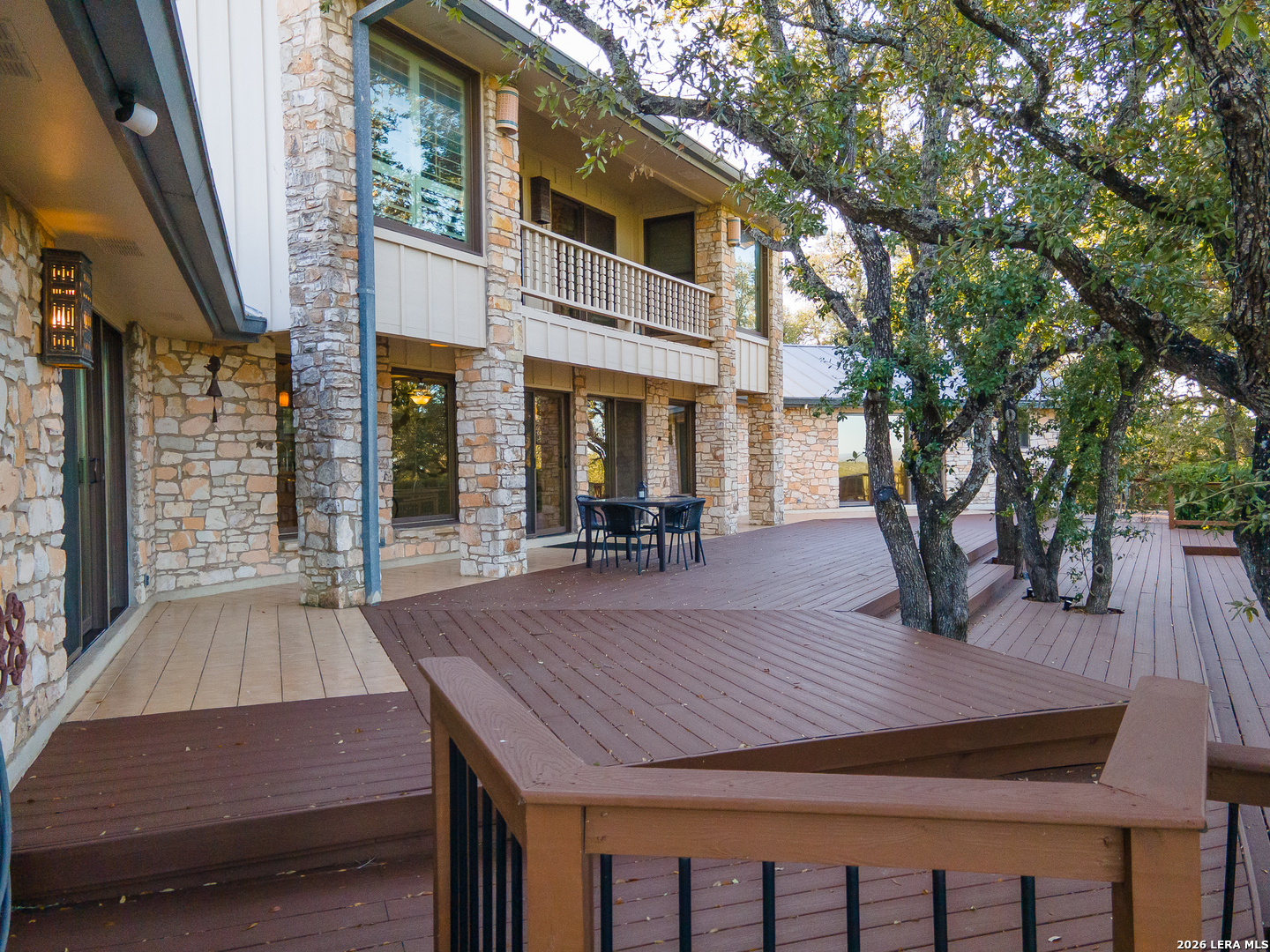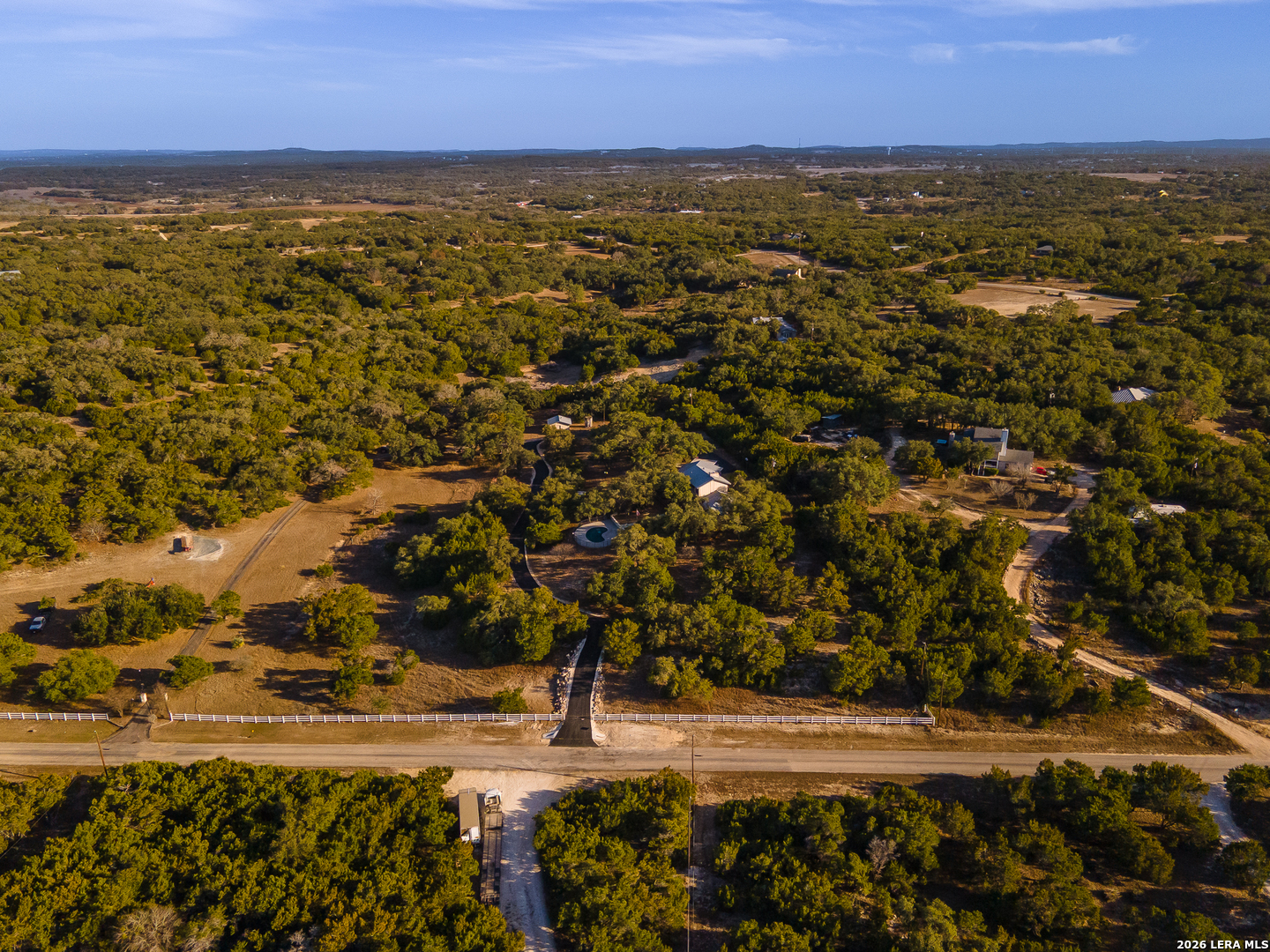 SPECTACULAR STAR LIT NIGHTS! Modern-Rustic Style, Hill Country Estate on 4.26 wooded Acres. (View video tour) Like New 3,061Sqft Home 3 Bedroom (All main level, 2 master bedrooms), 3 Bath, a large 2 Car garage, fenced heated pool, huge wrap-around 3,300 sqft, multi-level Trex deck, FREE WATER! Unrestricted chlorinated deep water well, metal roof, large 2nd floor media room, covered balcony, wet bar, plus a fully wired workshop, a new asphalt drive, new remote gate, and a White picket fence! Only minutes' drive to Boerne, Bulverde, Canyon Lake, San Antonio Airport, Golfing, and shopping! The Perfect home, with lots of character and modern luxuries, ready to entertain family and friends. Plenty of parking for RV, Boat, or business vehicles, and equipment. Beautiful open floor plan with a kitchen featuring stainless steel appliances, a golden flake backsplash, large custom cabinets, premium granite countertops, a walk-in pantry, and a utility room. This home is beautifully designed with a cozy feel but opens wide to the outdoors by way of the large, wood-framed, glass wall-style doors, bringing the outdoors in! The master baths include custom cabinets, showers, and walk-in closets!! Entertaining continues upstairs in the large media room with a wood-burning fireplace, wet bar, and outer deck! Nights and evenings are breathtaking on the deck or the heated pool, with spectacular views of the stars, planets, or, during the day, the amazing countryside! Horses, other animals are all welcome! Many possible applications for this property, and only minutes to town! Come see this wonderful home for yourself. A/C and water heater, approx. 4 years old, water softener included. This home is priced well below market value for a quick sale! Hurry!