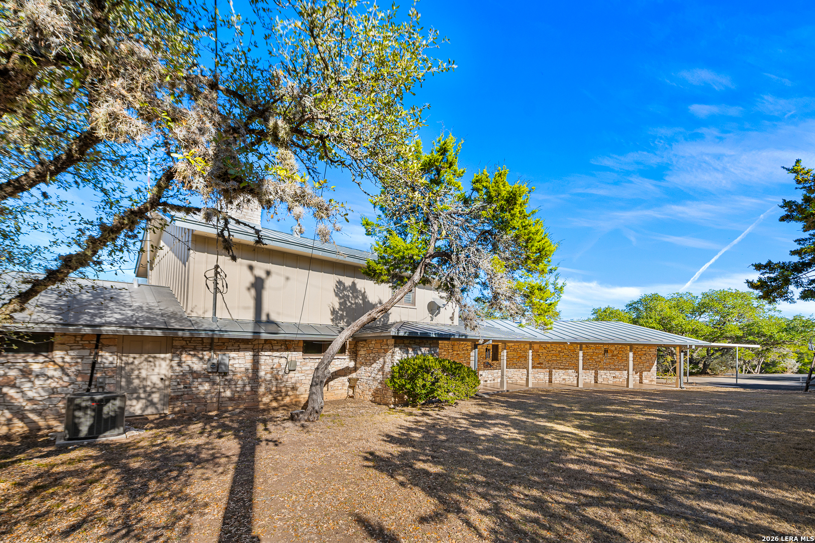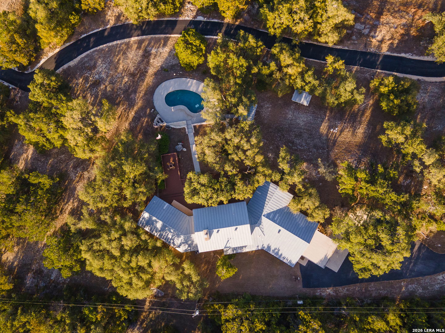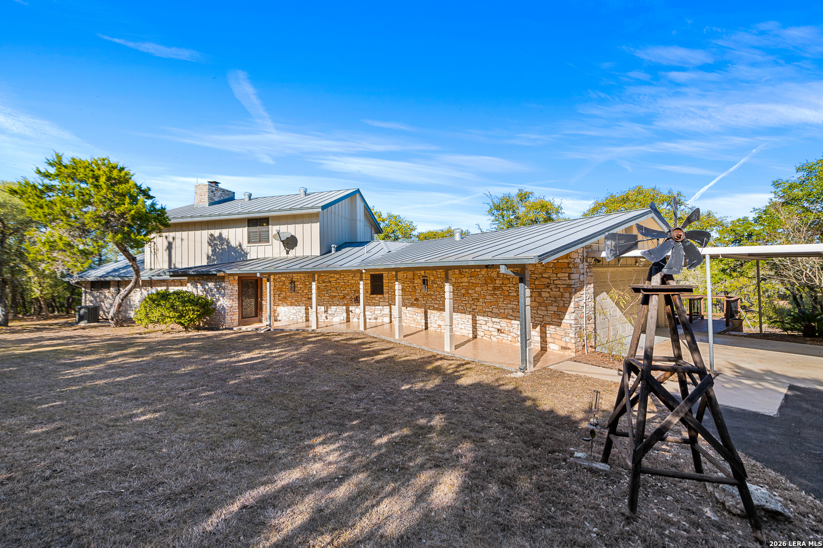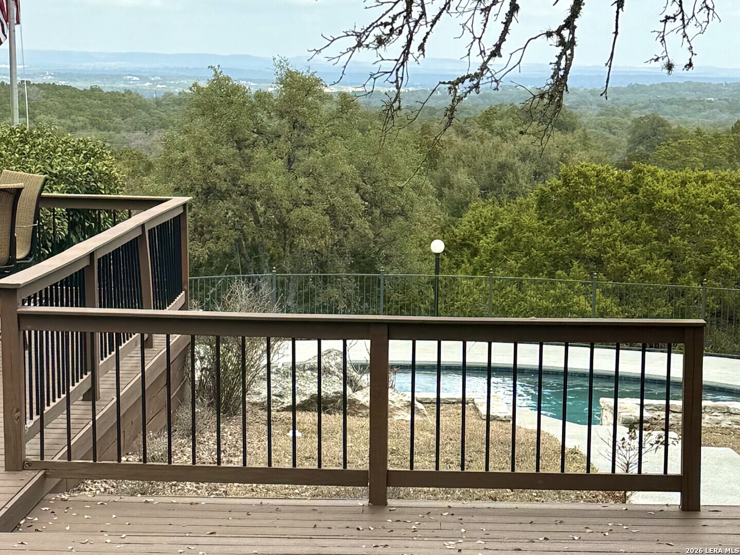 SPECTACULAR STAR LIT NIGHTS! Modern-Rustic Style, Hill Country Estate on 4.26 wooded Acres. (View video tour) Like New 3,061Sqft Home 3 Bedroom (All main level, 2 master bedrooms), 3 Bath, a large 2 Car garage, fenced heated pool, huge wrap-around 3,300 sqft, multi-level Trex deck, FREE WATER! Unrestricted chlorinated deep water well, metal roof, large 2nd floor media room, covered balcony, wet bar, plus a fully wired workshop, a new asphalt drive, new remote gate, and a White picket fence! Only minutes' drive to Boerne, Bulverde, Canyon Lake, San Antonio Airport, Golfing, and shopping! The Perfect home, with lots of character and modern luxuries, ready to entertain family and friends. Plenty of parking for RV, Boat, or business vehicles, and equipment. Beautiful open floor plan with a kitchen featuring stainless steel appliances, a golden flake backsplash, large custom cabinets, premium granite countertops, a walk-in pantry, and a utility room. This home is beautifully designed with a cozy feel but opens wide to the outdoors by way of the large, wood-framed, glass wall-style doors, bringing the outdoors in! The master baths include custom cabinets, showers, and walk-in closets!! Entertaining continues upstairs in the large media room with a wood-burning fireplace, wet bar, and outer deck! Nights and evenings are breathtaking on the deck or the heated pool, with spectacular views of the stars, planets, or, during the day, the amazing countryside! Horses, other animals are all welcome! Many possible applications for this property, and only minutes to town! Come see this wonderful home for yourself. A/C and water heater, approx. 4 years old, water softener included. This home is priced well below market value for a quick sale! Hurry!