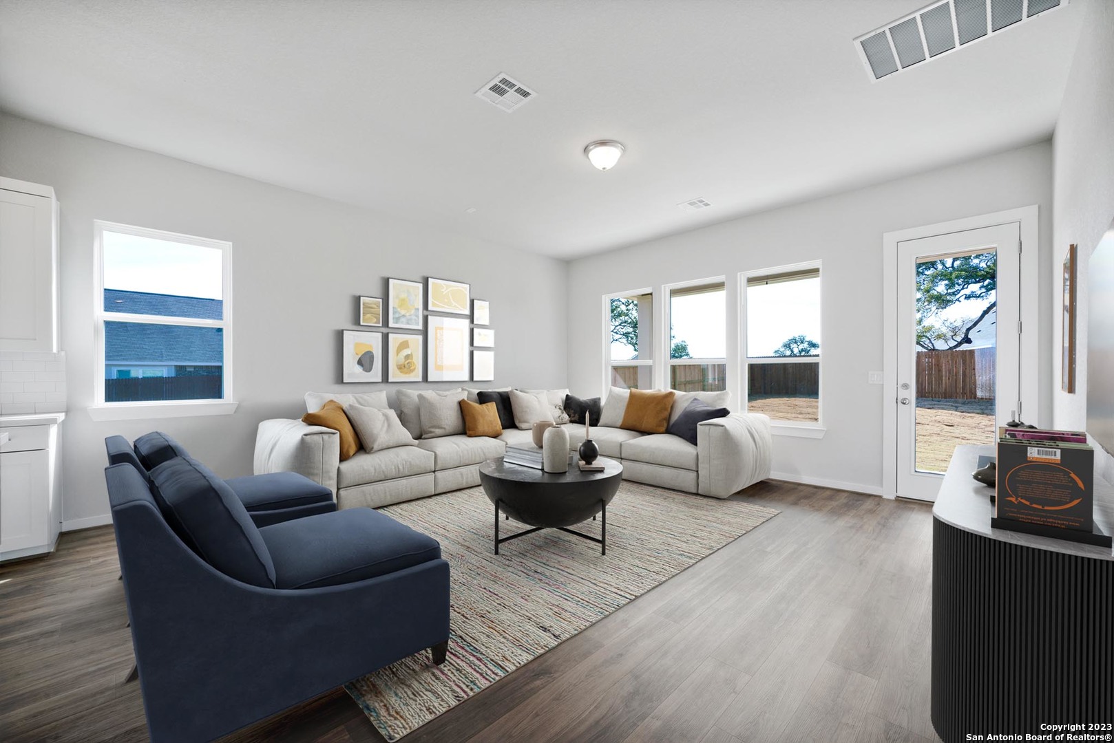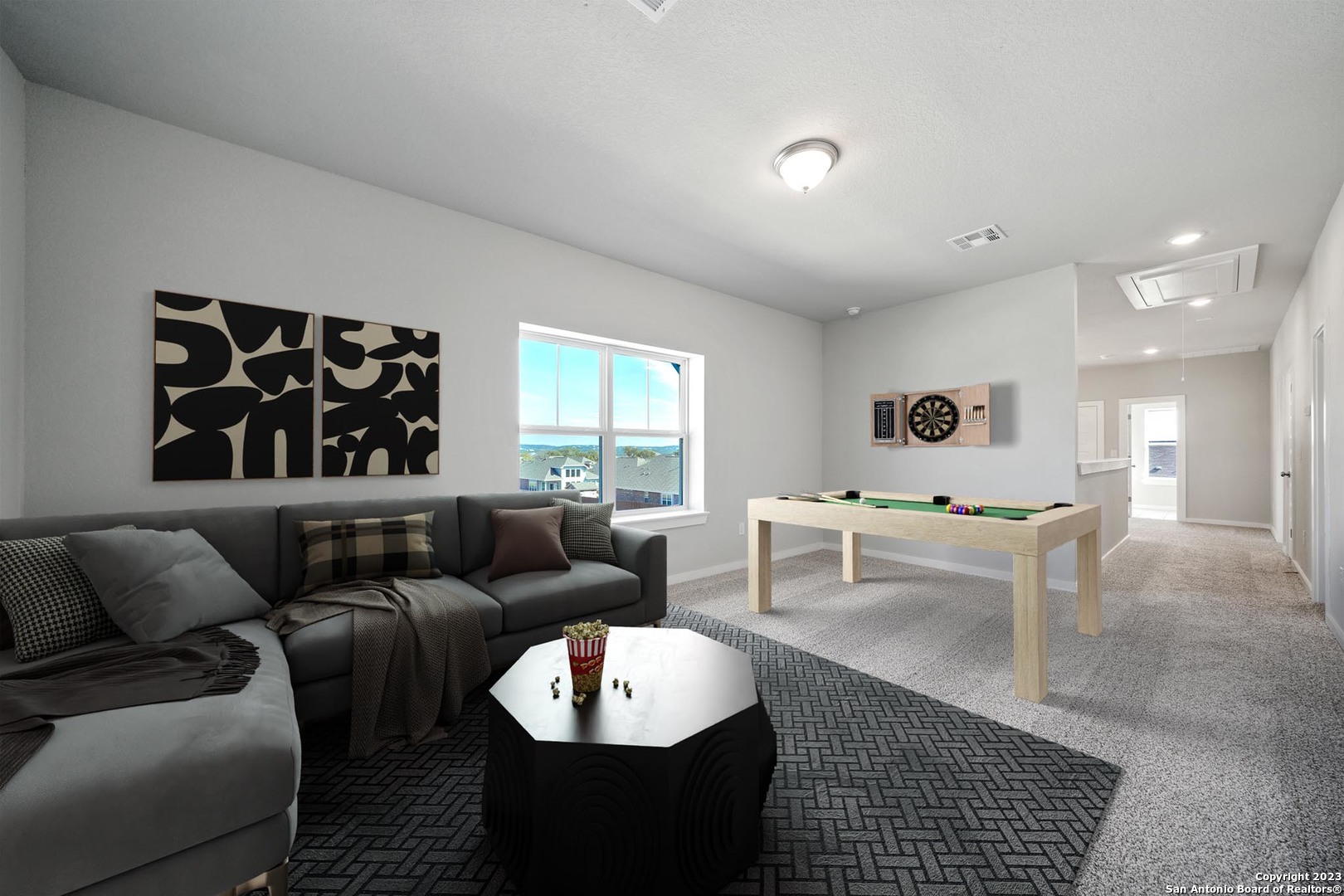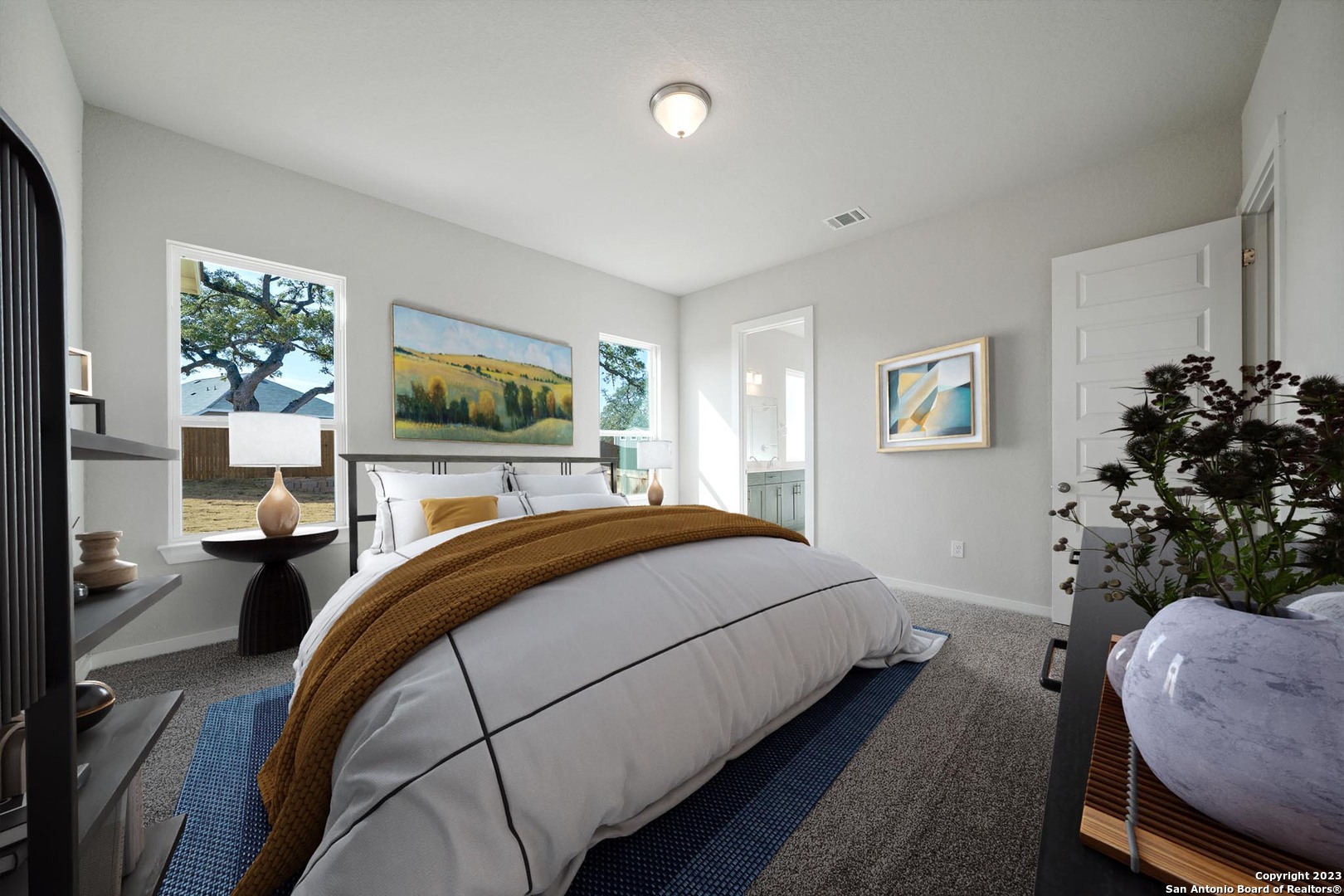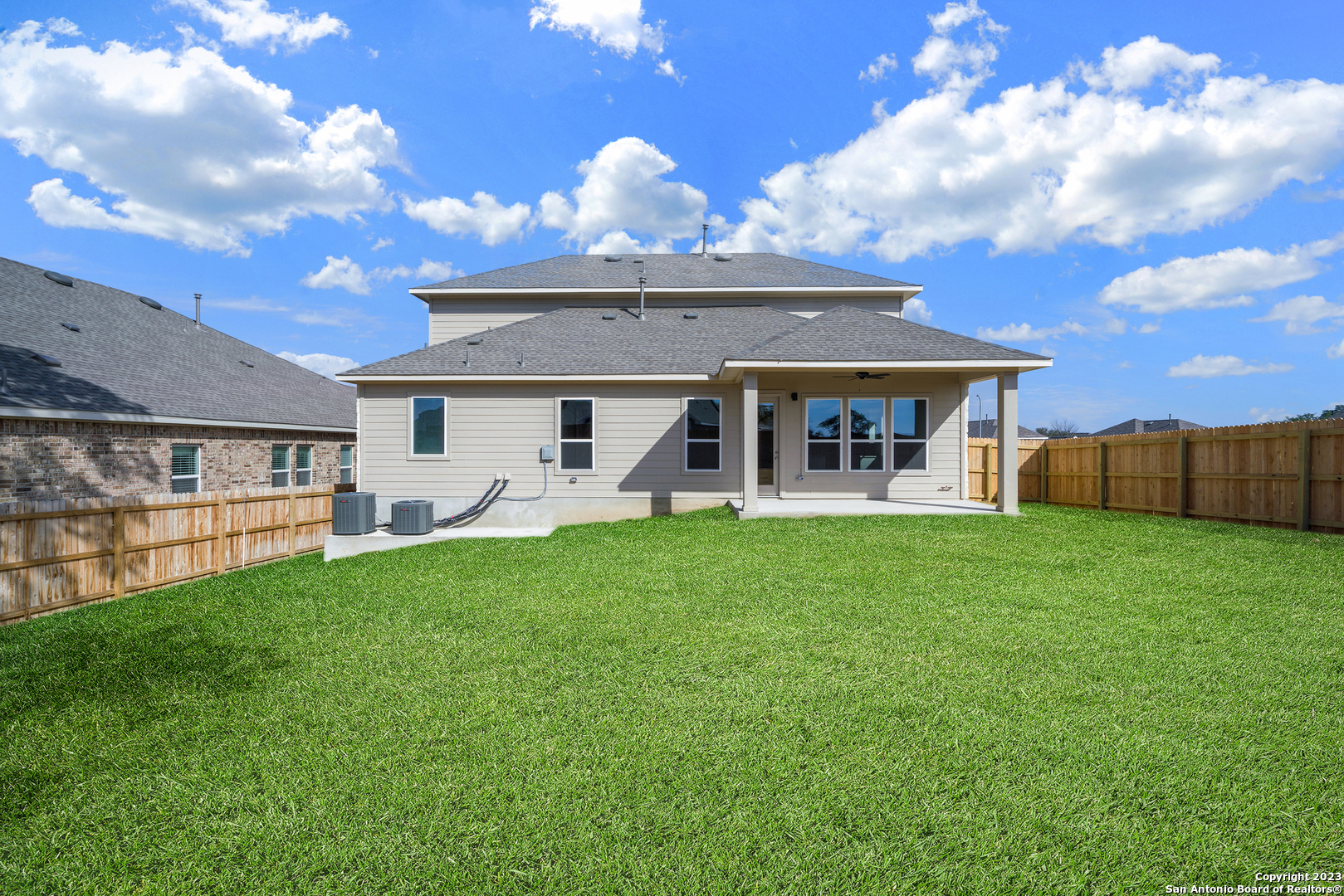 * MOVE-IN READY! * Discover a brilliant, newly constructed corner lot sanctuary in the prestigious Hidden Trails Community in Bulverde. This sizable 2,863 sq.ft. home showcases four bedroom, three bathrooms, private home office and a game room. Designed with comfort and modern taste in mind. The open-concept kitchen dazzles with pristine quartz countertops and high-end stainless steel appliances. The spacious owner's suite includes a large walk-in closet, perfect for your wardrobe collection along with a large walk-in shower, soft close drawer and dual sinks. Entertain or simply unwind on the covered patio within your private 50 ft + backyard. The house also features a convenient 2-car garage and beautiful landscaping. Dive into unmatched luxury and comfort in this beautiful home. Community features multiple amenities including: Miles of Walking Trails, Swimming Pools, 24 Hr Fitness Center, Playgrounds featuring a Zipline, Basketball Court, Catch & Release Pond + Monthly community events and more!