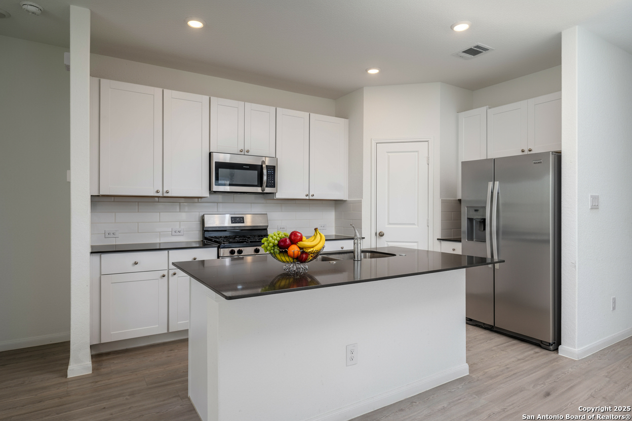 This lovely 4-bedroom, 3-bathroom, brick-exterior home, perfectly situated in a quiet cul-de-sac, is now available for rent! The main living space features an open floor plan, with a modern kitchen overlooking the spacious living room and dining area. The kitchen features a large island with seating, walk-in pantry, gas cook-top, and energy-efficient appliances. The primary suite is located in the back of the home and includes an en-suite bathroom with a double vanity, oversized walk-in shower, and a spacious walk-in closet. At the front of the home, the second bedroom has a private full bathroom. There are also two additional bedrooms and another full bathroom. The home has numerous upgrades, including blinds on every window, a garage door opener, water softener, and a full sprinkler system. The backyard is large and level, and has a covered patio. The washer and dryer are included in the lease. Conveniently located just off Hwy 281 with easy access to shopping, restaurants, etc. PLEASE NOTE: NO SMOKING IS ALLOWED INSIDE THE HOME OR GARAGE. Schedule your showing today!